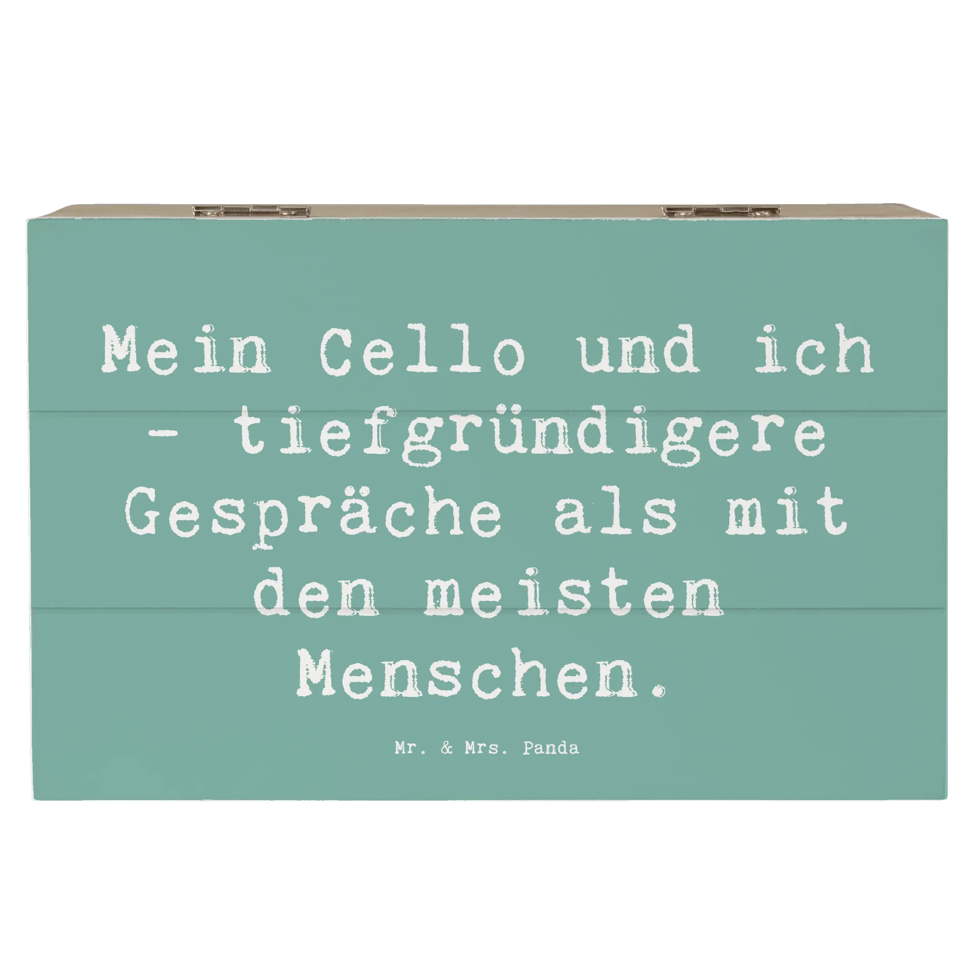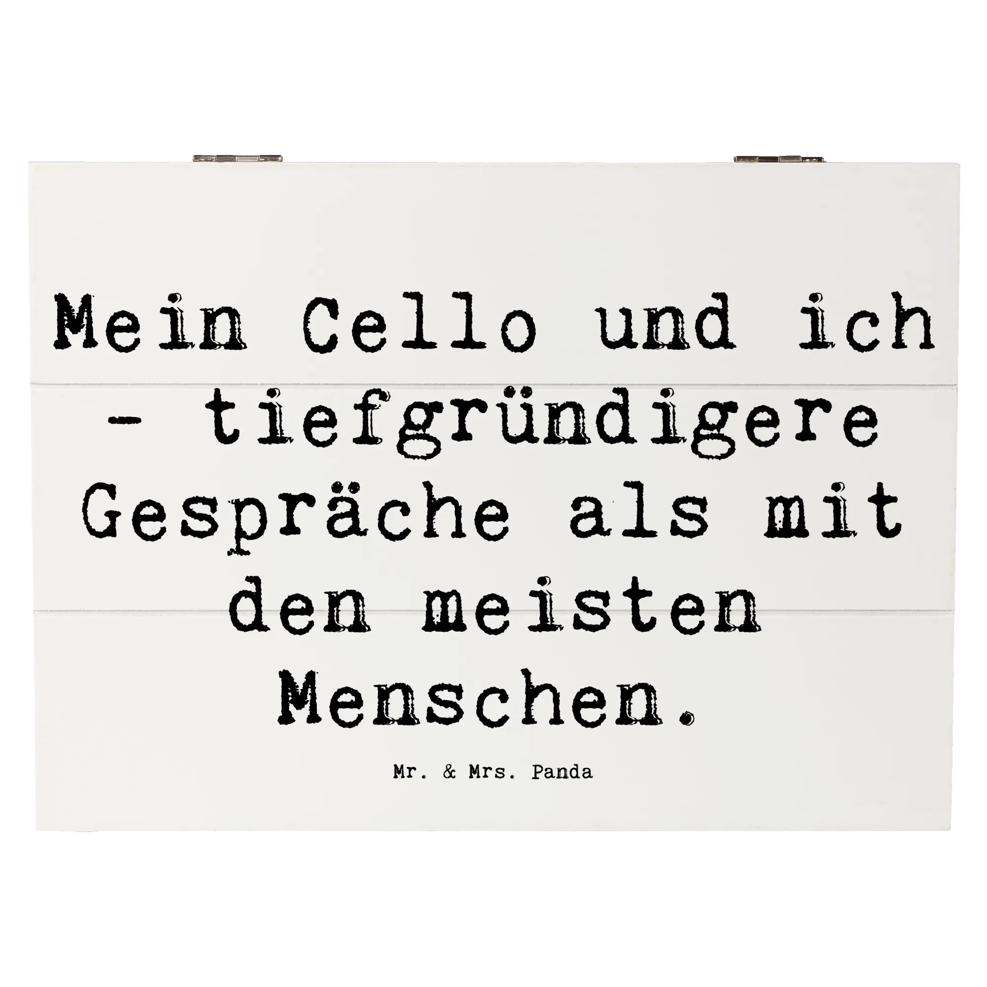 Skrzynia drewniana Przysłowie Mein Cello und ich - tiefgründigere Gespräche als mit den meisten Menschen. - 22 x 15 cm - biały