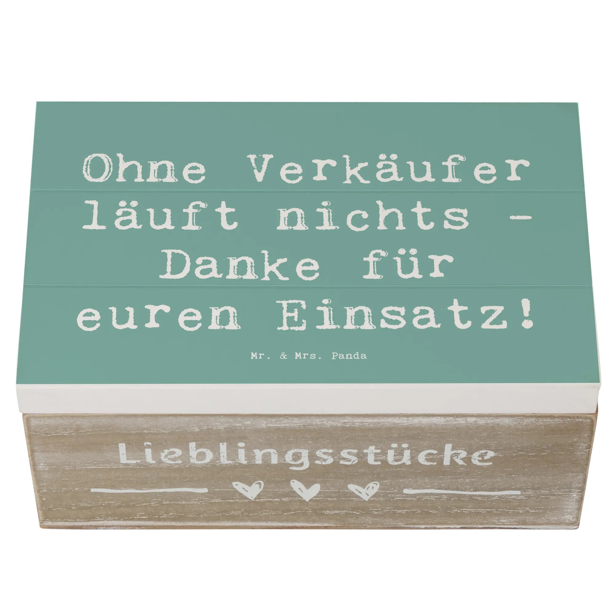 Skrzynia drewniana Przysłowie Ohne Verkäufer läuft nichts - Danke für euren Einsatz! - 19 x 12 cm - Meeresbrise