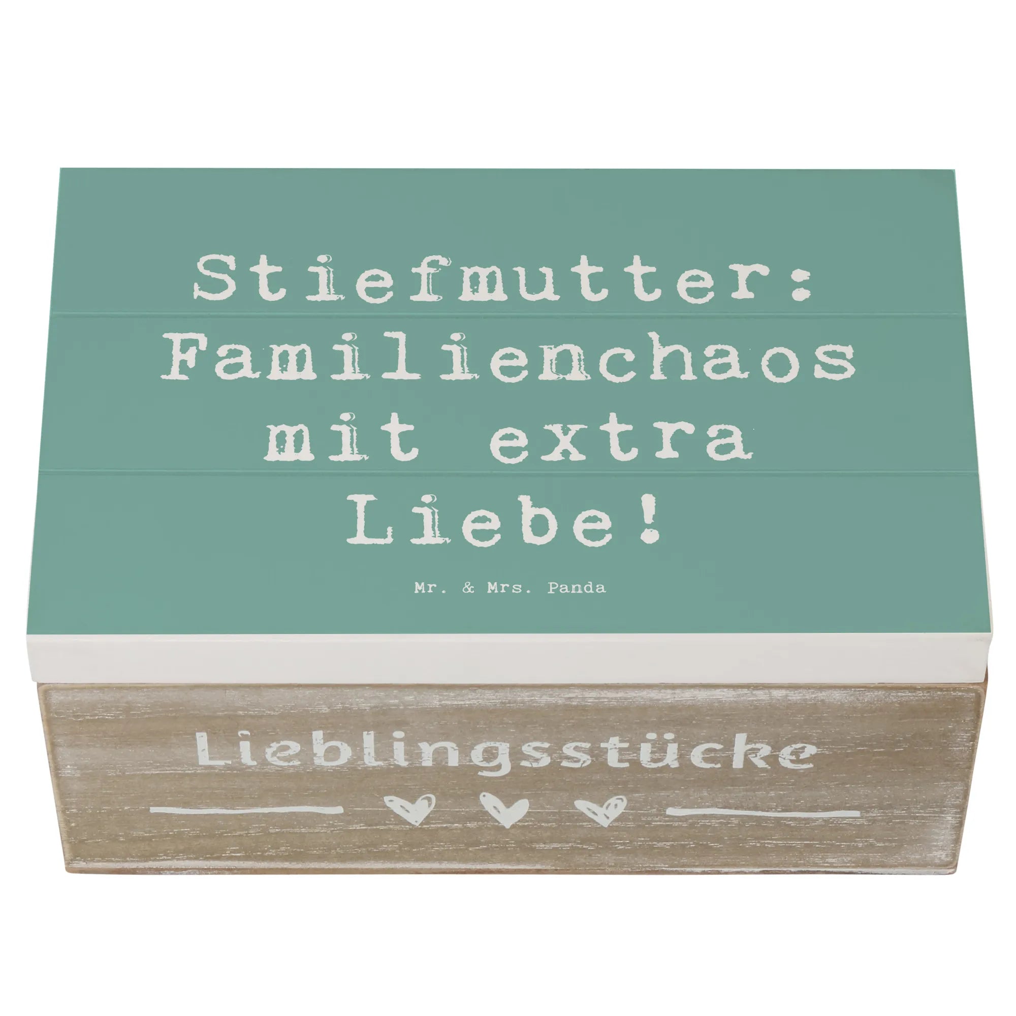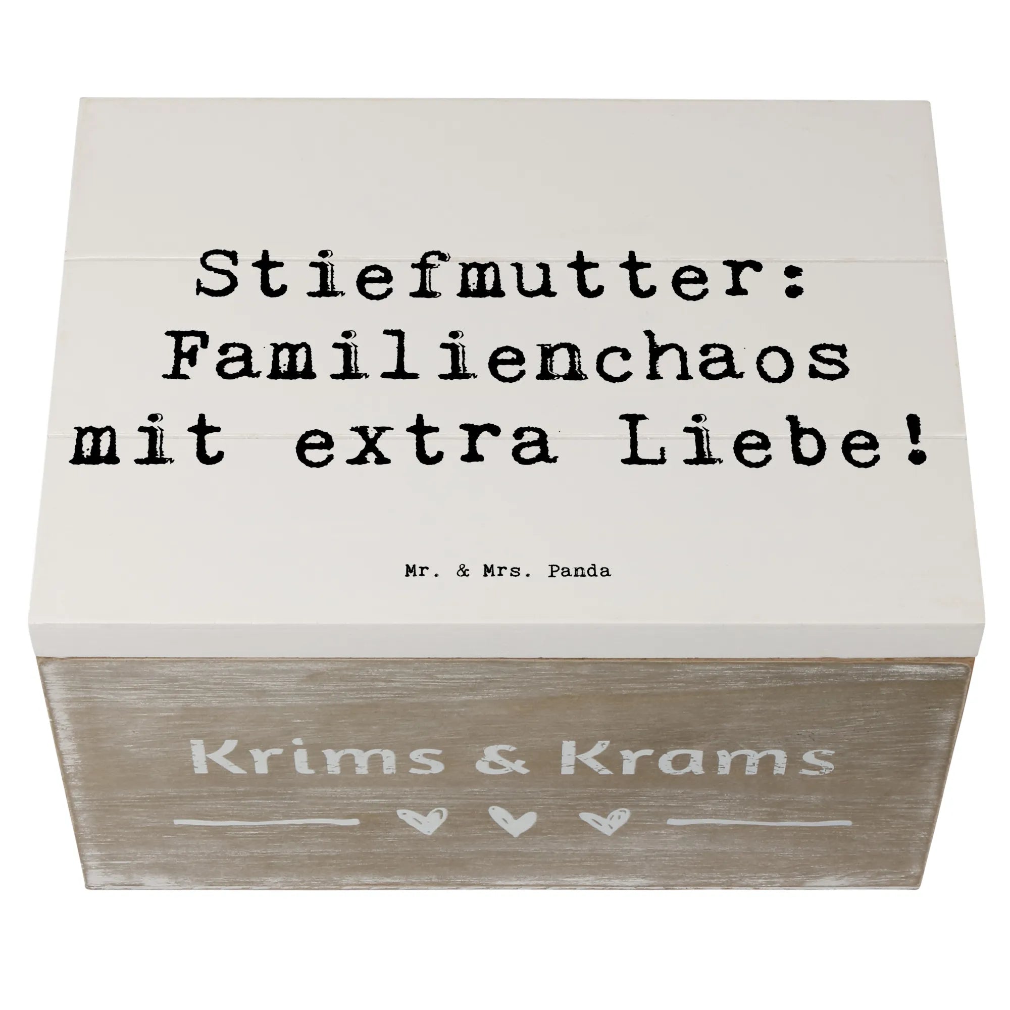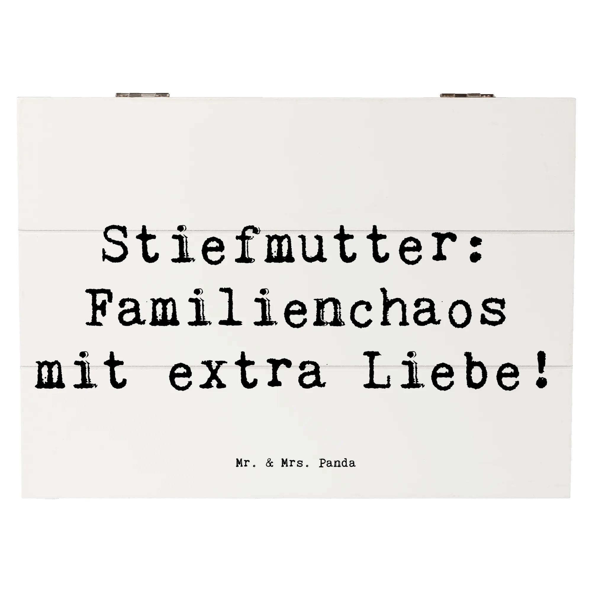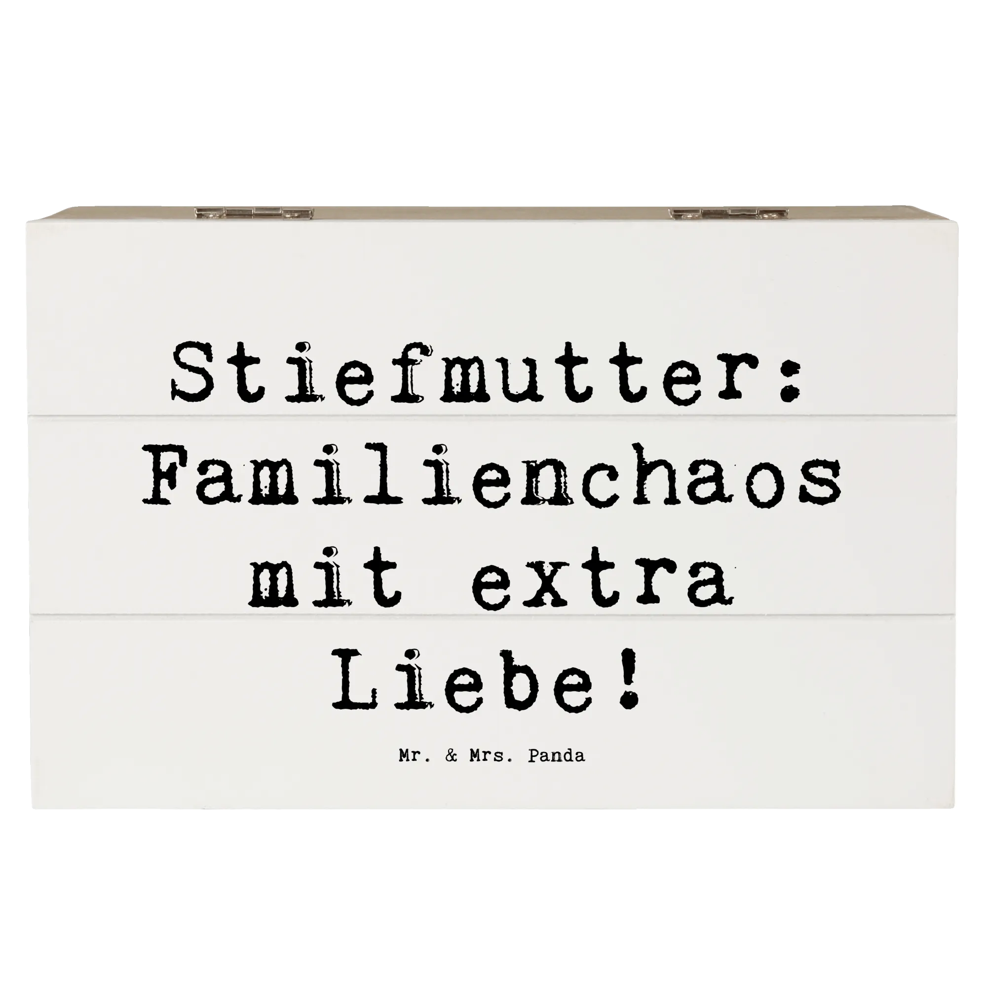 Skrzynia drewniana Przysłowie Stiefmutter: Familienchaos mit extra Liebe! - 22 x 15 cm - biały