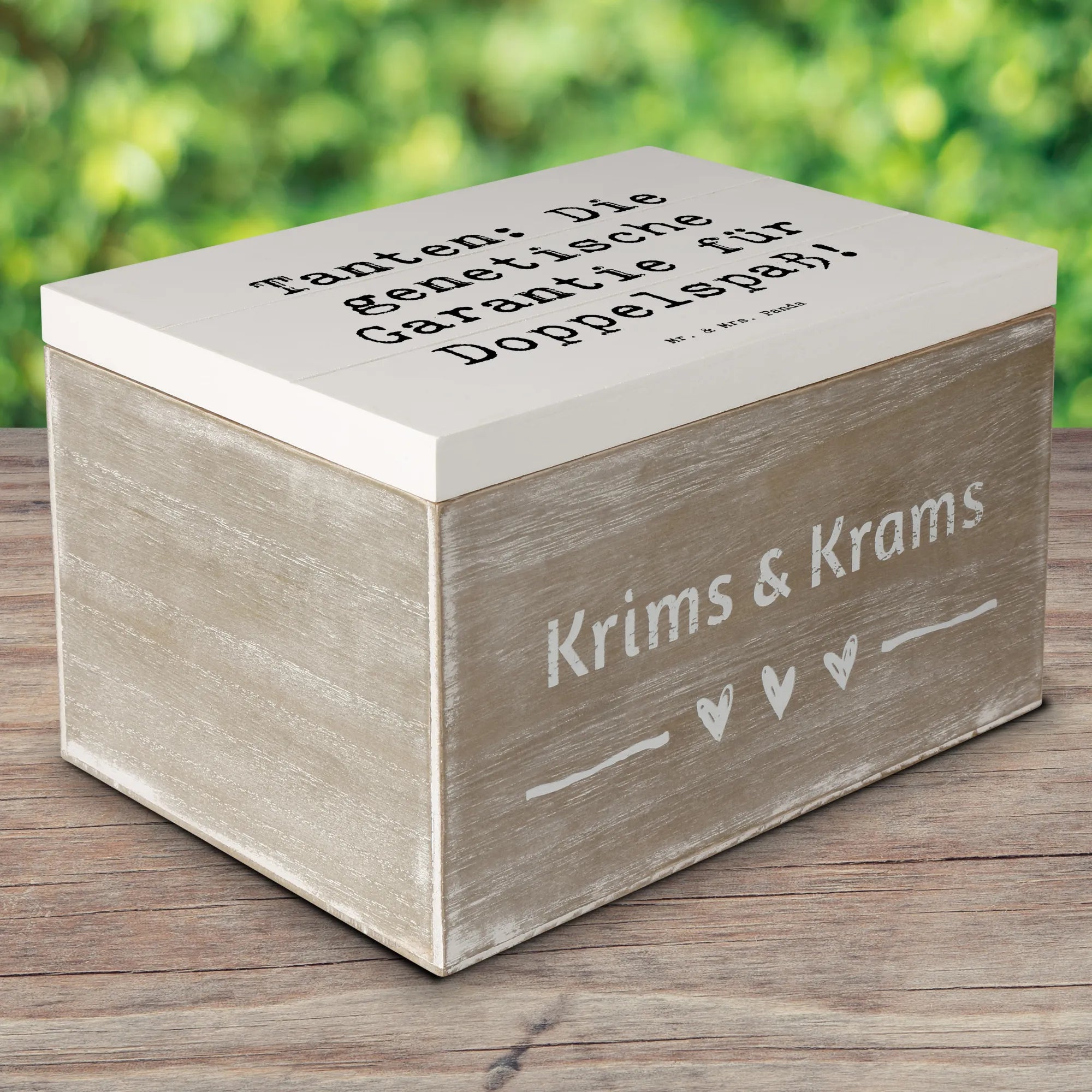 Skrzynia drewniana Przysłowie Tanten: Die genetische Garantie für Doppelspaß! - 19 x 12 cm - Meeresbrise