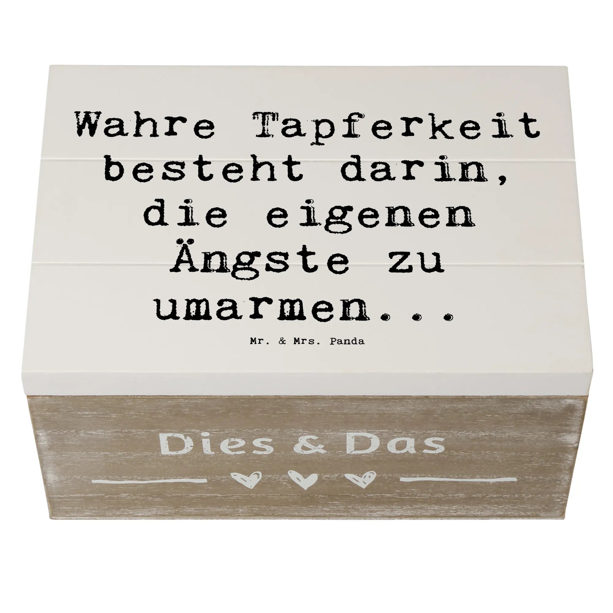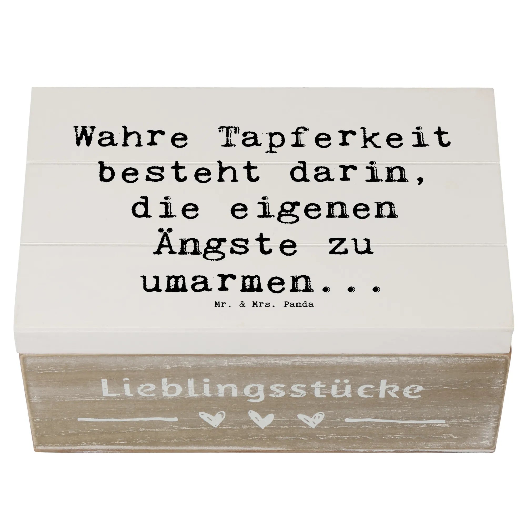 Skrzynia drewniana Przysłowie Wahre Tapferkeit besteht darin, die eigenen Ängste zu umarmen... - 19 x 12 cm - Meeresbrise