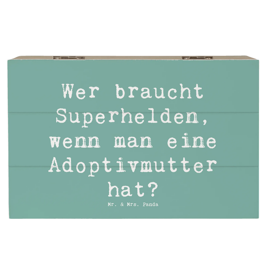 Skrzynia drewniana Przysłowie Wer braucht Superhelden, wenn man eine Adoptivmutter hat? - 19 x 12 cm - Meeresbrise