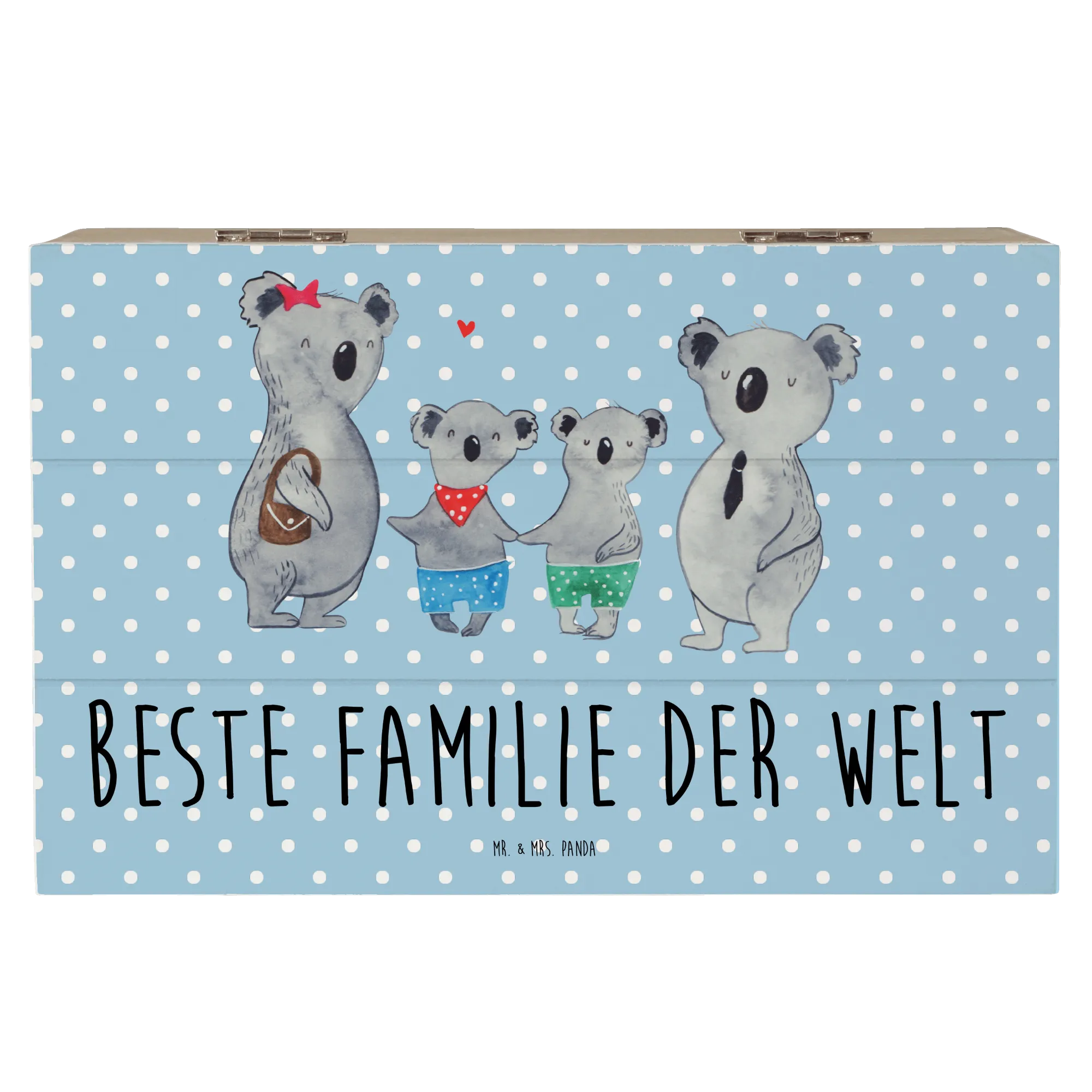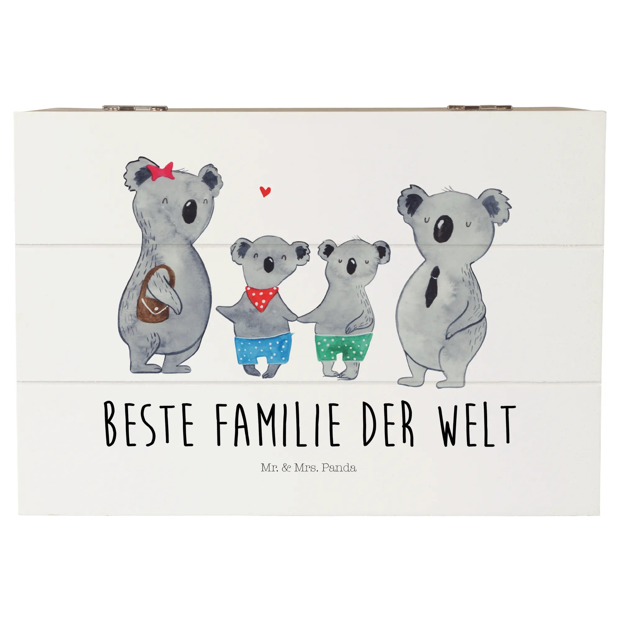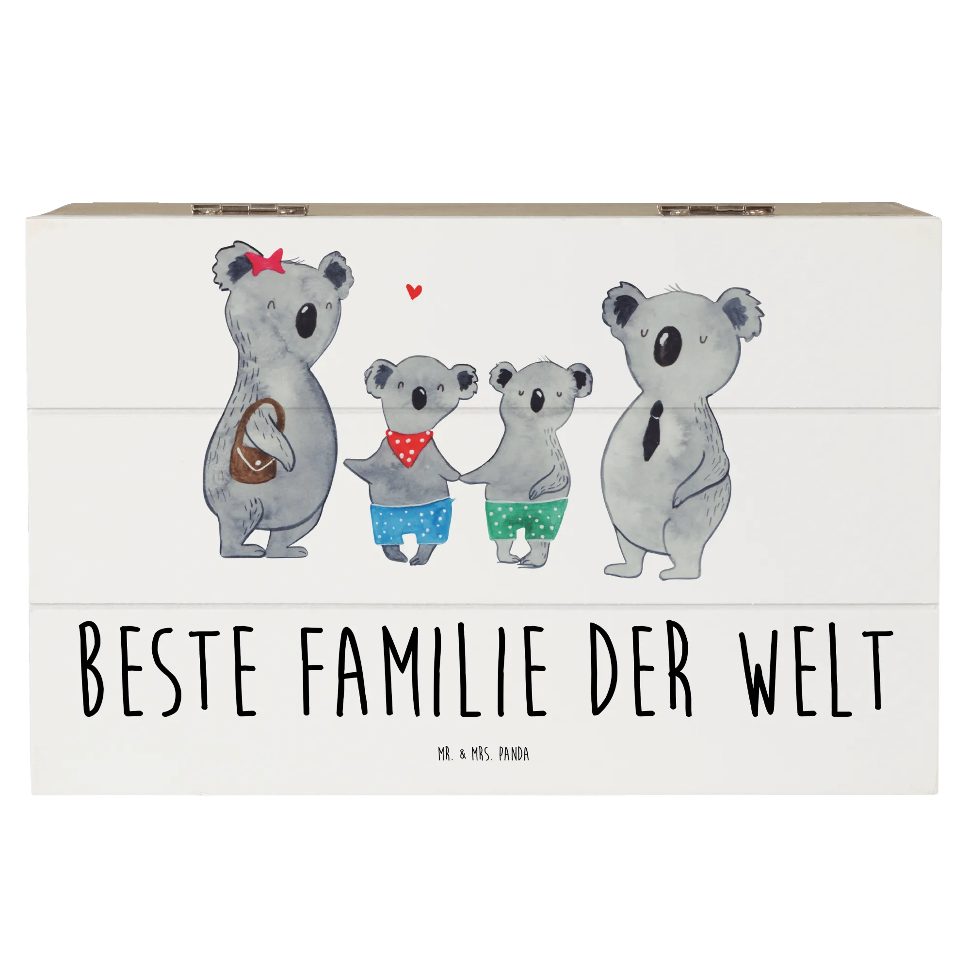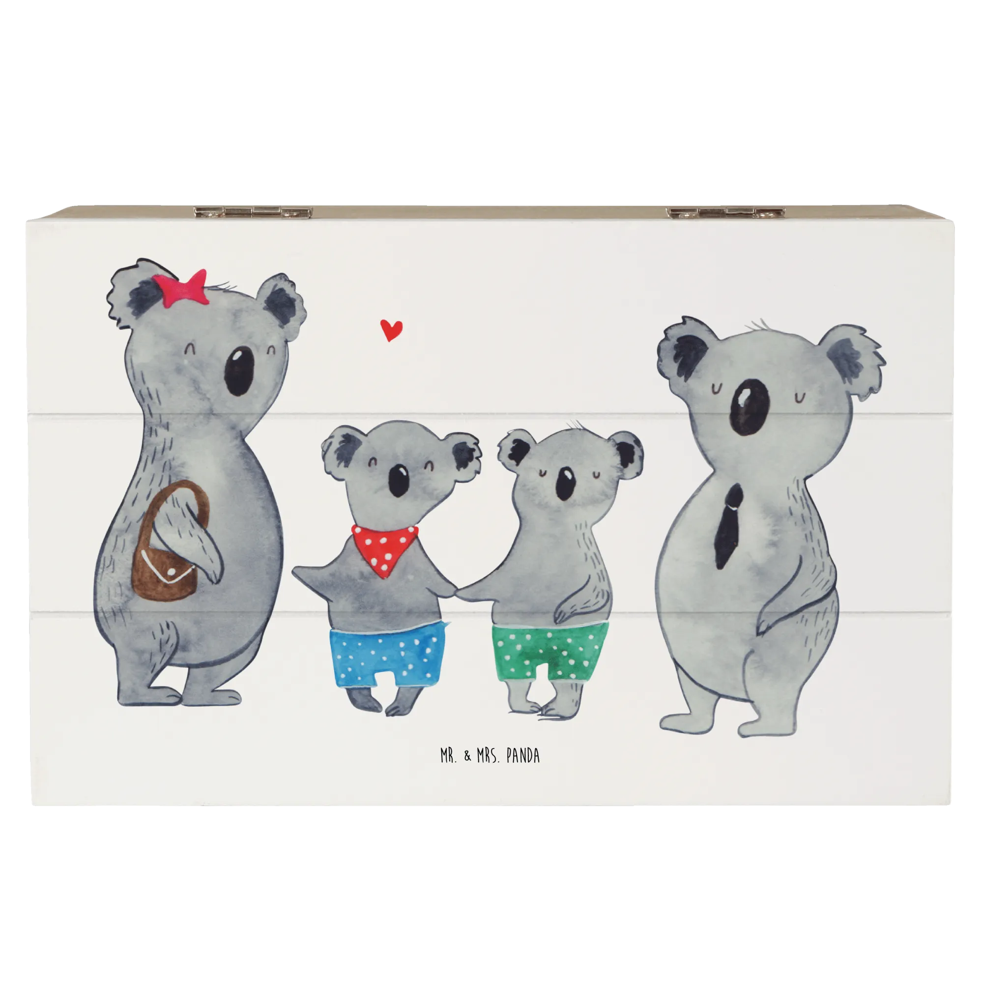 Skrzynia drewniana Rodzina koali dwa - 22 x 15 cm - z napisem - biały