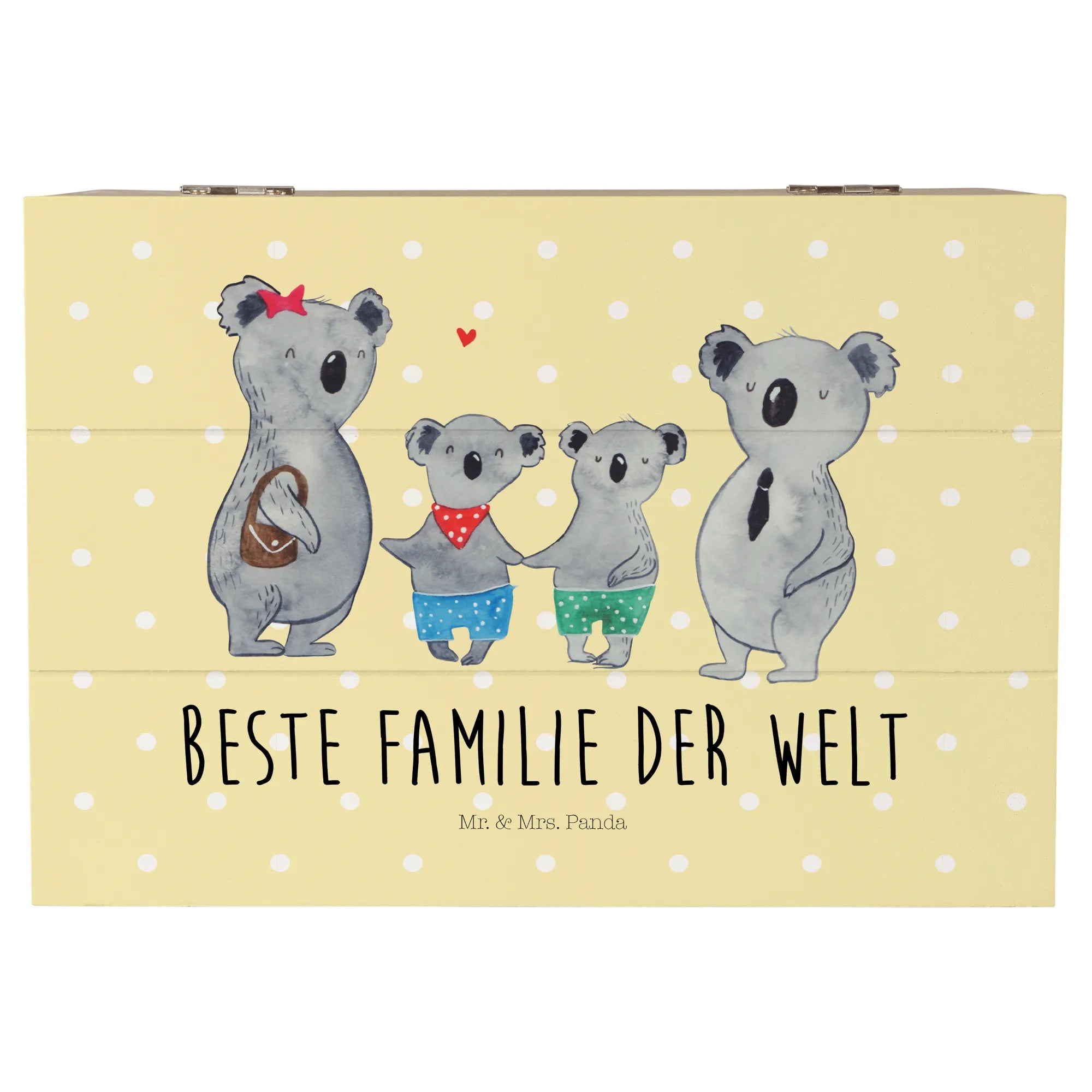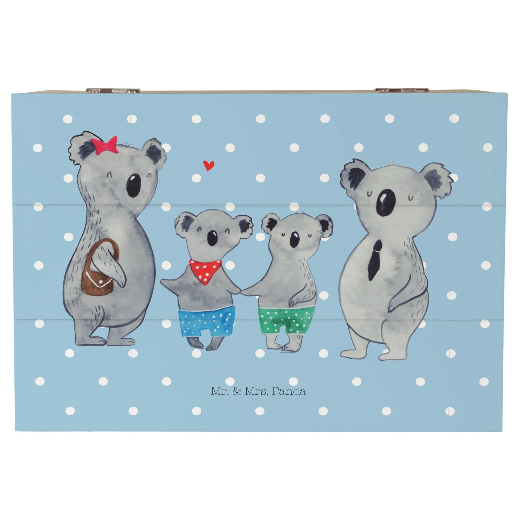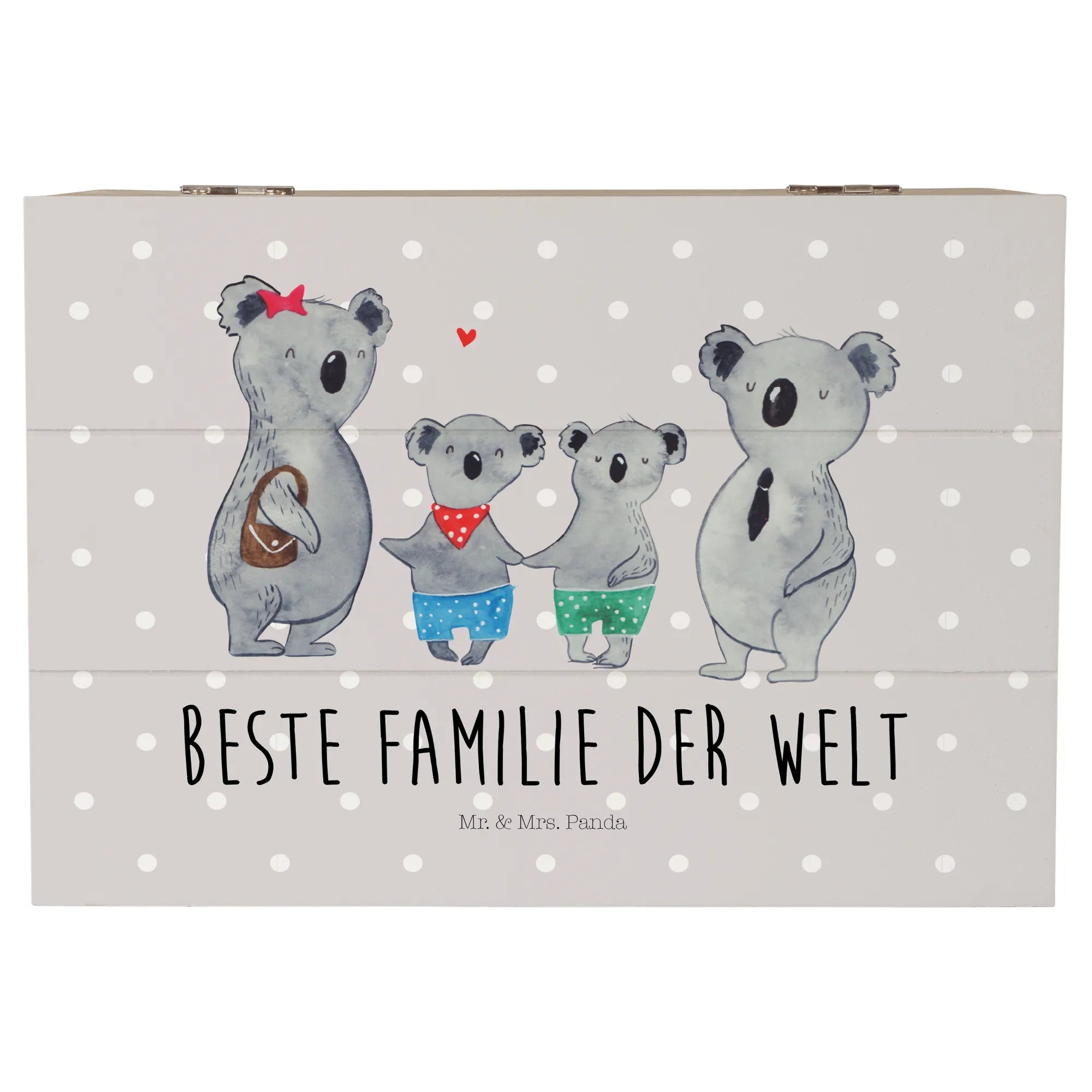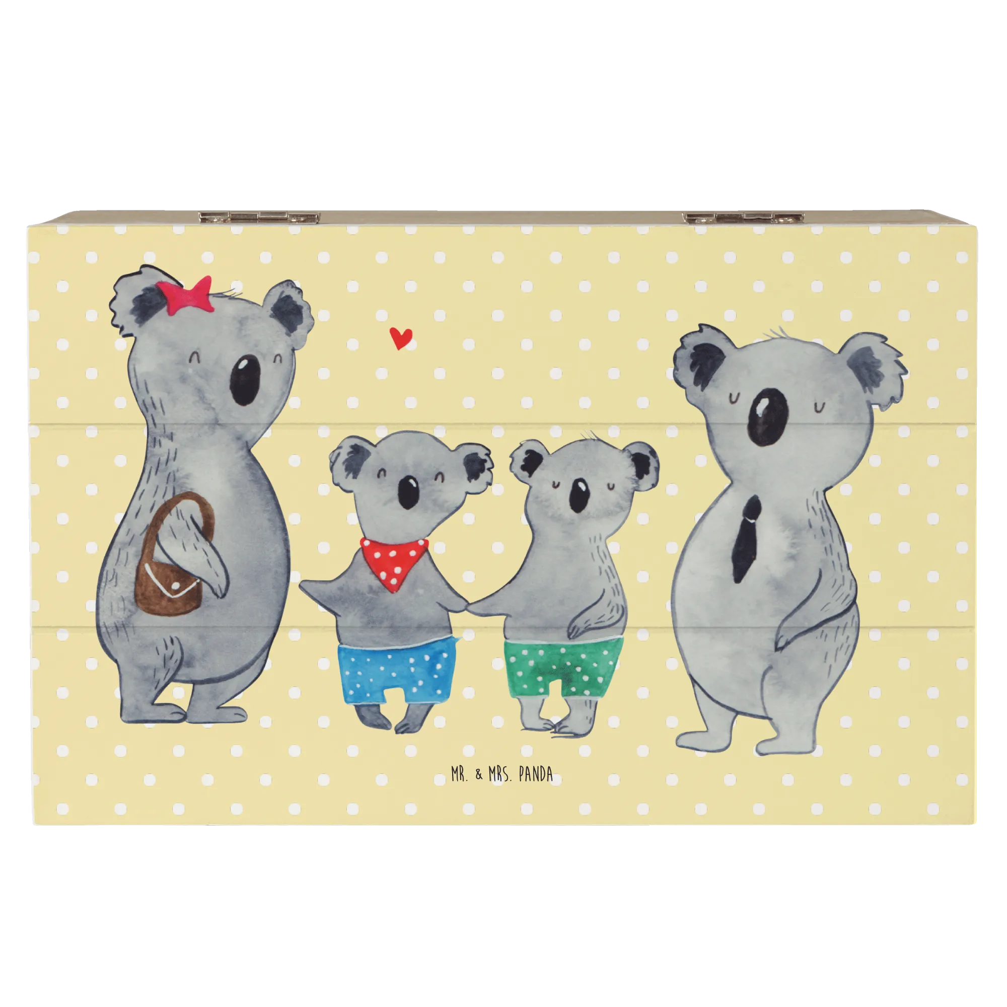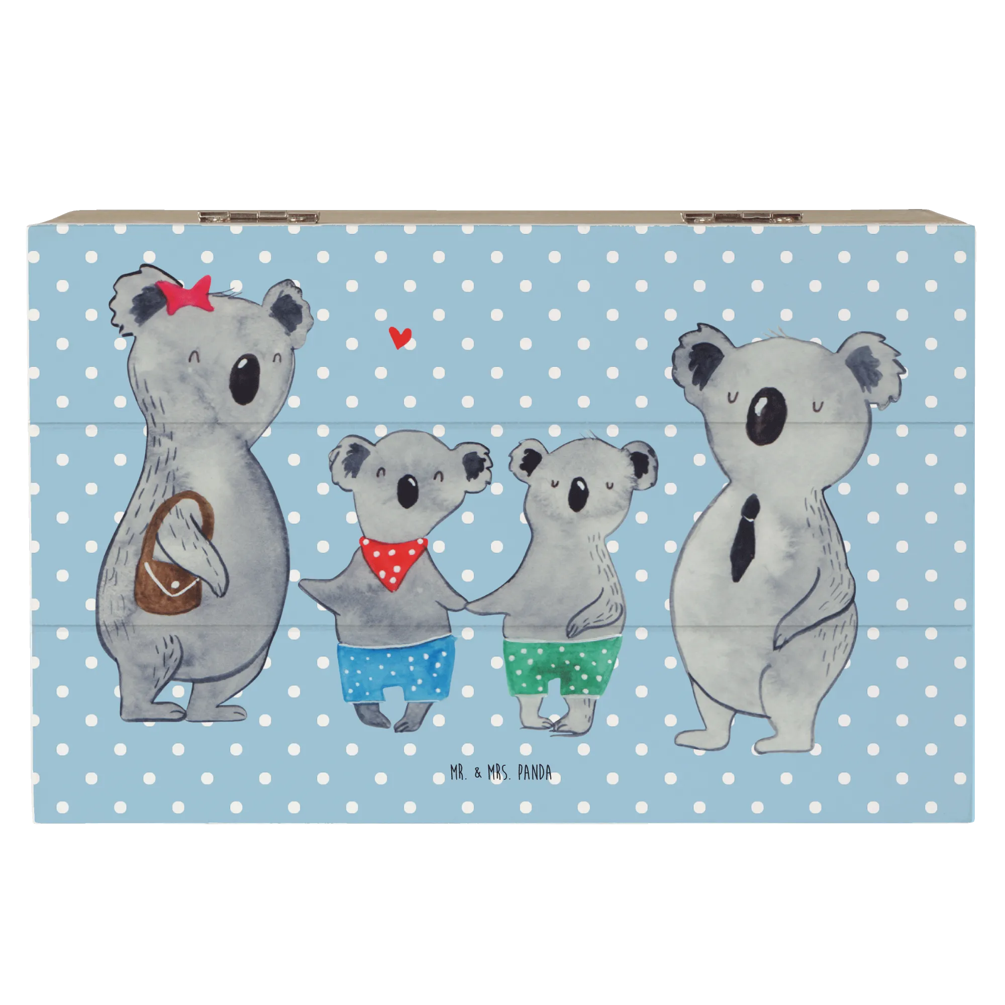 Skrzynia drewniana Rodzina koali dwa - 22 x 15 cm - z napisem - biały
