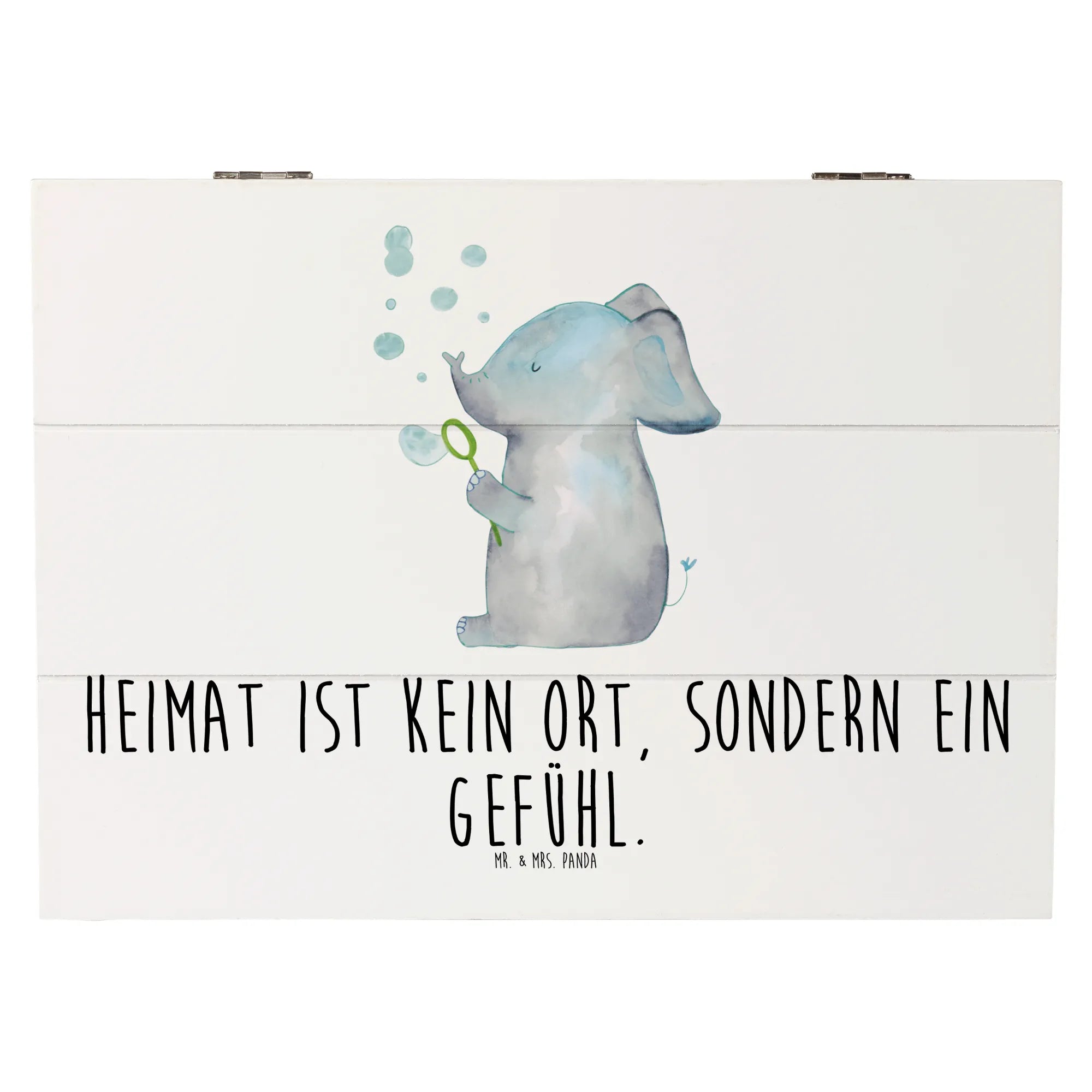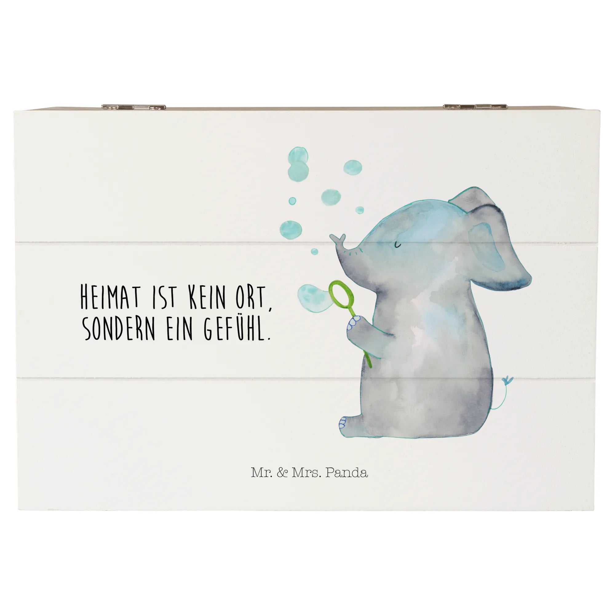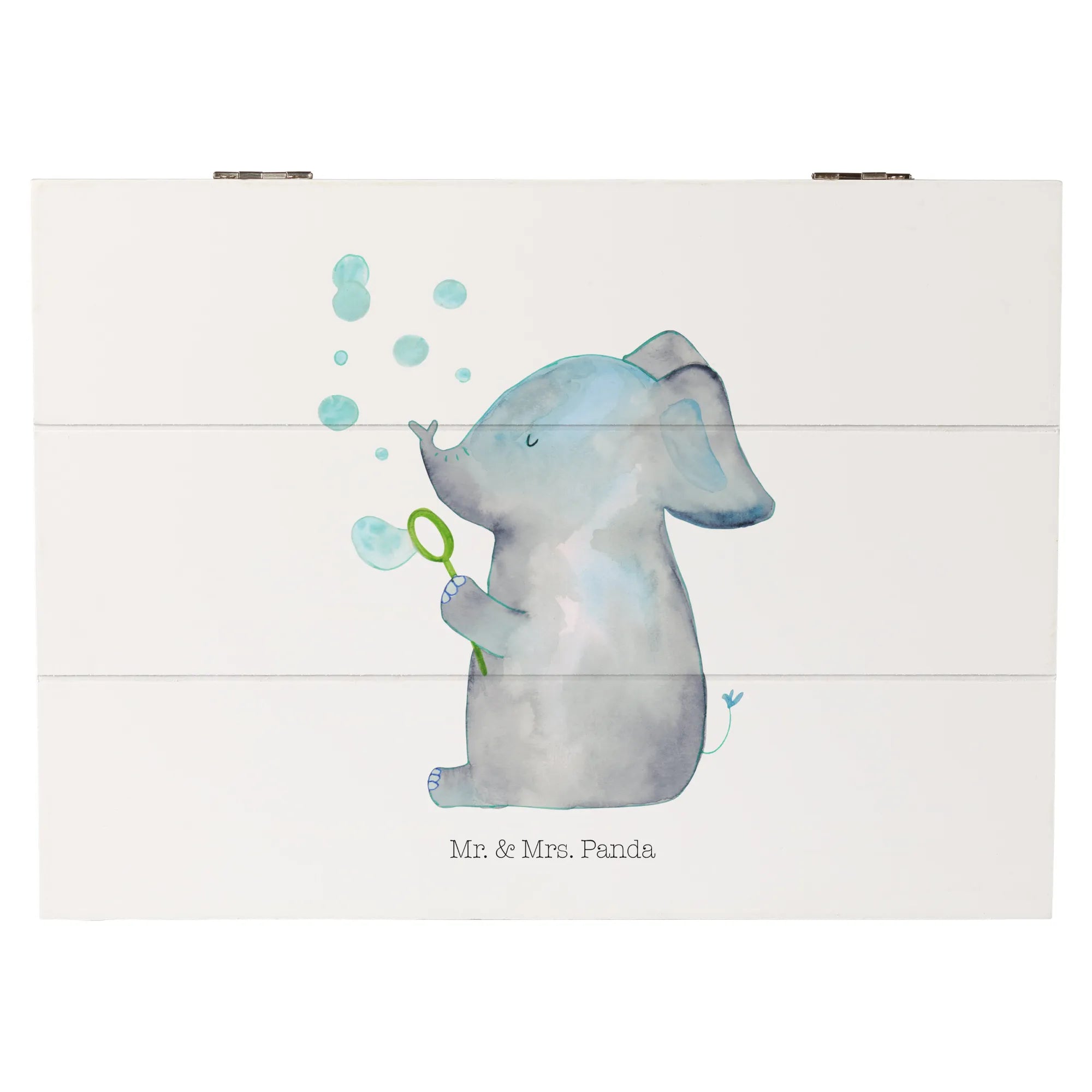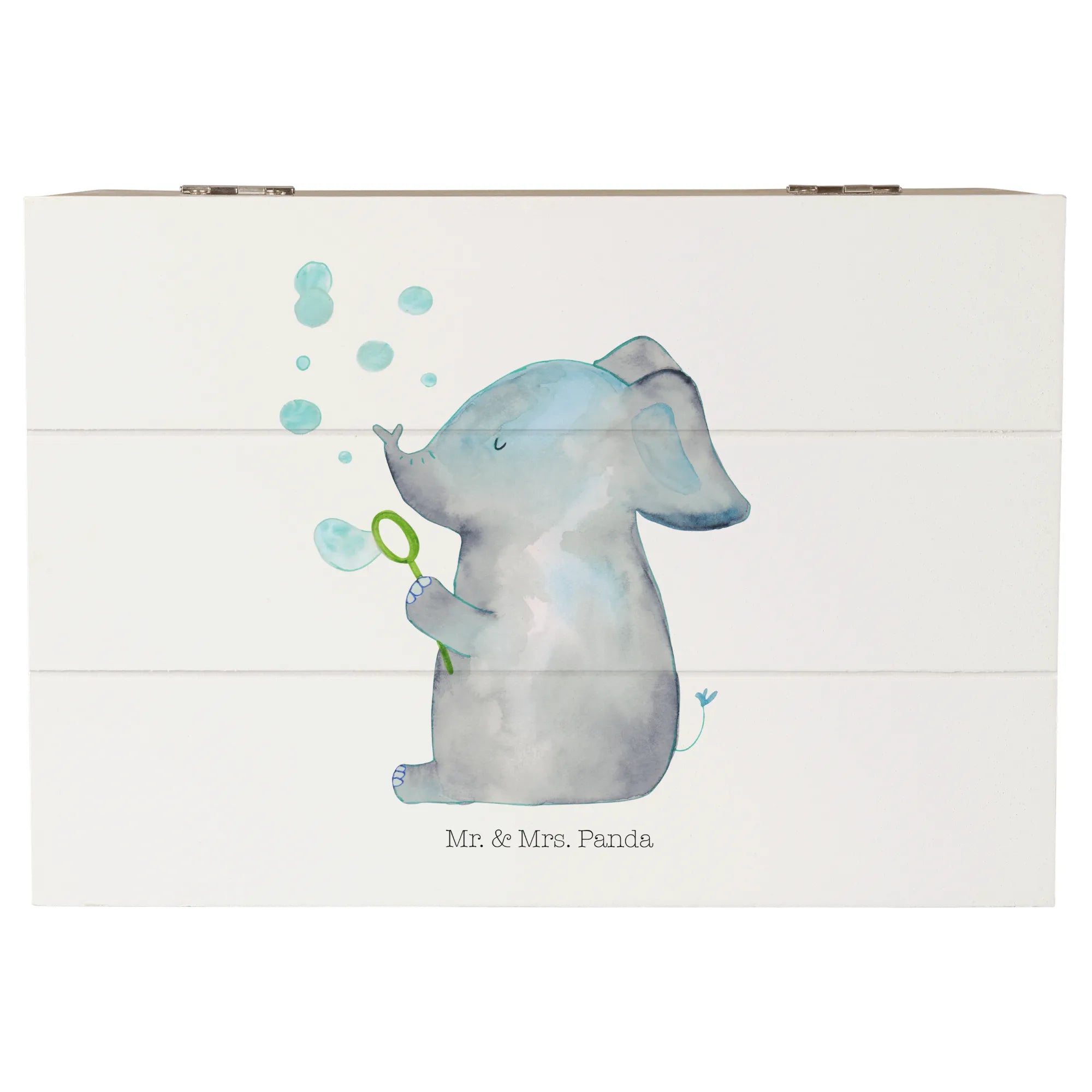 Skrzynia drewniana słoń bańki mydlane - 22 x 15 cm - z napisem - biały