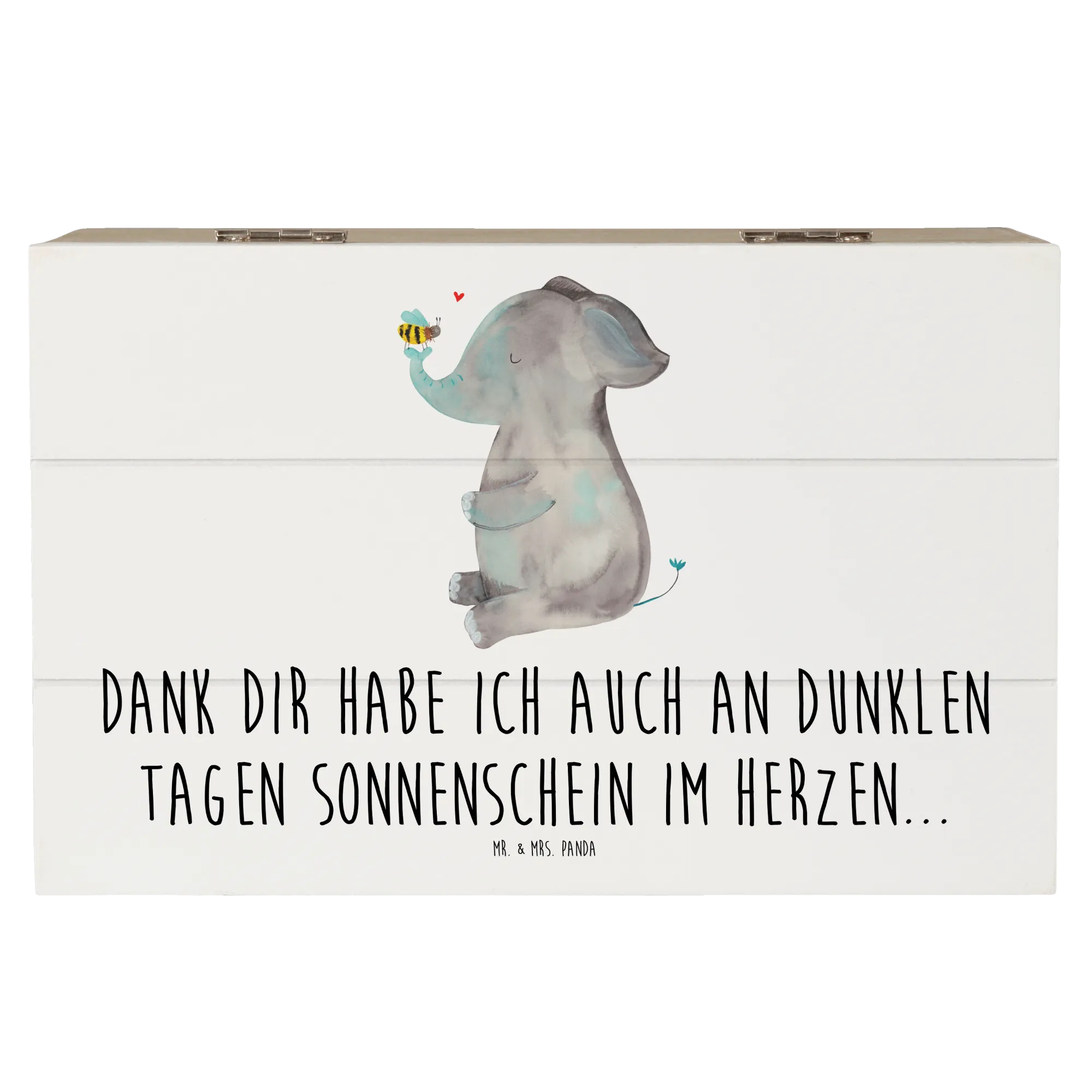 Skrzynia drewniana słoń pszczoła - 22 x 15 cm - z napisem - Biały