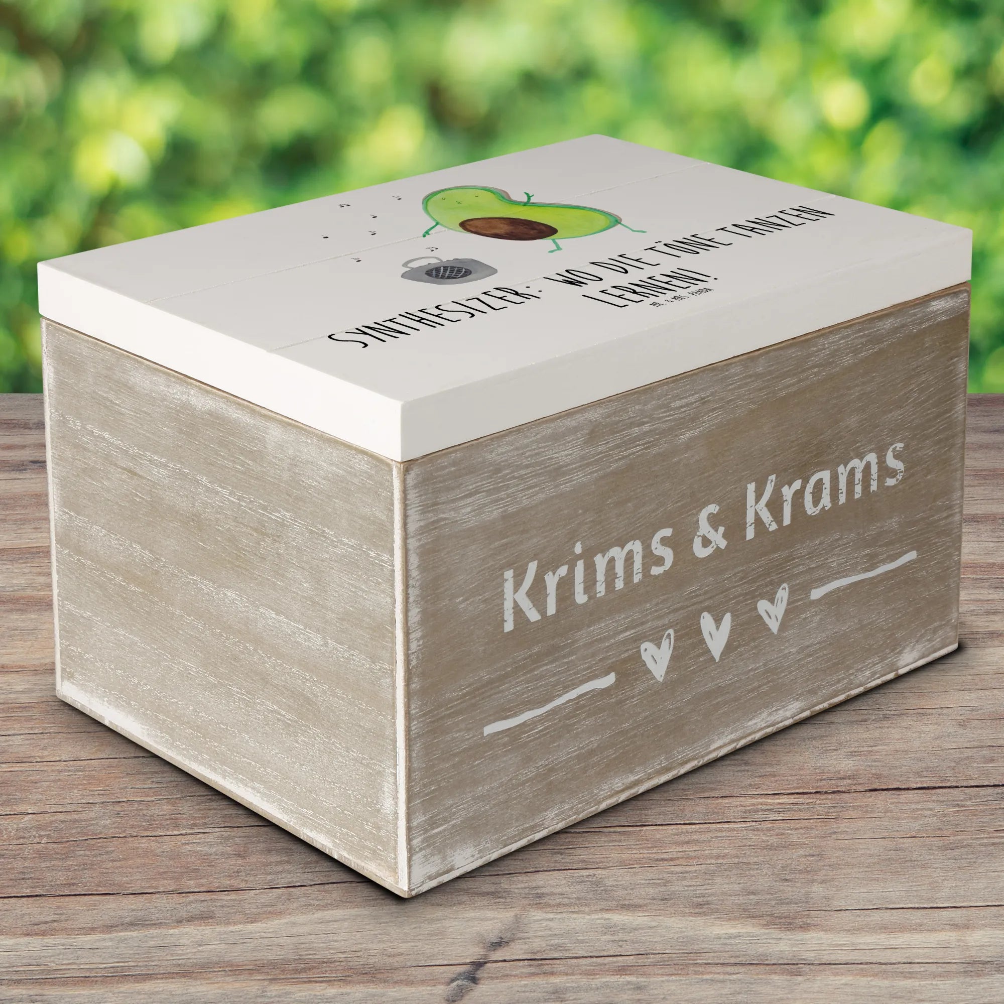 Skrzynia drewniana Synthesizer: Wo die Töne tanzen lernen! - 22 x 15 cm - biały