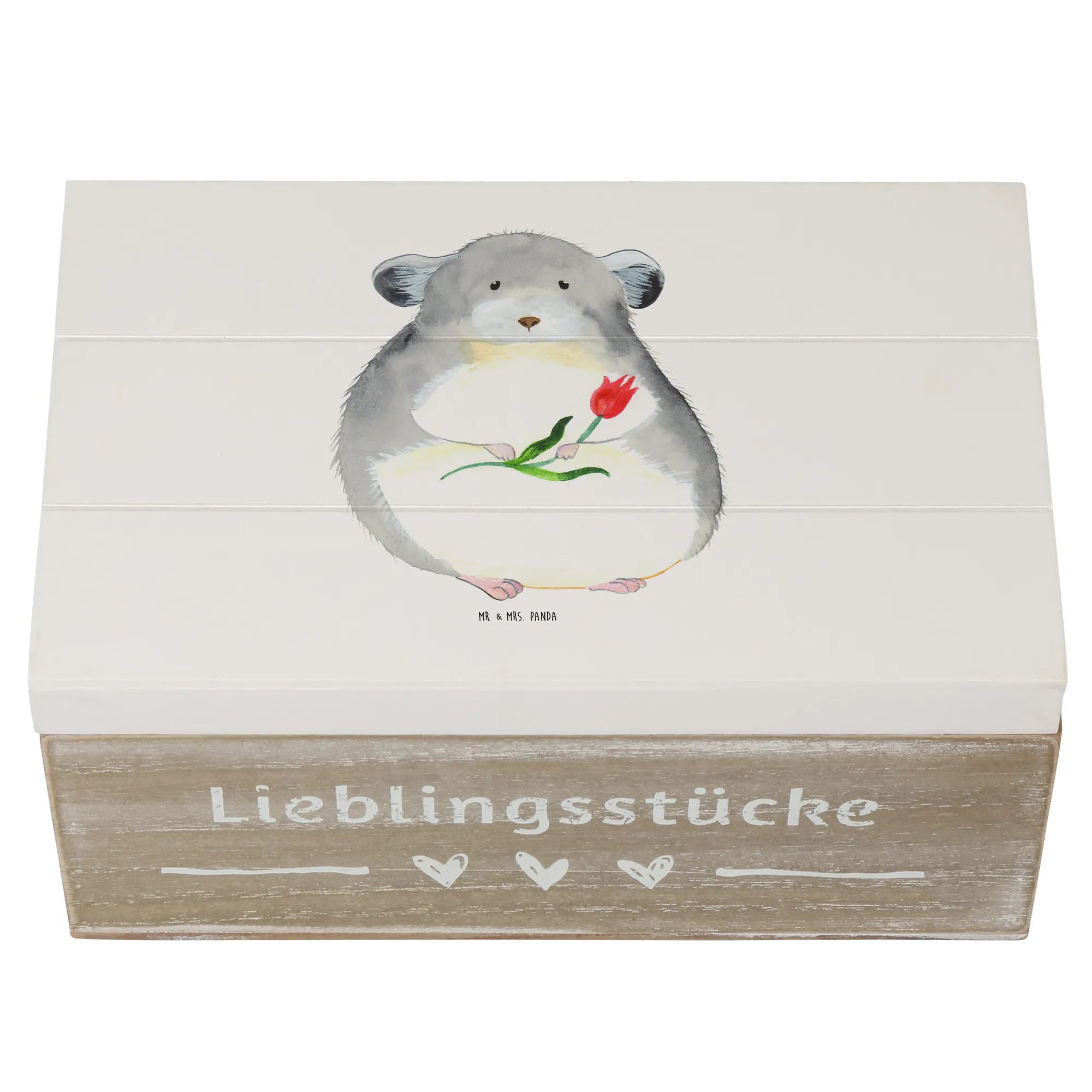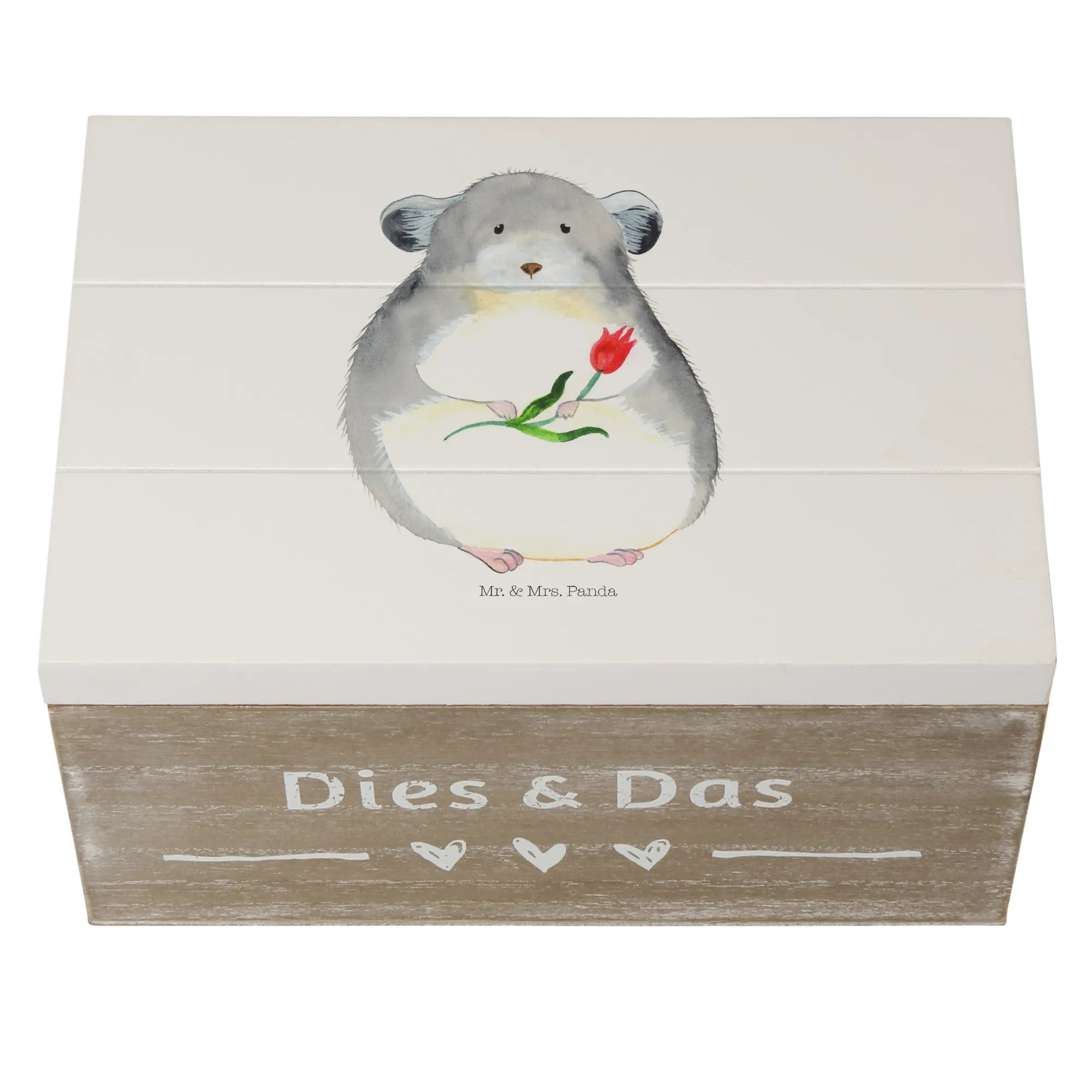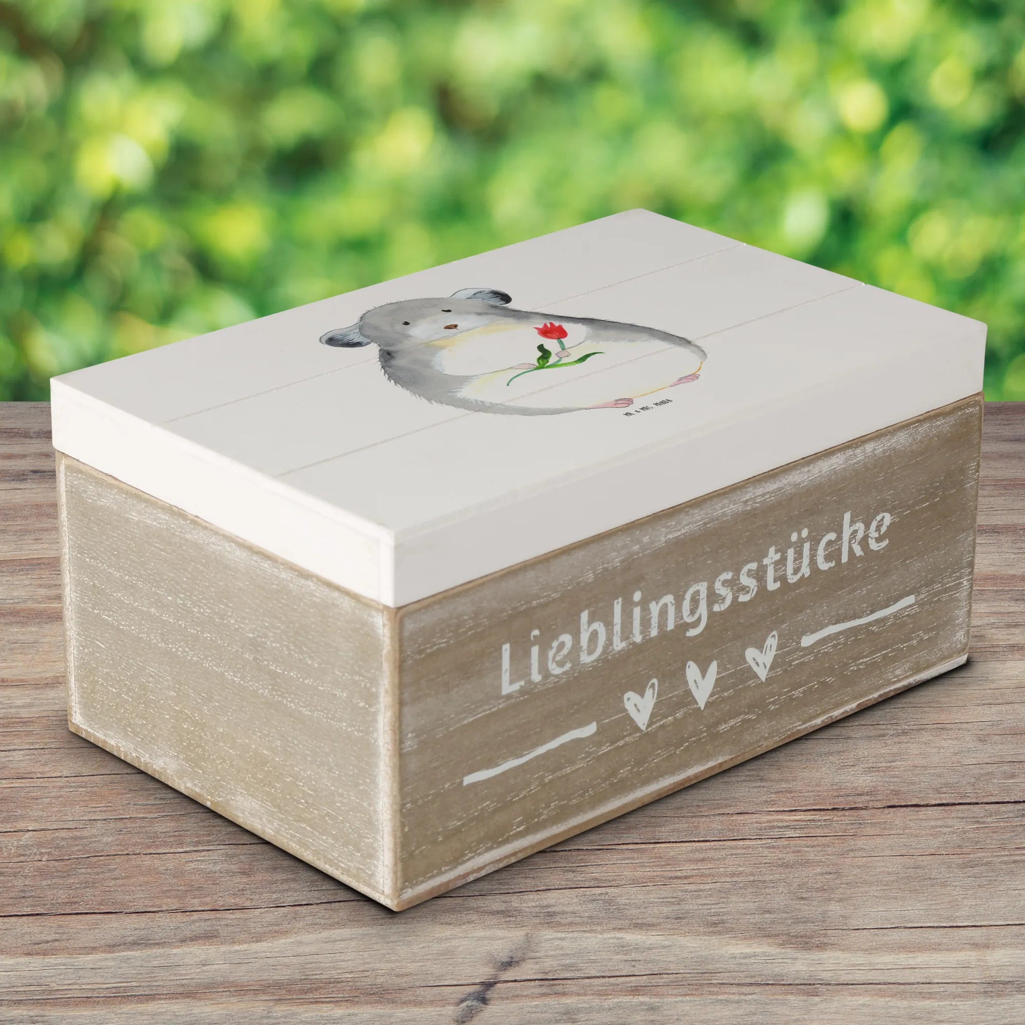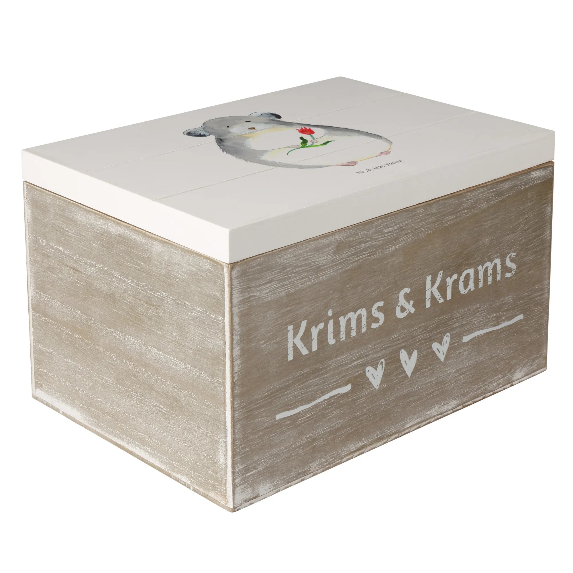 Skrzynia drewniana szynszyla kwiat - 22 x 15 cm - z napisem - biały