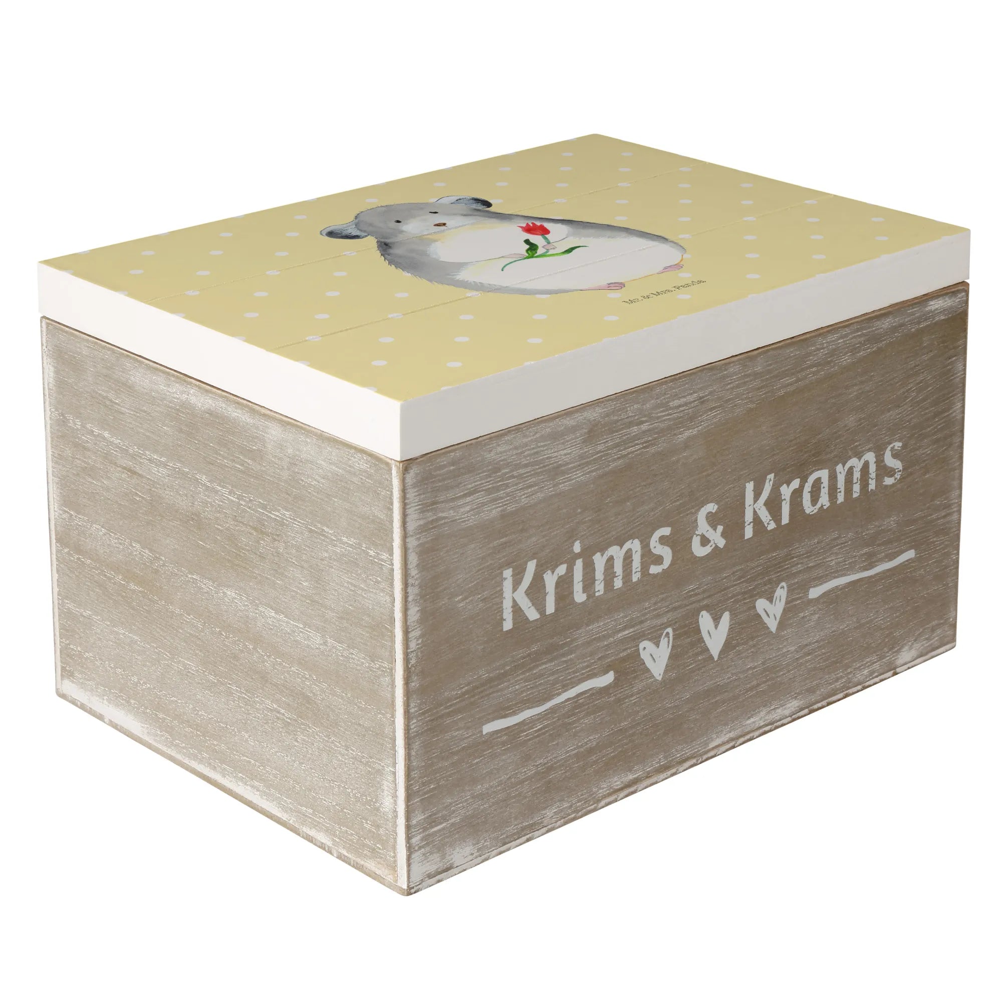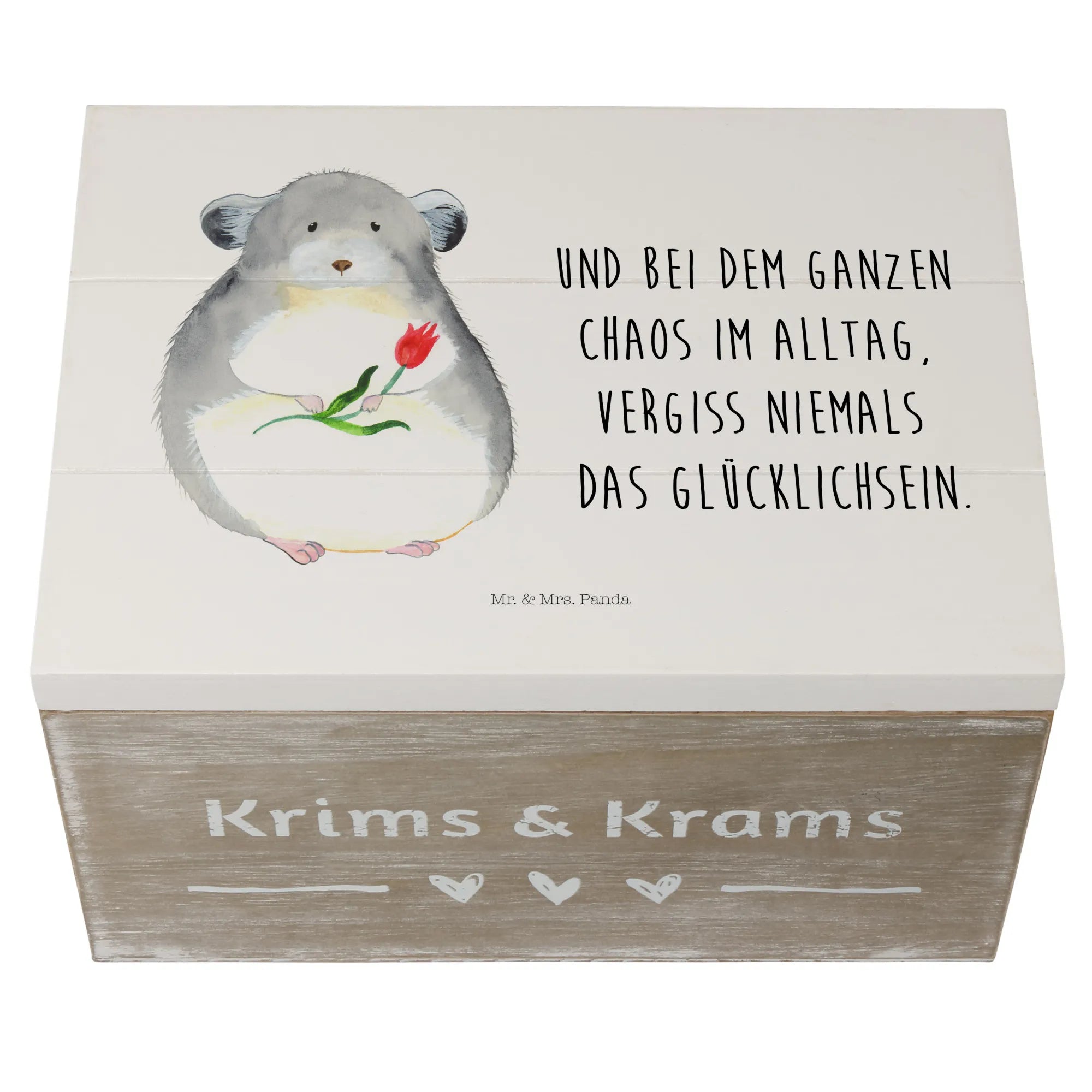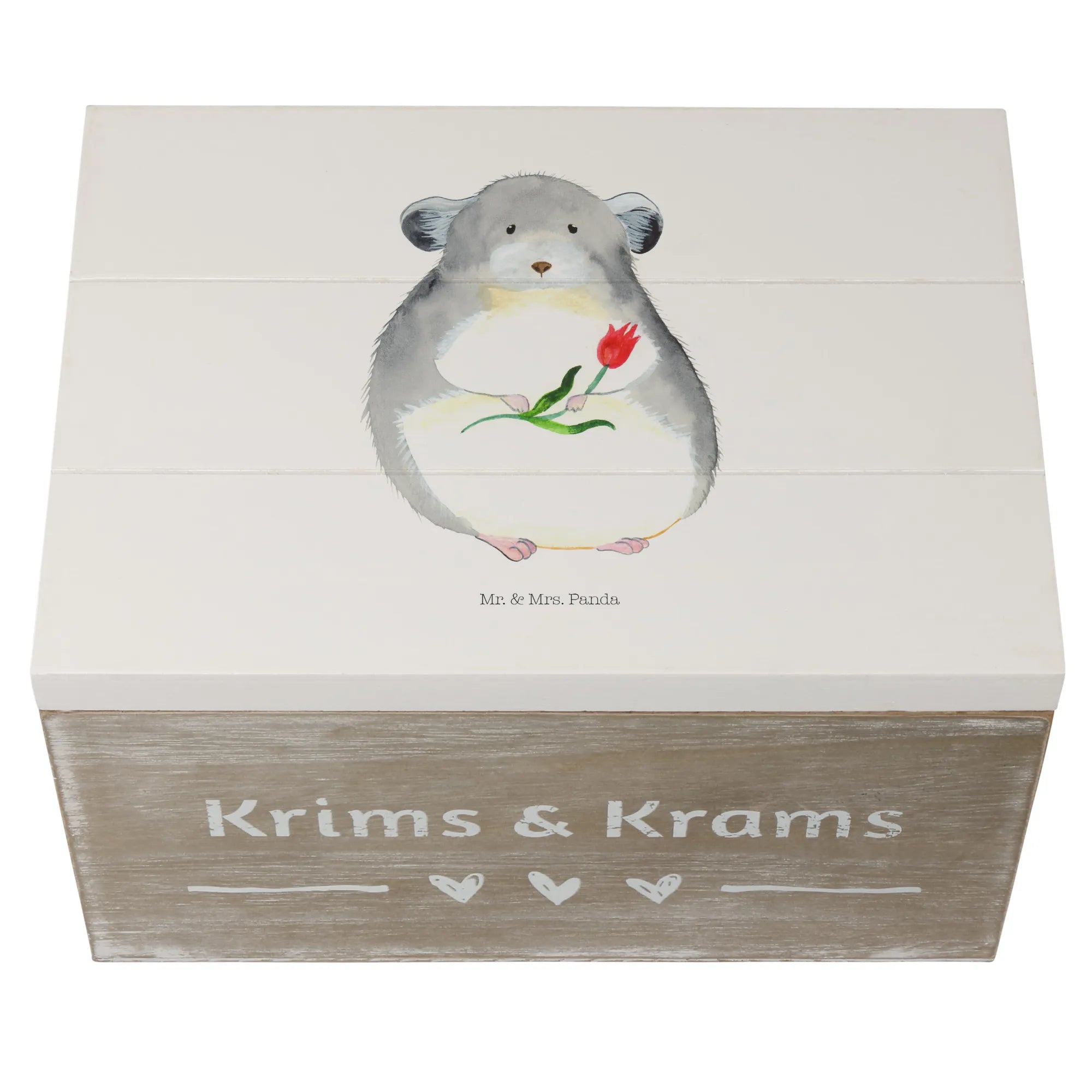 Skrzynia drewniana szynszyla kwiat - 22 x 15 cm - z napisem - biały