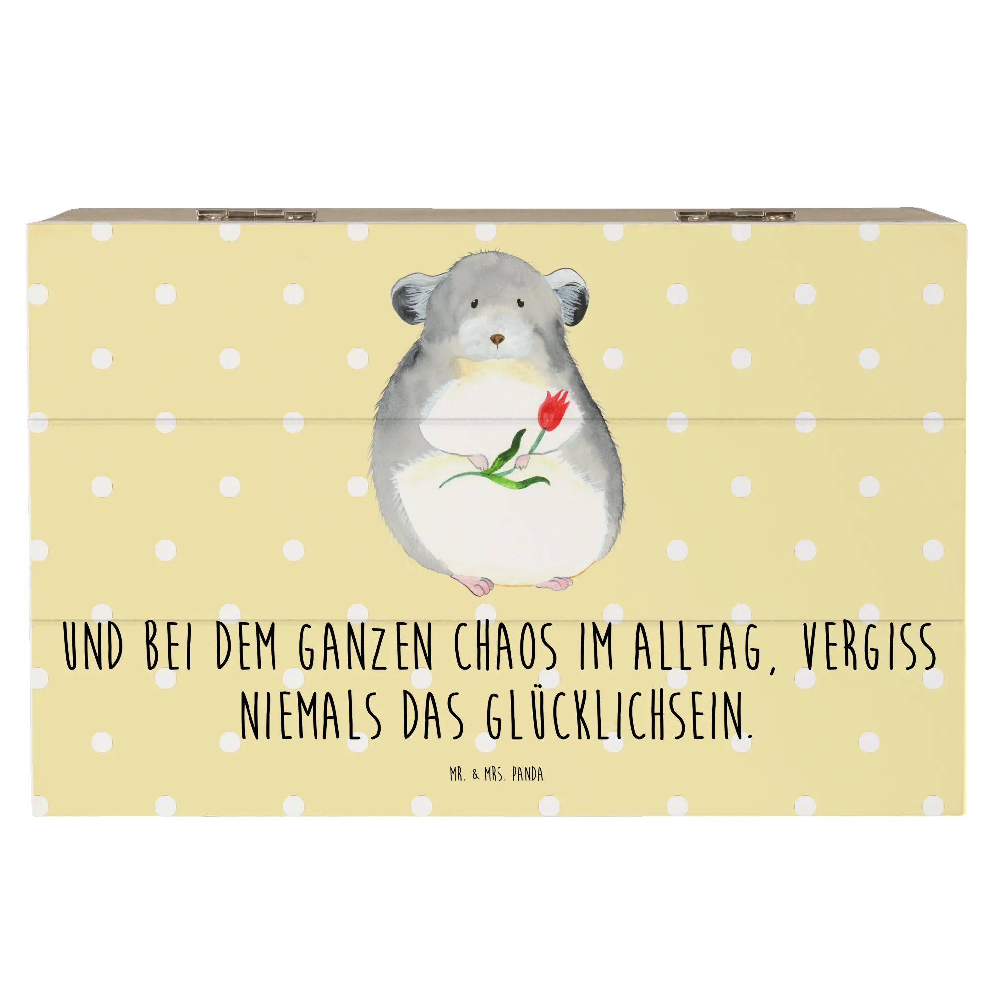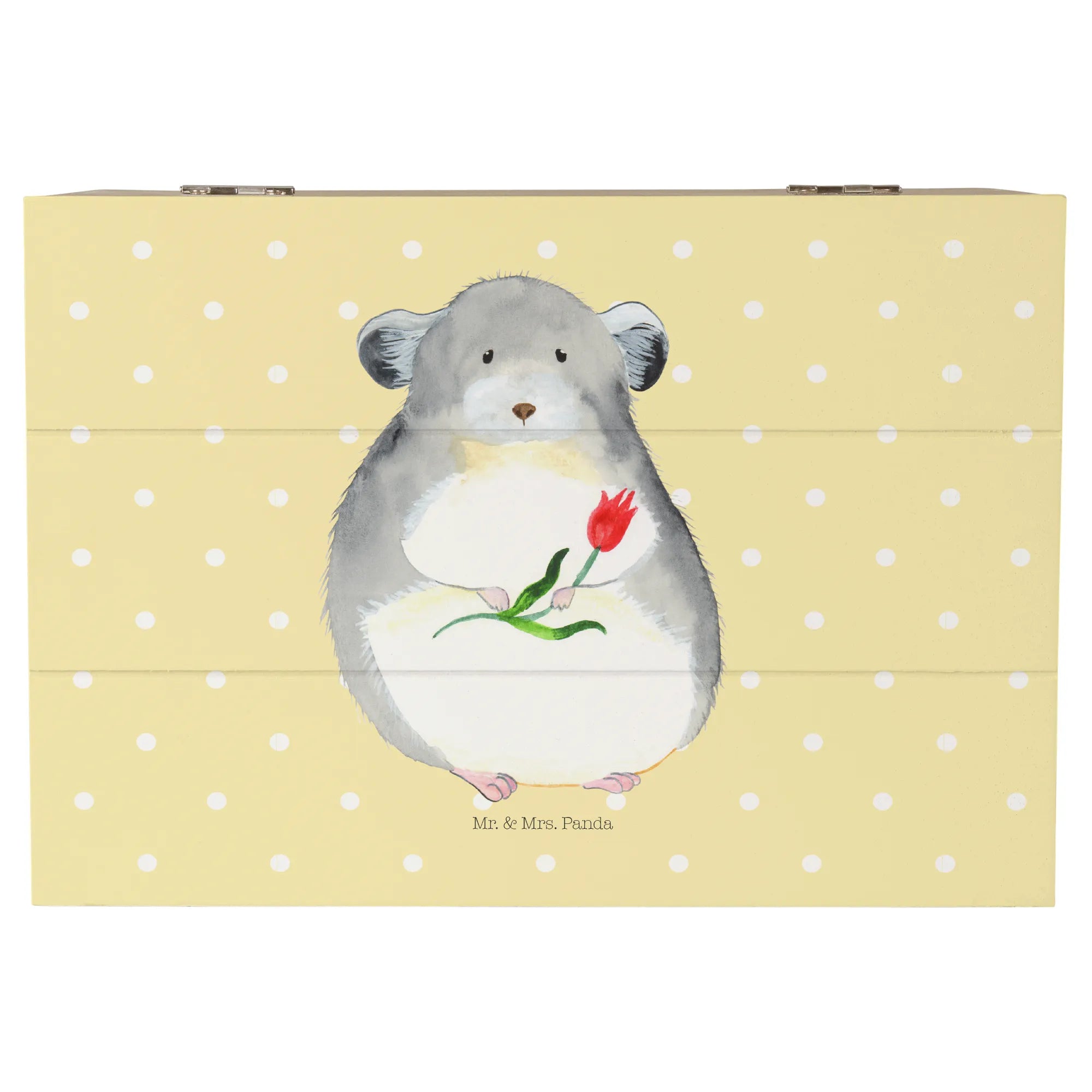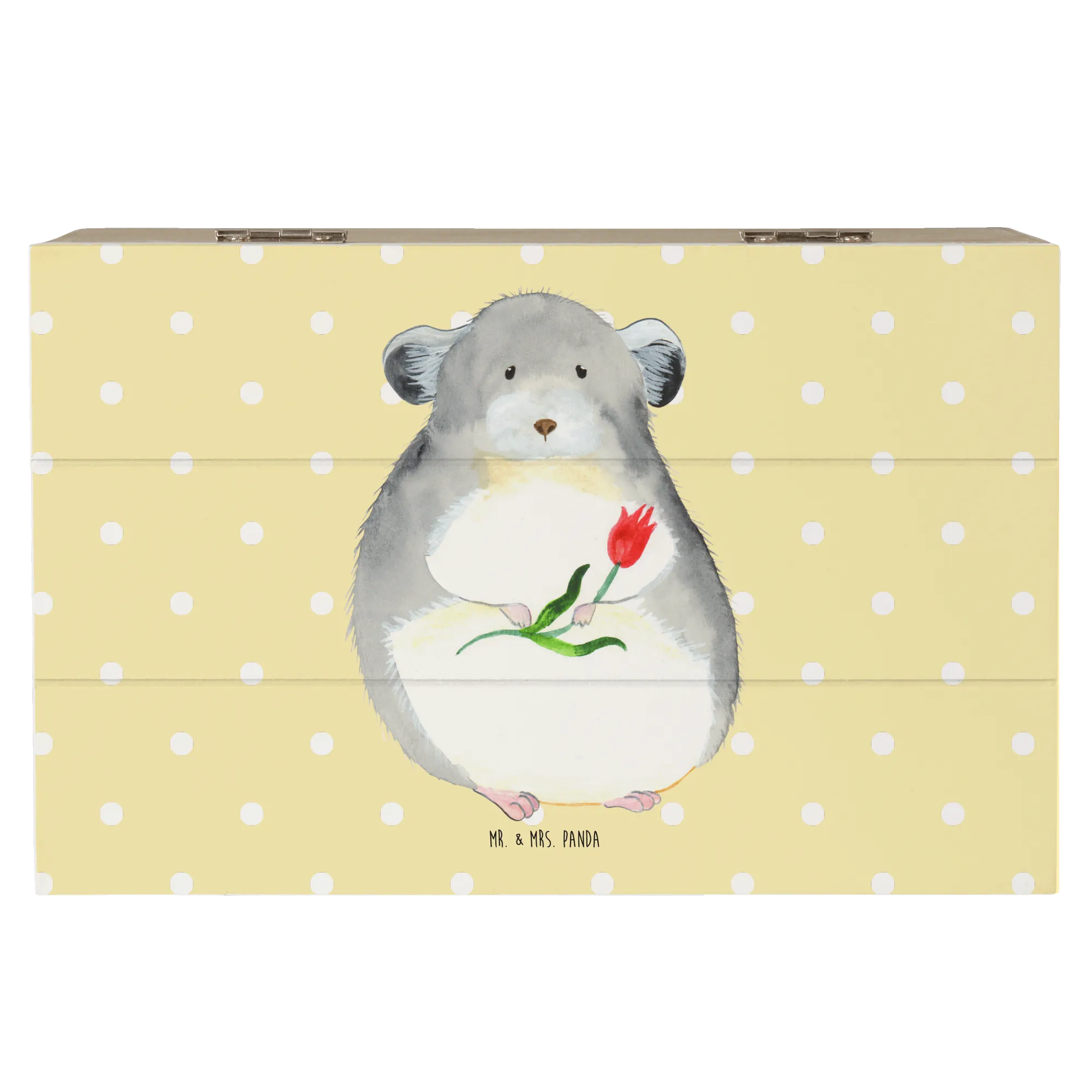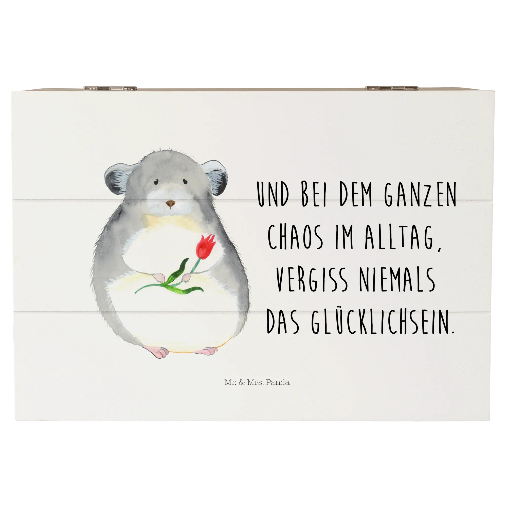 Skrzynia drewniana szynszyla kwiat - 22 x 15 cm - z napisem - biały