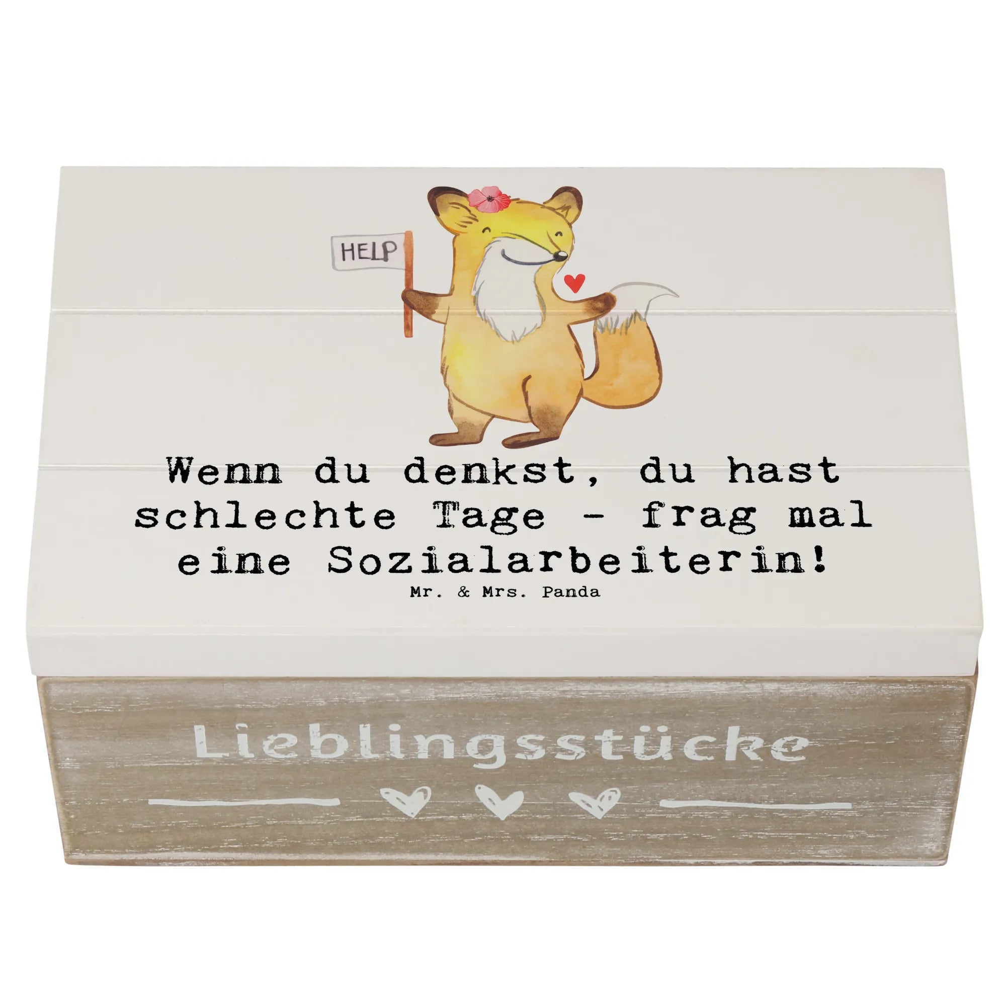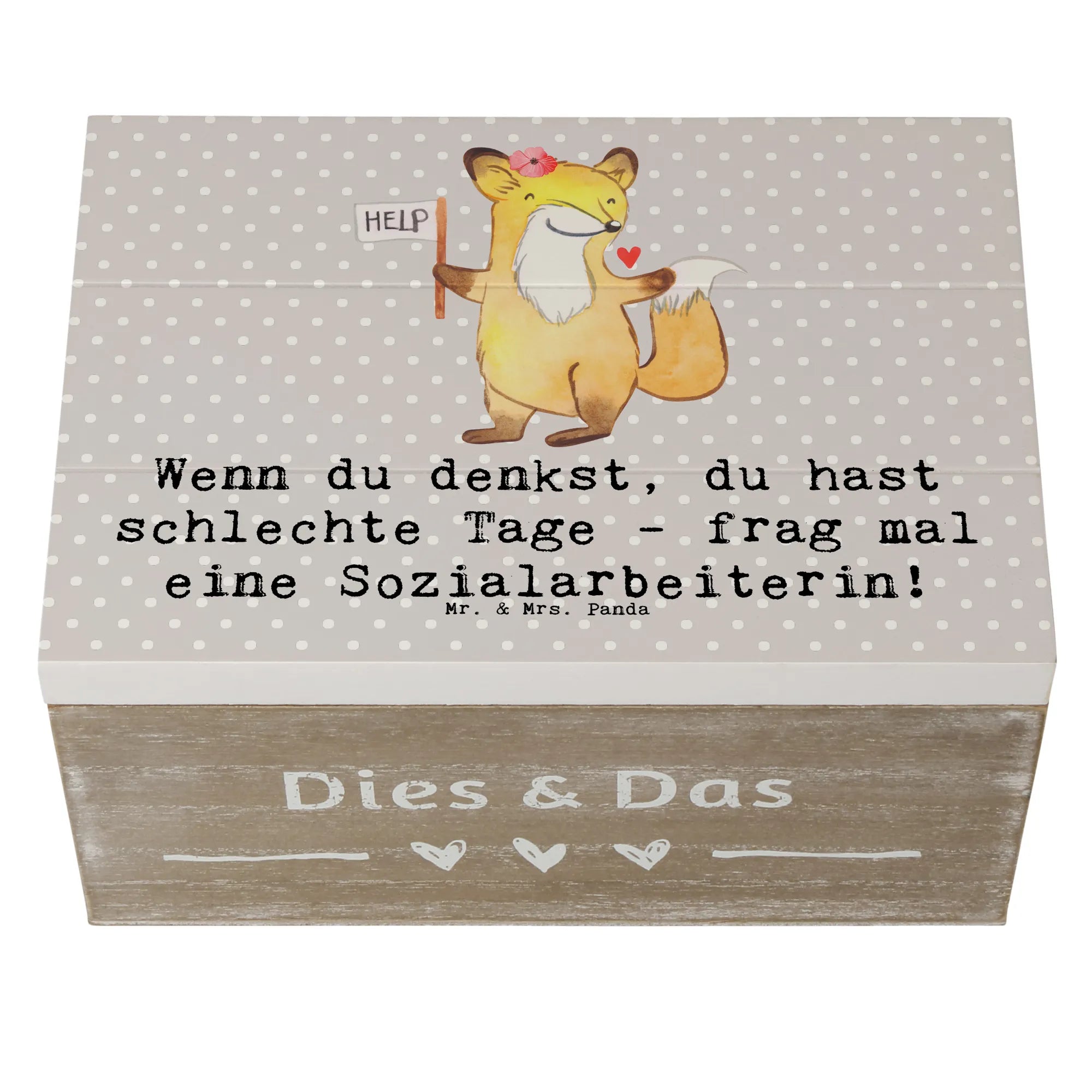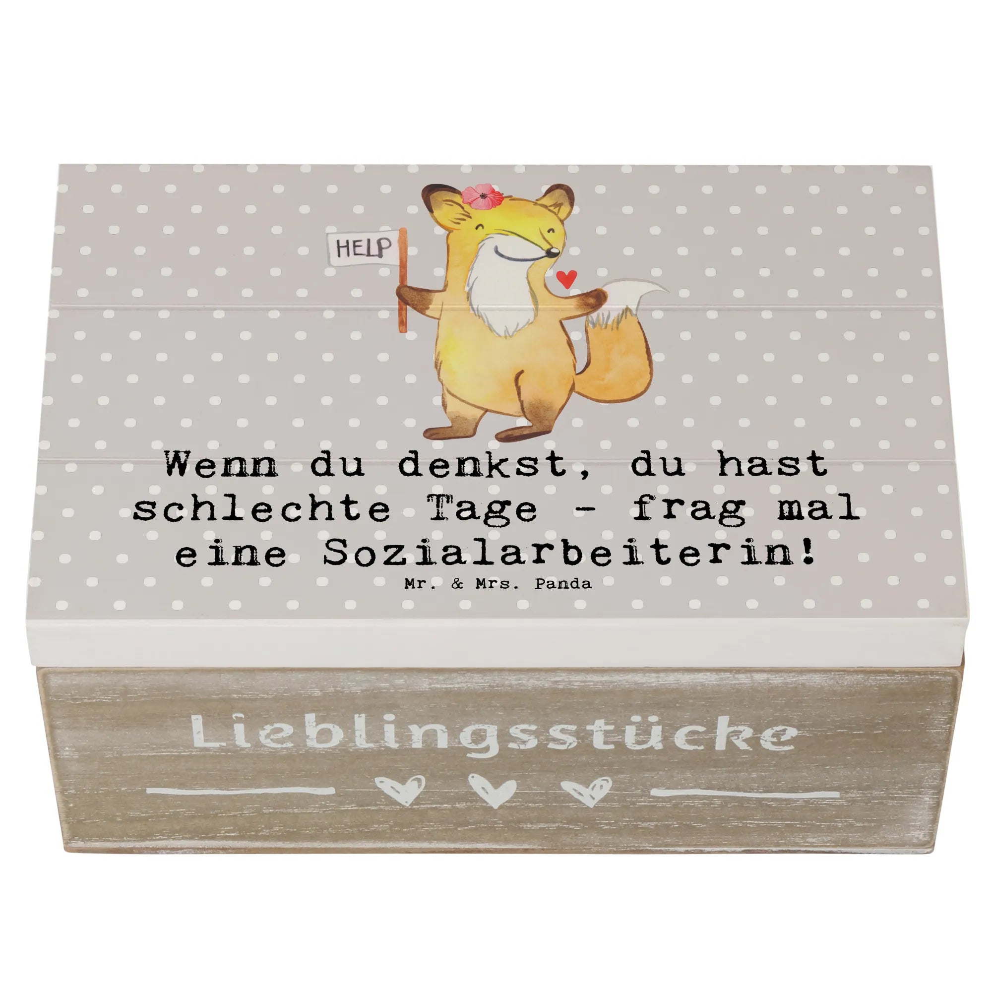 Skrzynia drewniana Wenn du denkst, du hast schlechte Tage - frag mal eine Sozialarbeiterin! - 19 x 12 cm - Pastelowy szary