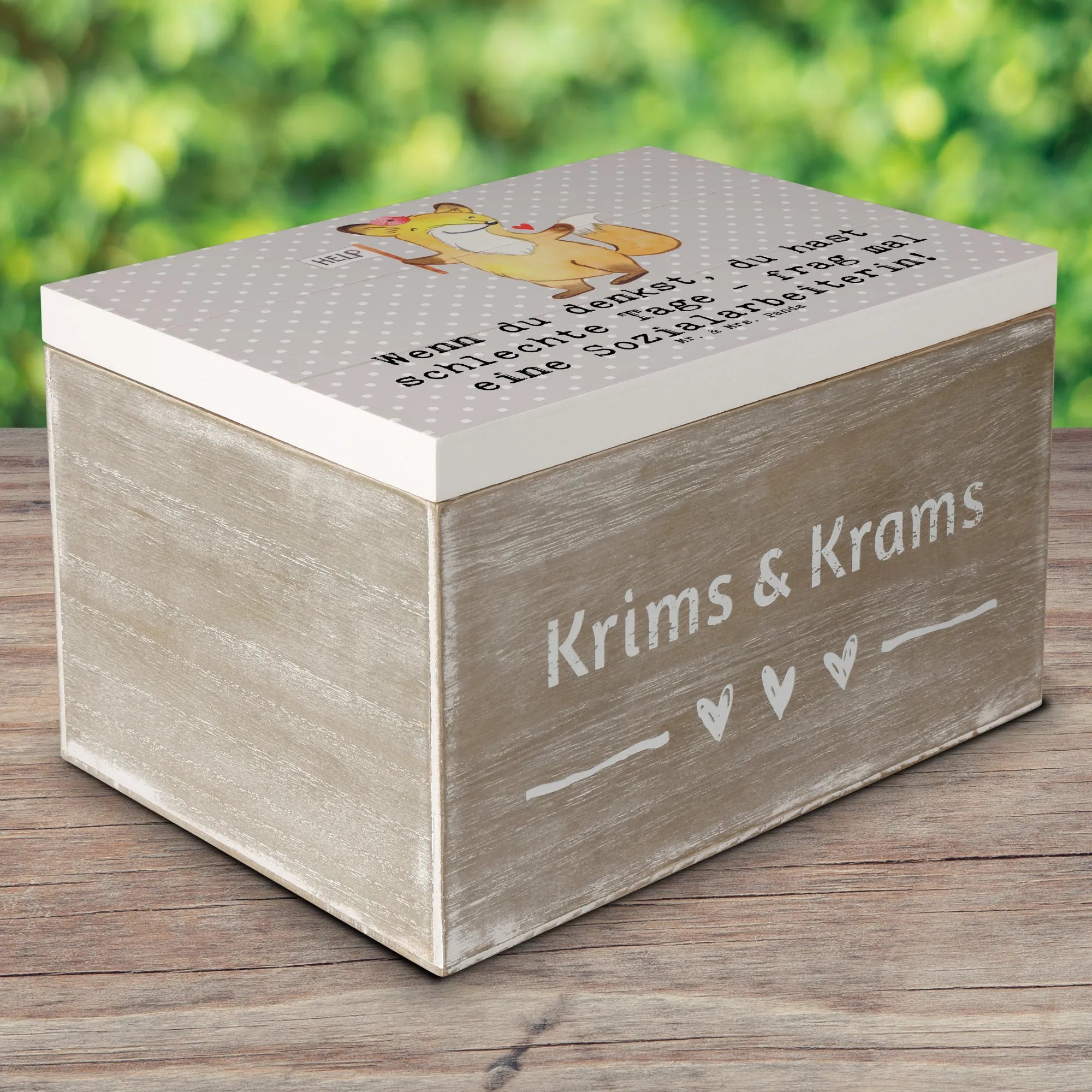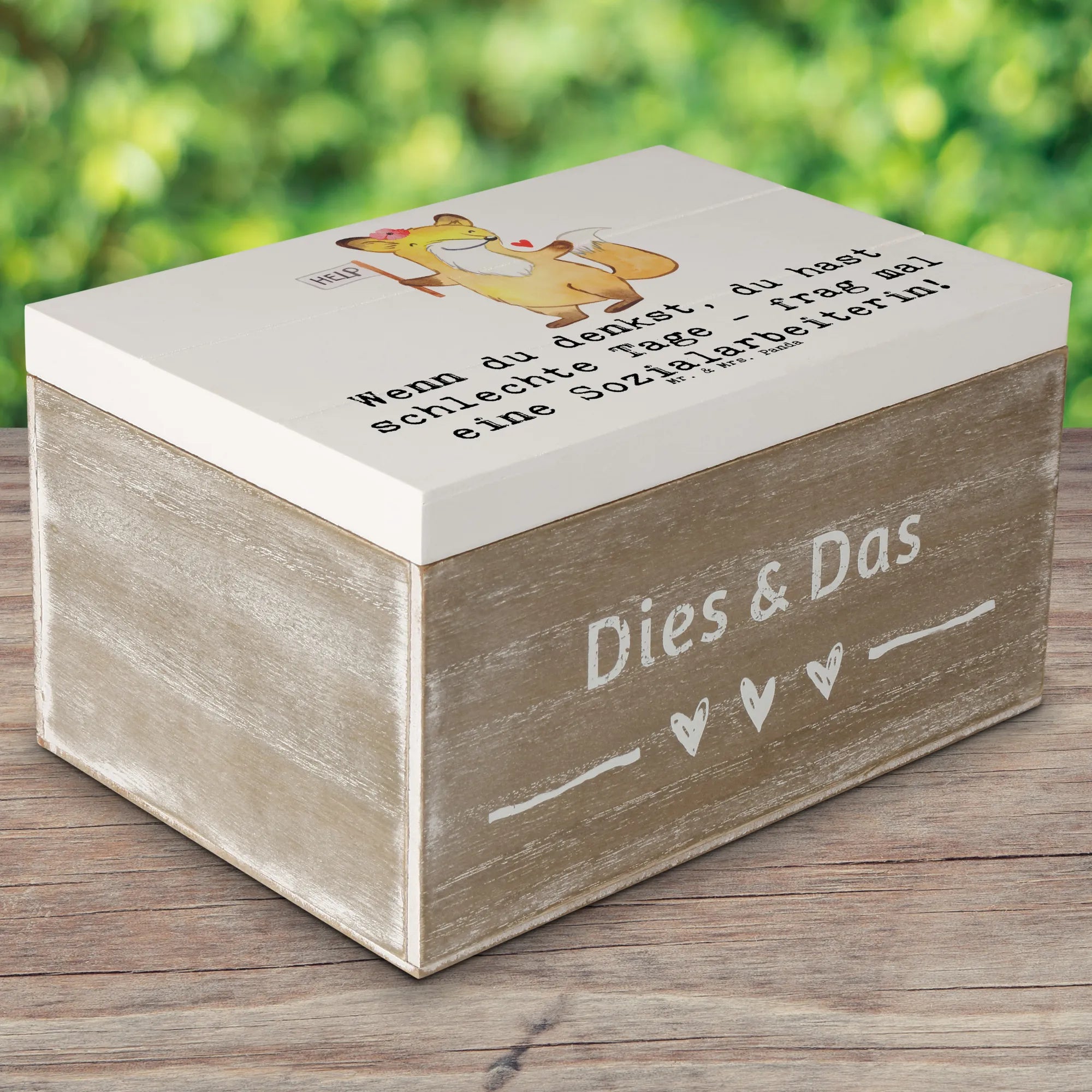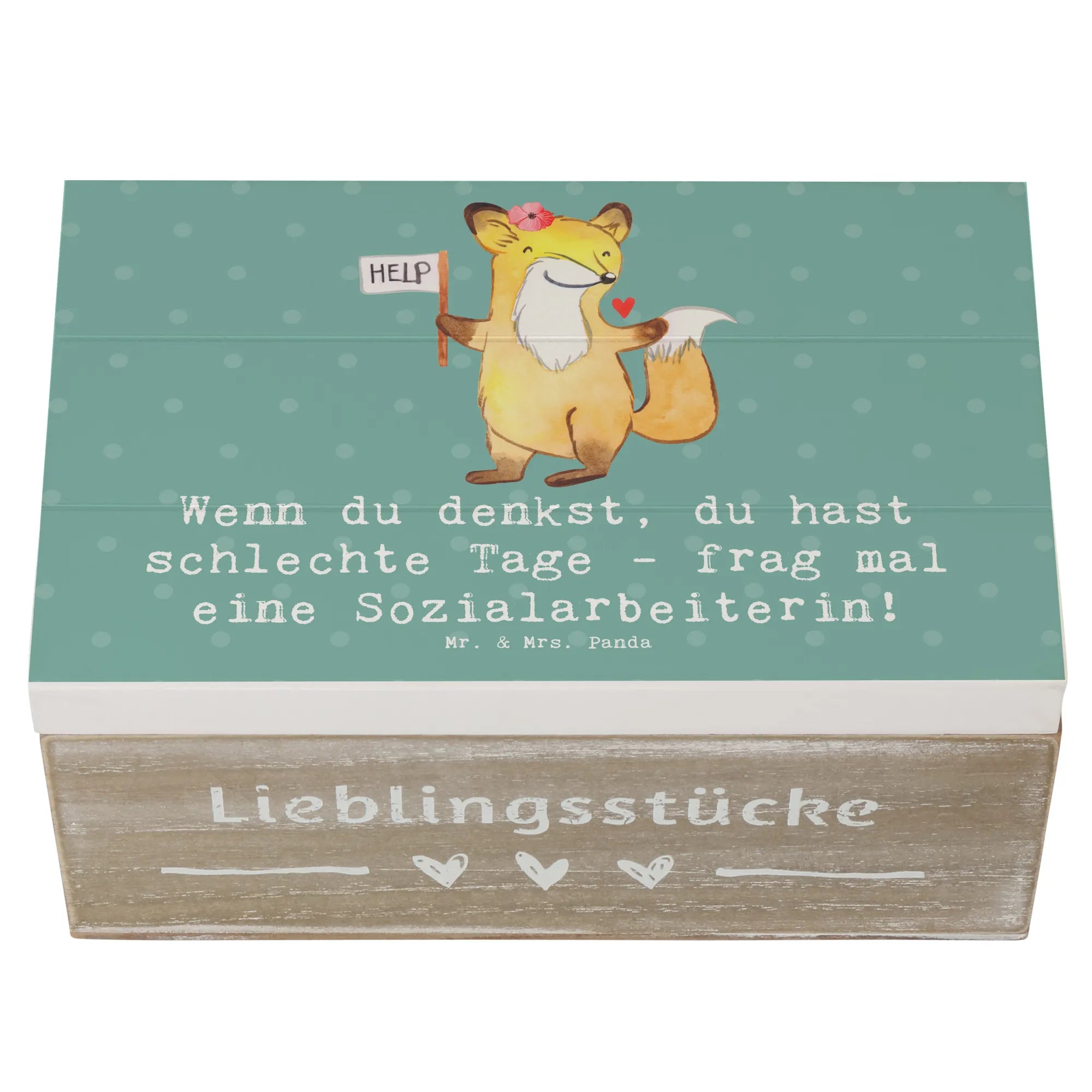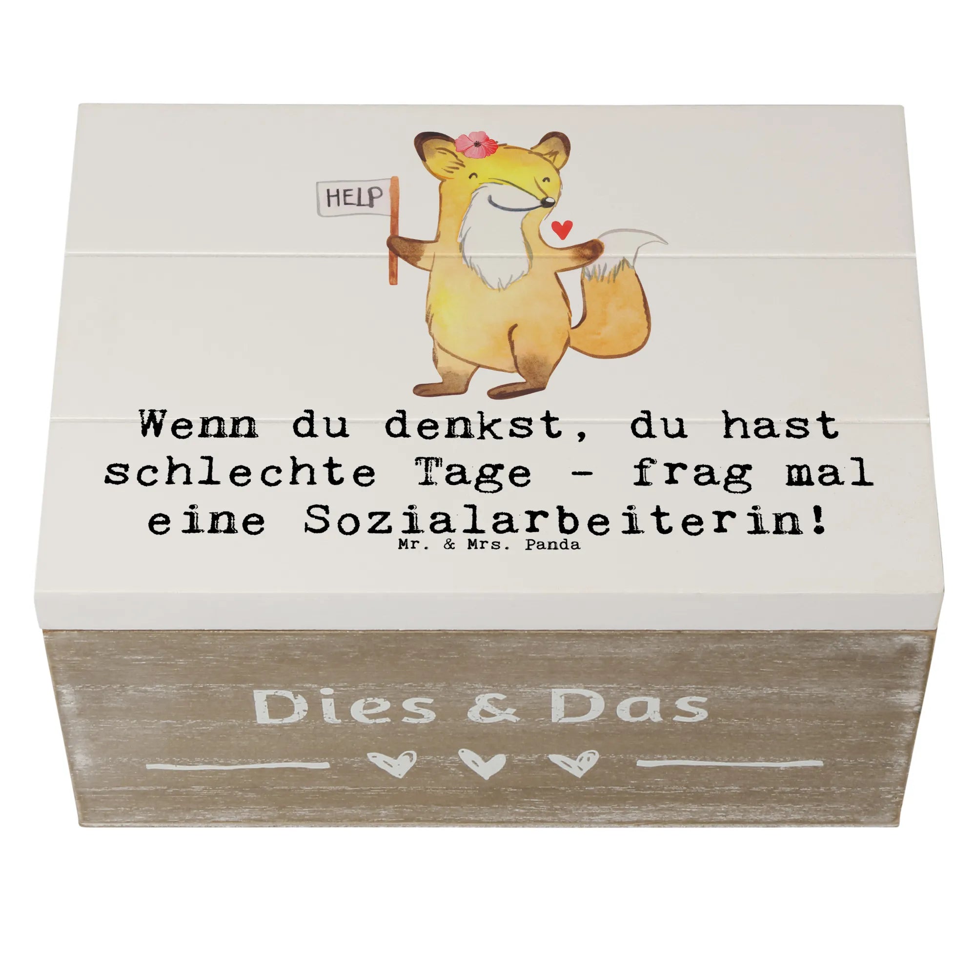 Skrzynia drewniana Wenn du denkst, du hast schlechte Tage - frag mal eine Sozialarbeiterin! - 19 x 12 cm - Pastelowy szary