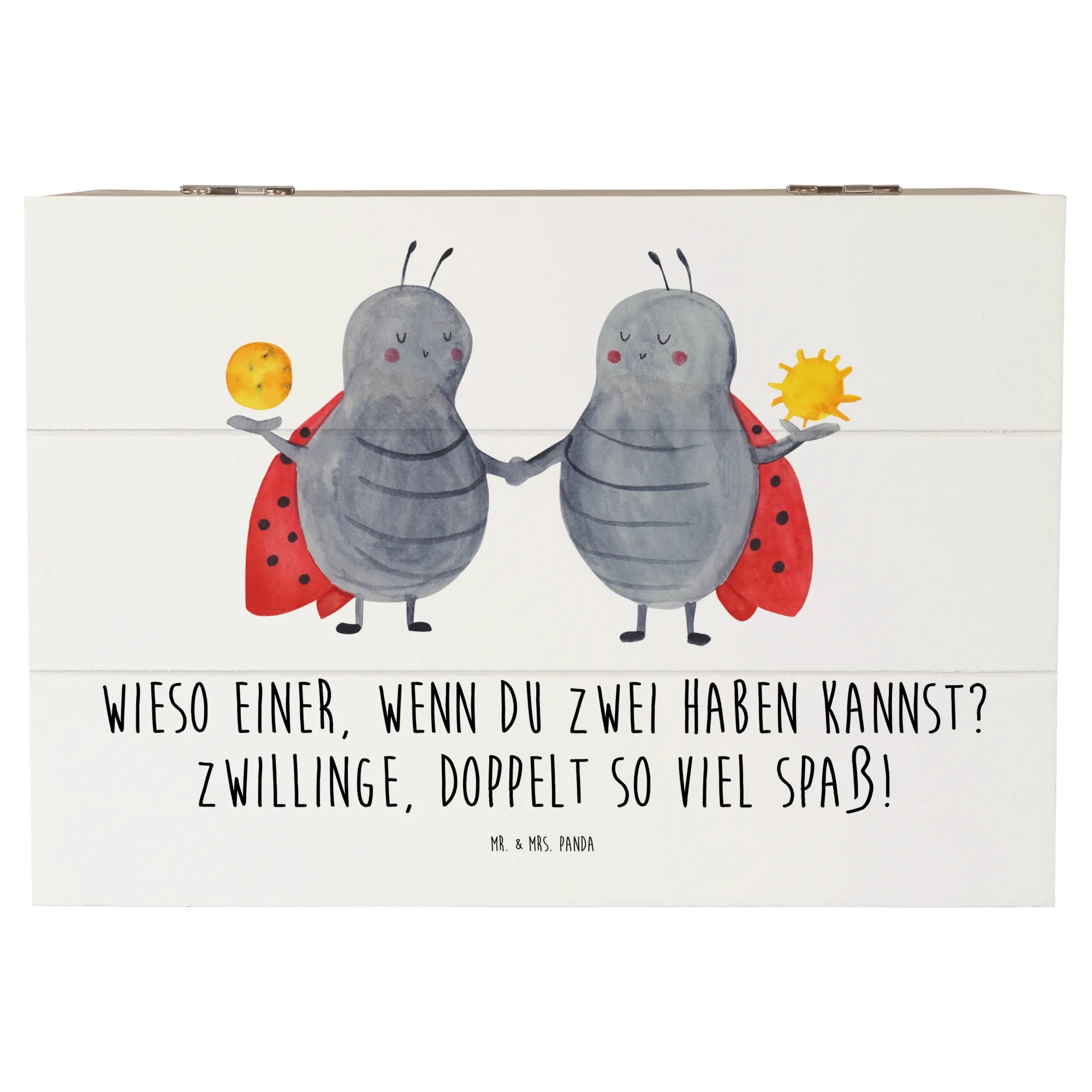 Skrzynia drewniana Wieso einer, wenn du zwei haben kannst? Zwillinge, doppelt so viel Spaß! - 22 x 15 cm - biały