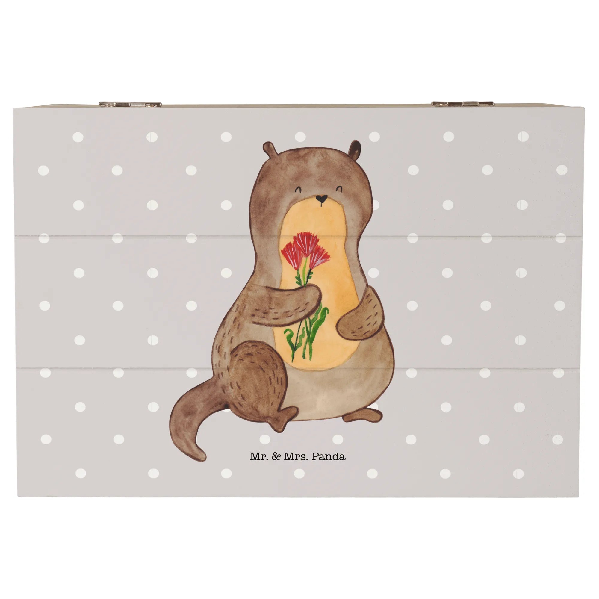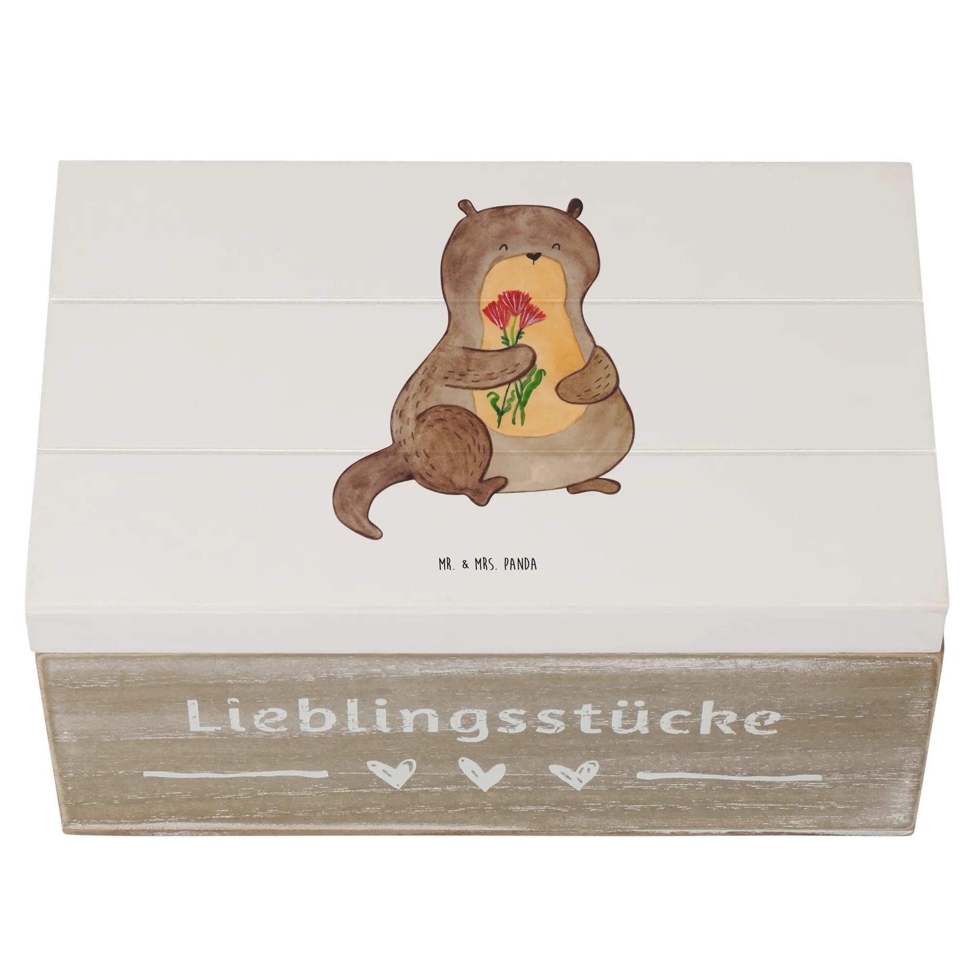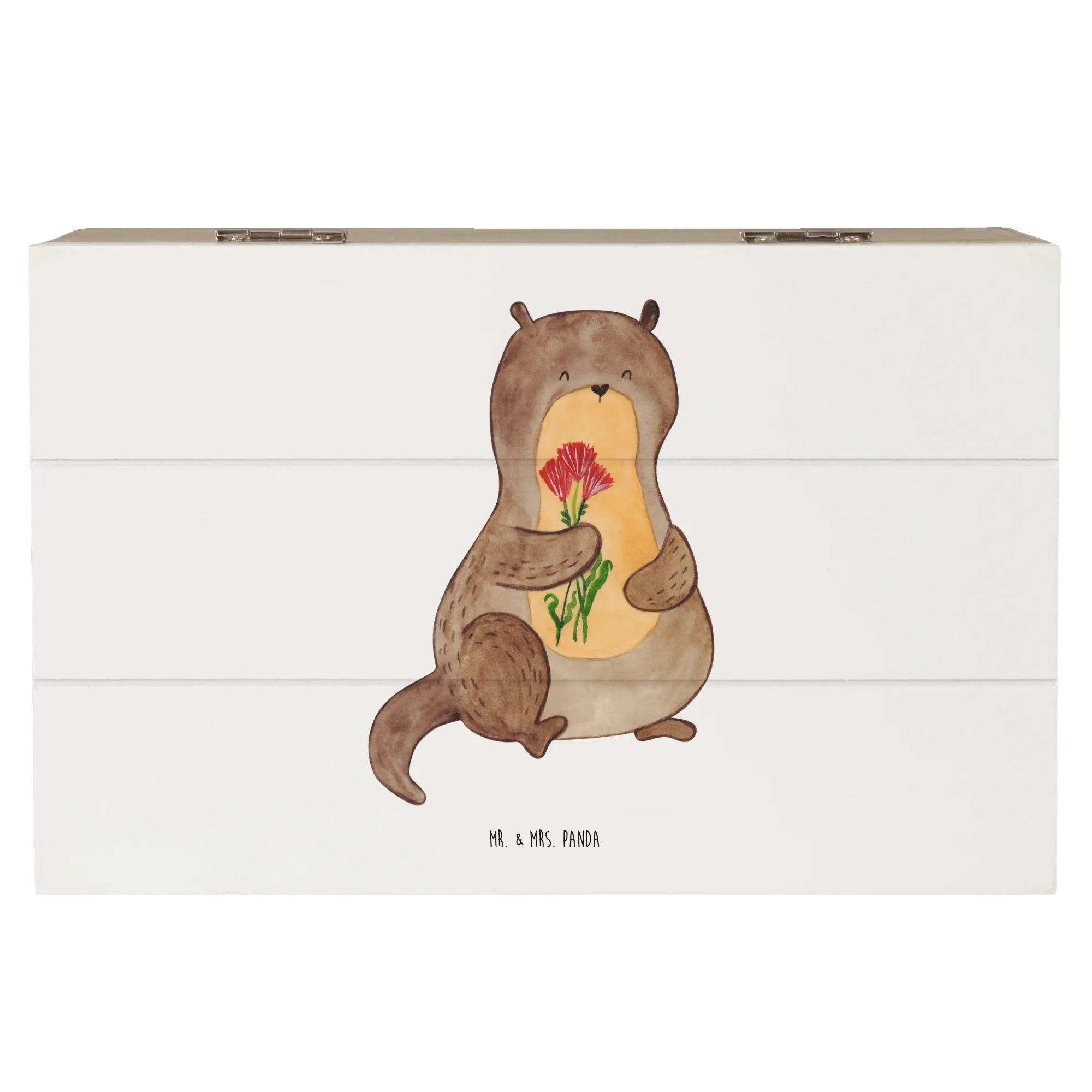 Skrzynia drewniana wydra bukiet kwiatów - 22 x 15 cm - z napisem - biały