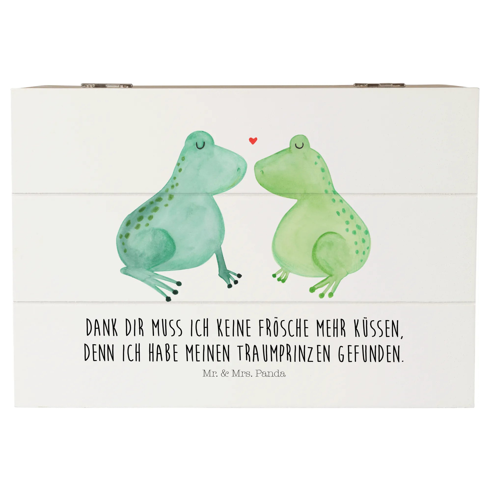Skrzynia drewniana Żabia miłość - 22 x 15 cm - z napisem - biały