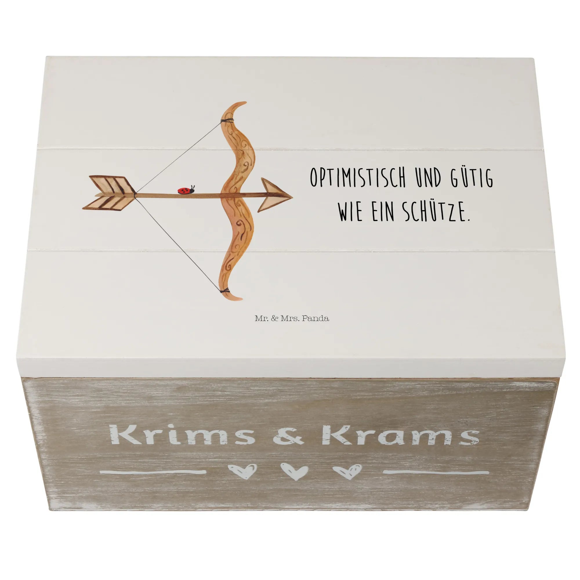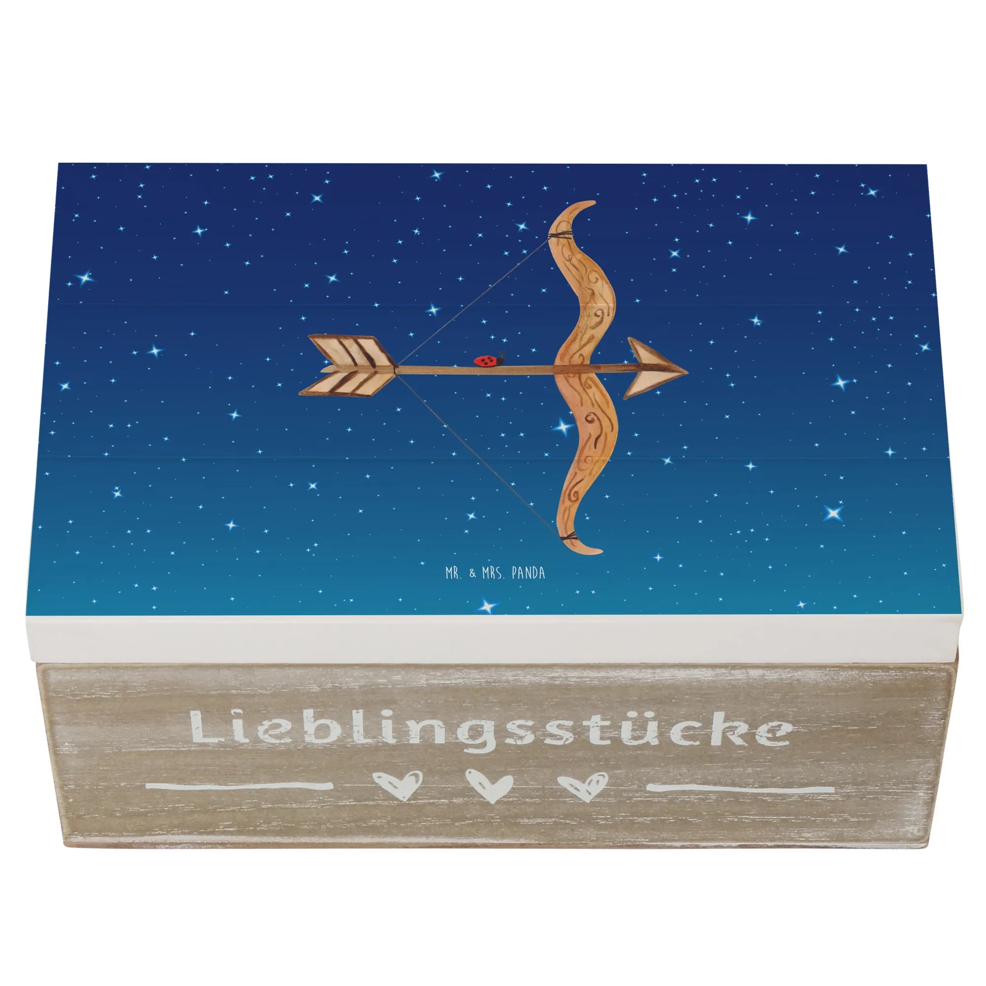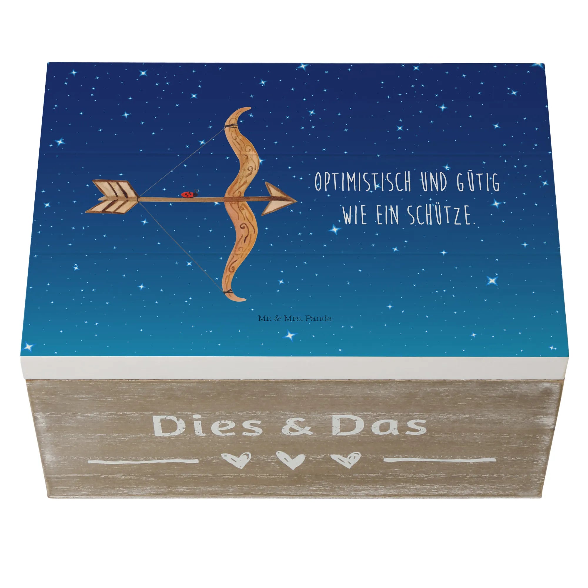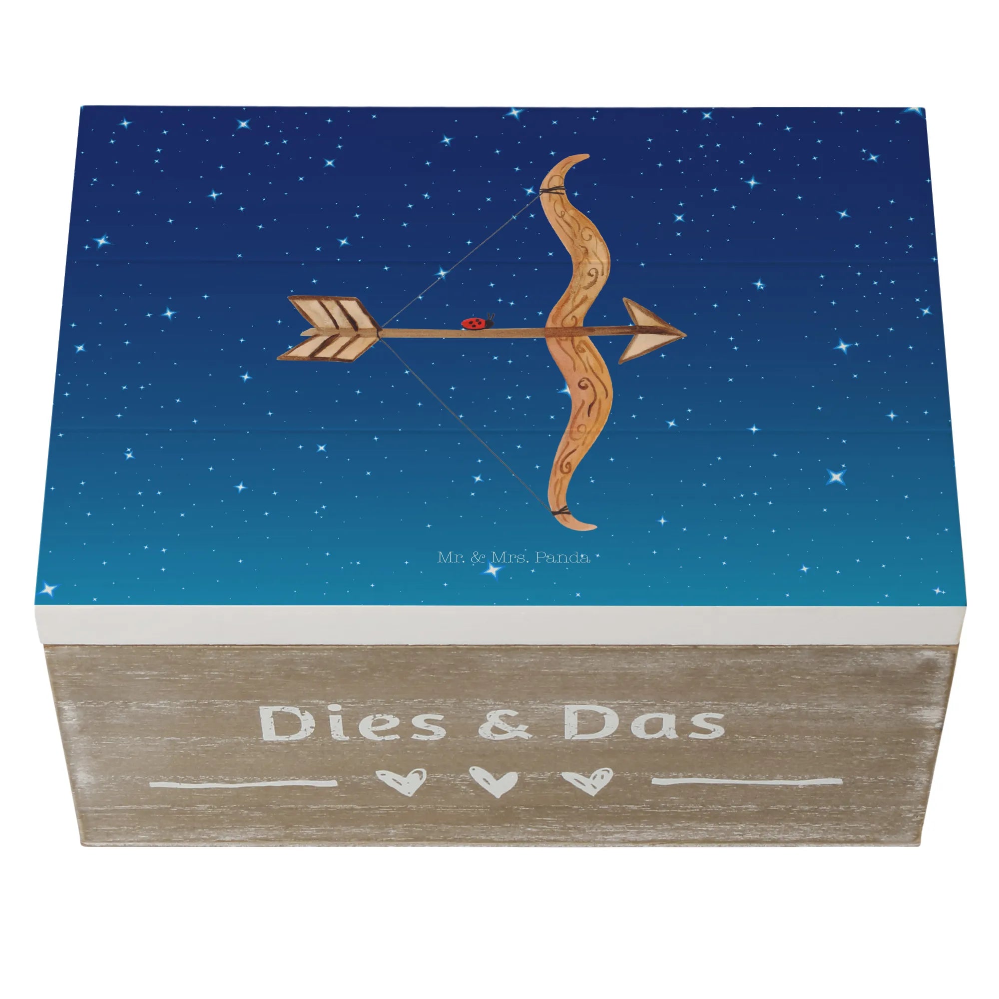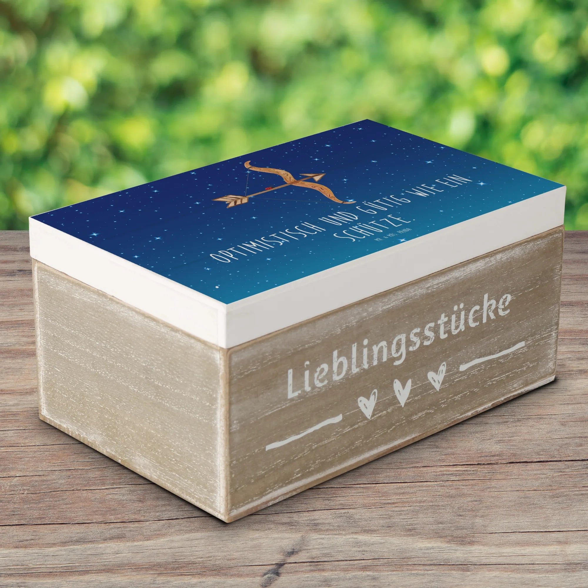 Skrzynia drewniana Znak zodiaku Strzelec - 22 x 15 cm - z napisem - biały