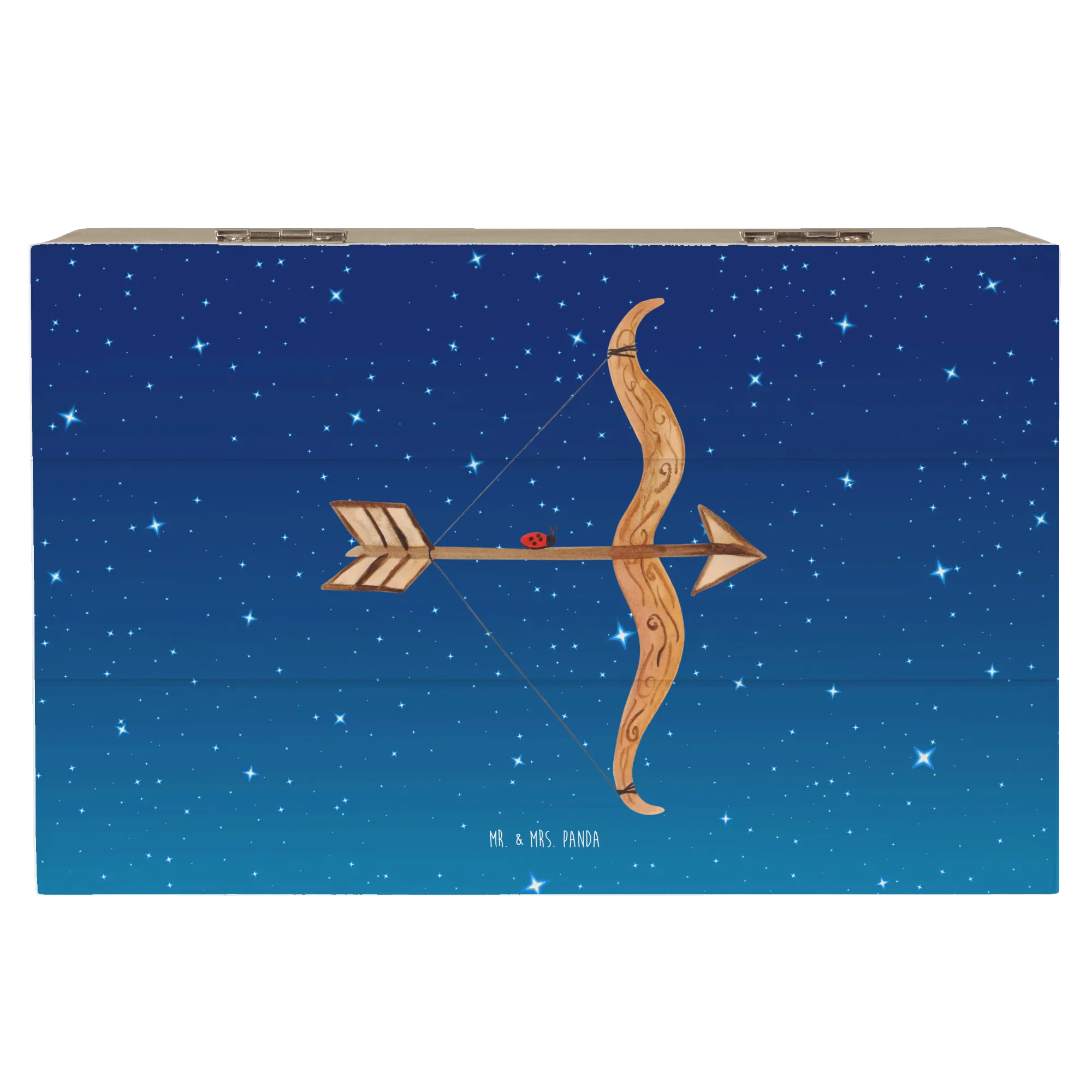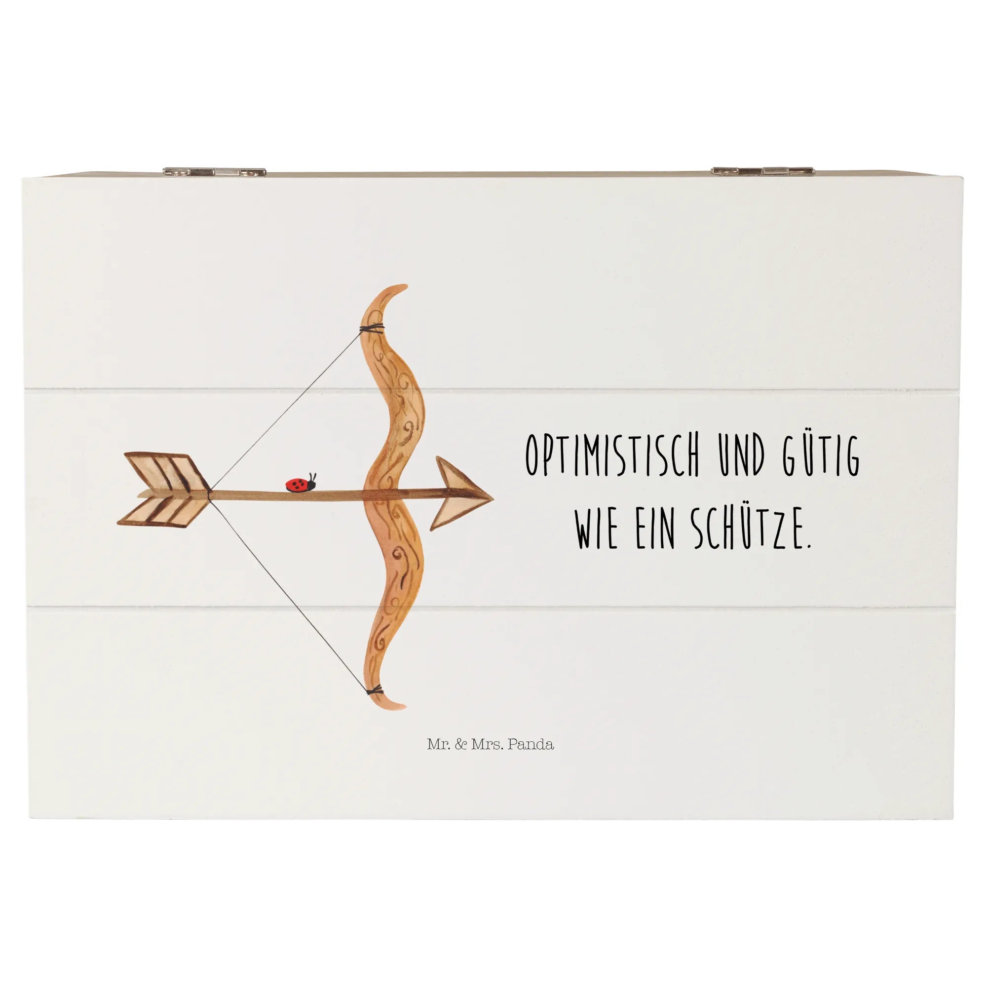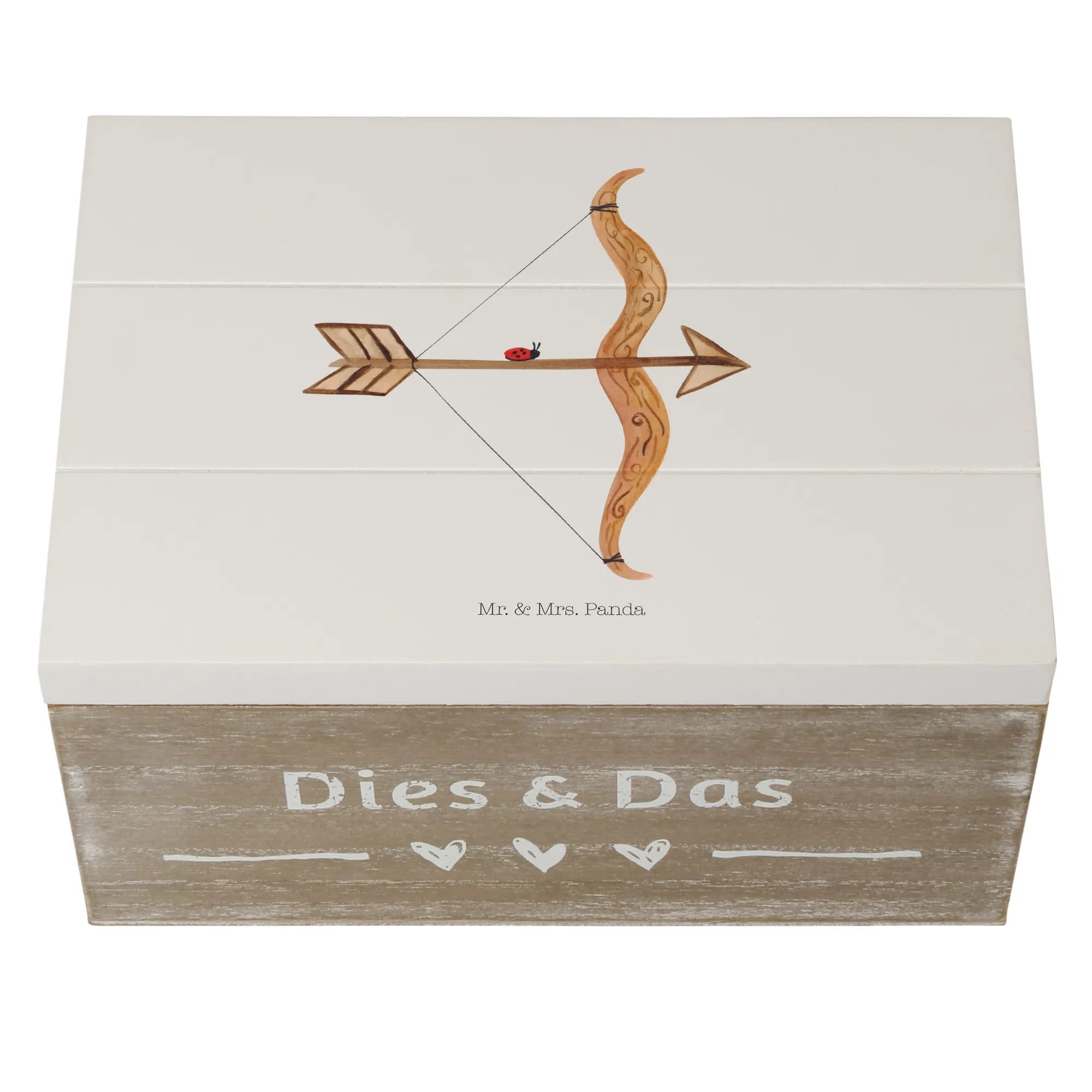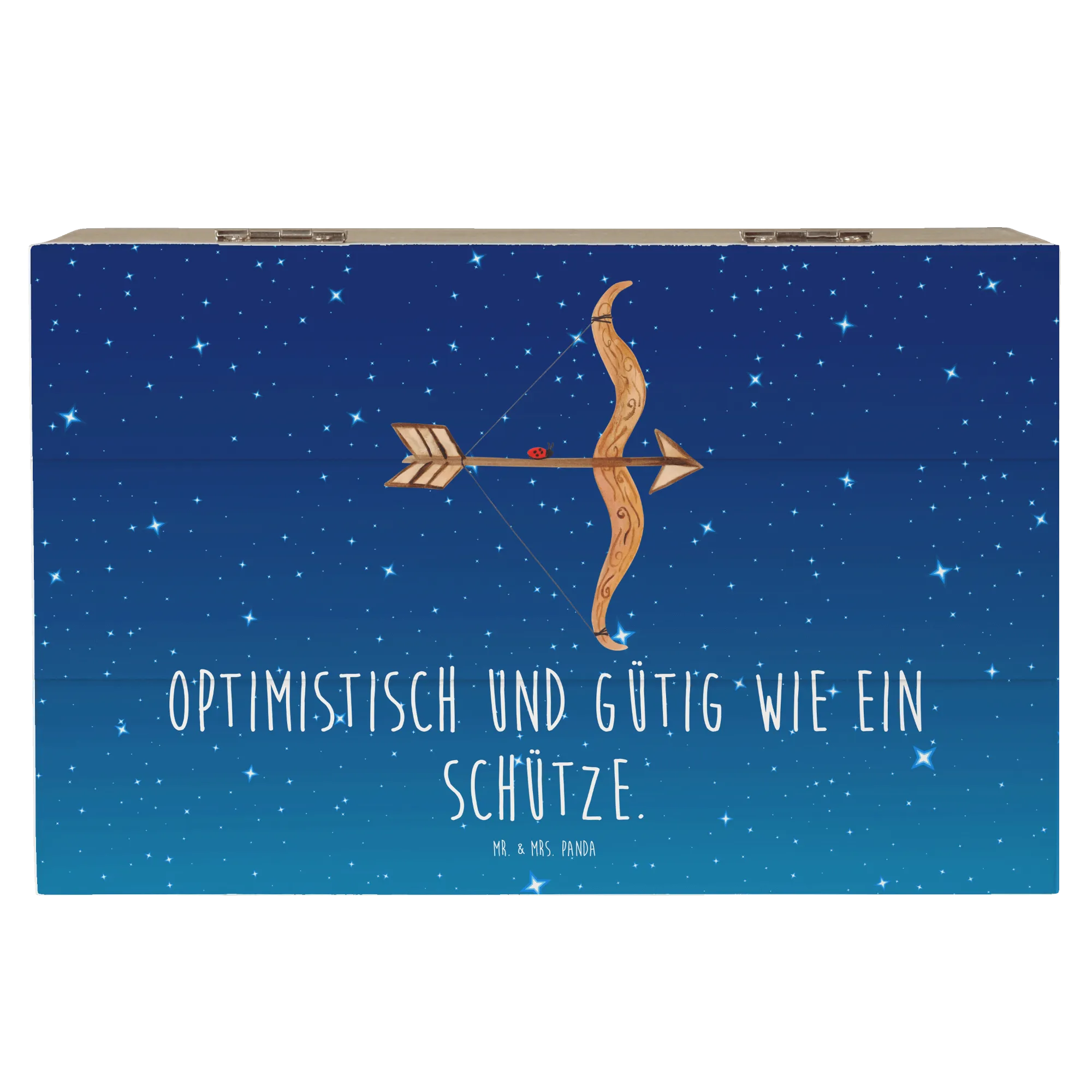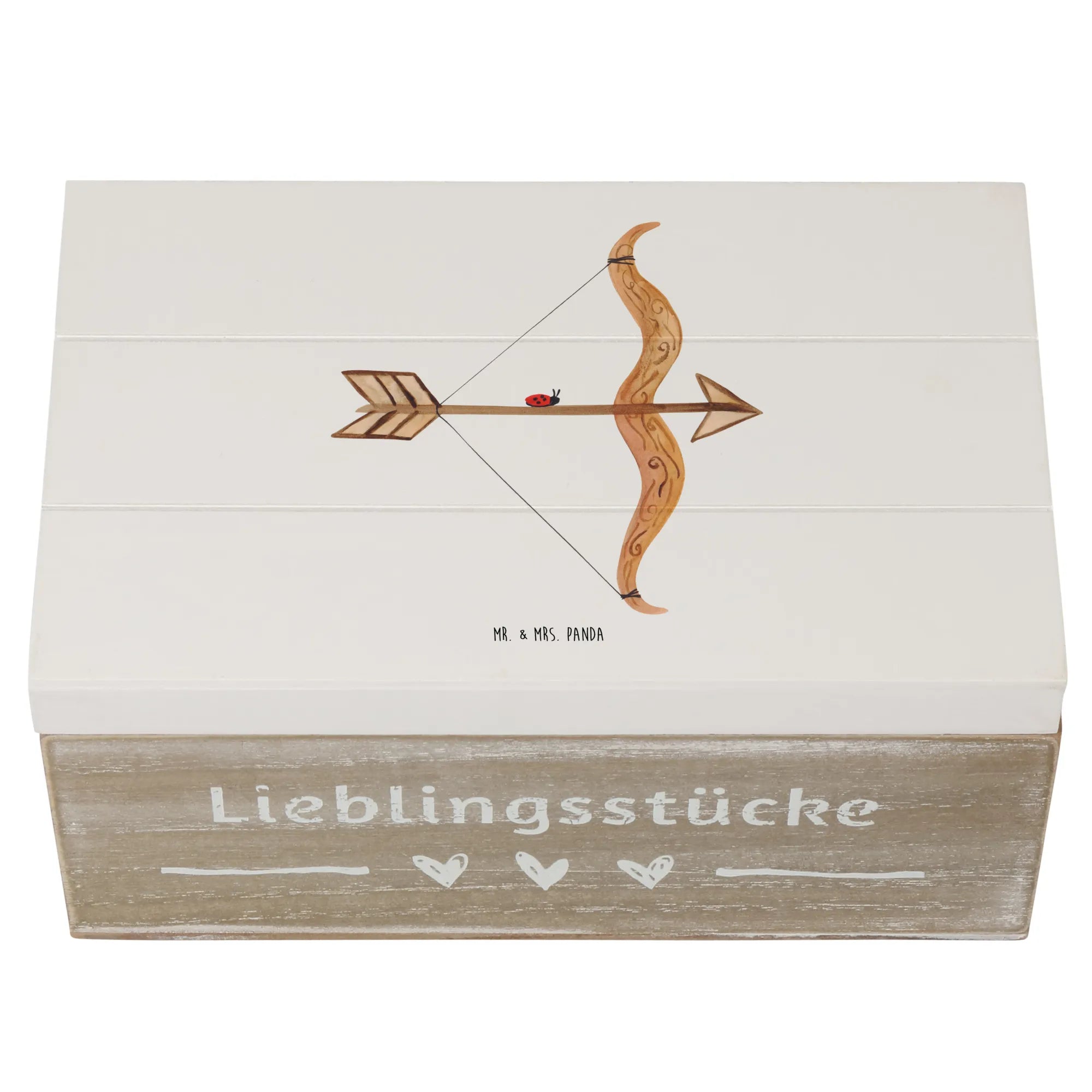 Skrzynia drewniana Znak zodiaku Strzelec - 22 x 15 cm - z napisem - biały