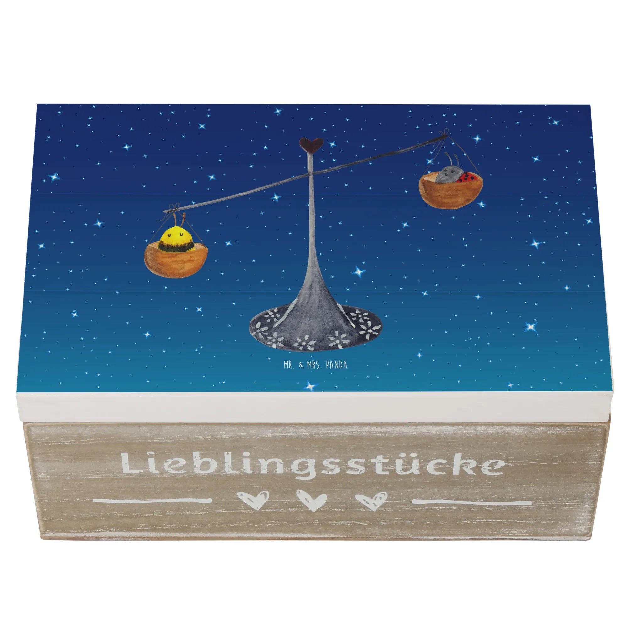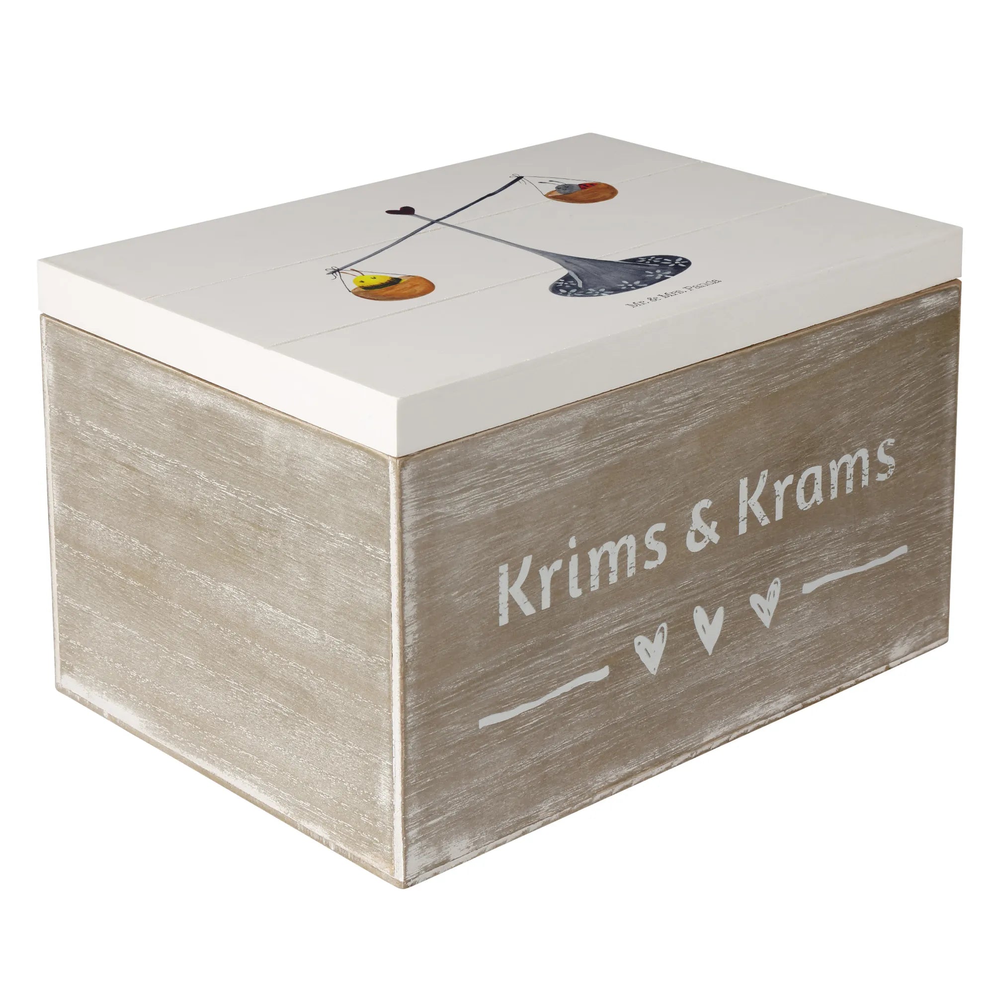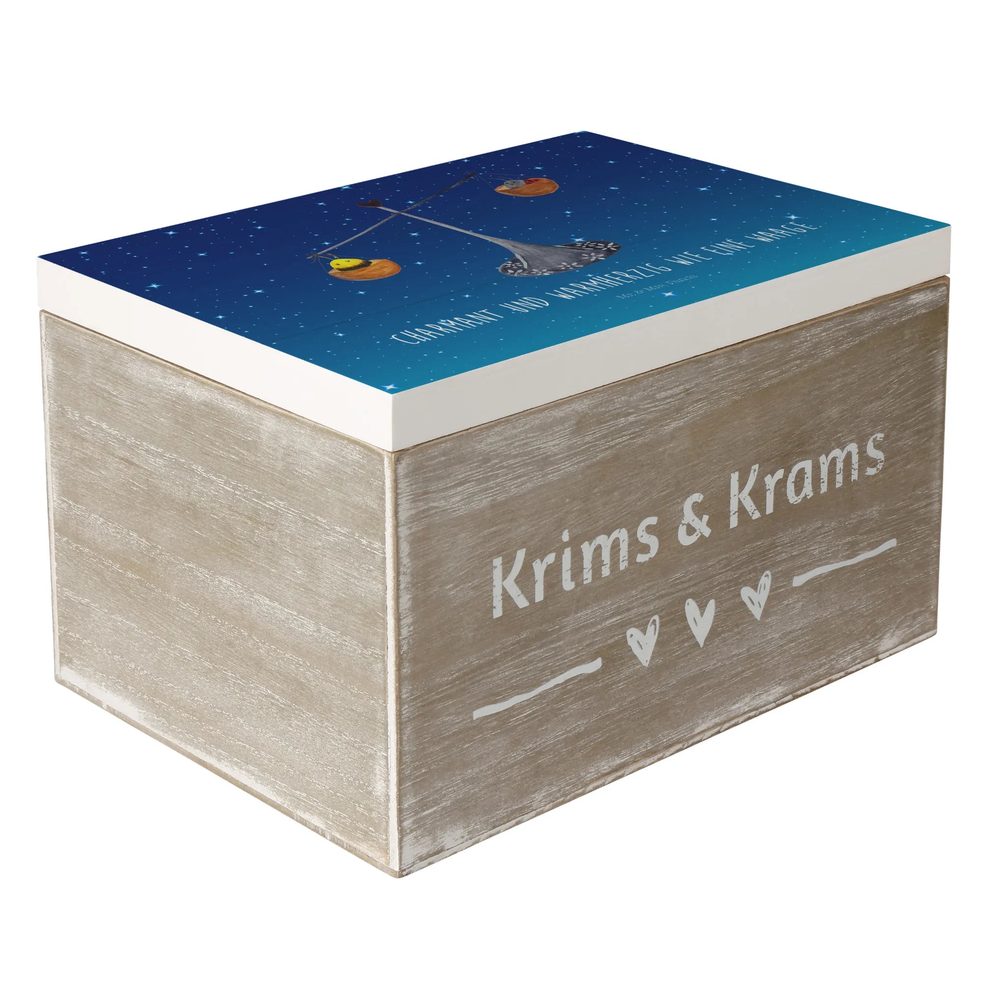 Skrzynia drewniana Znak zodiaku waga - 22 x 15 cm - z napisem - biały