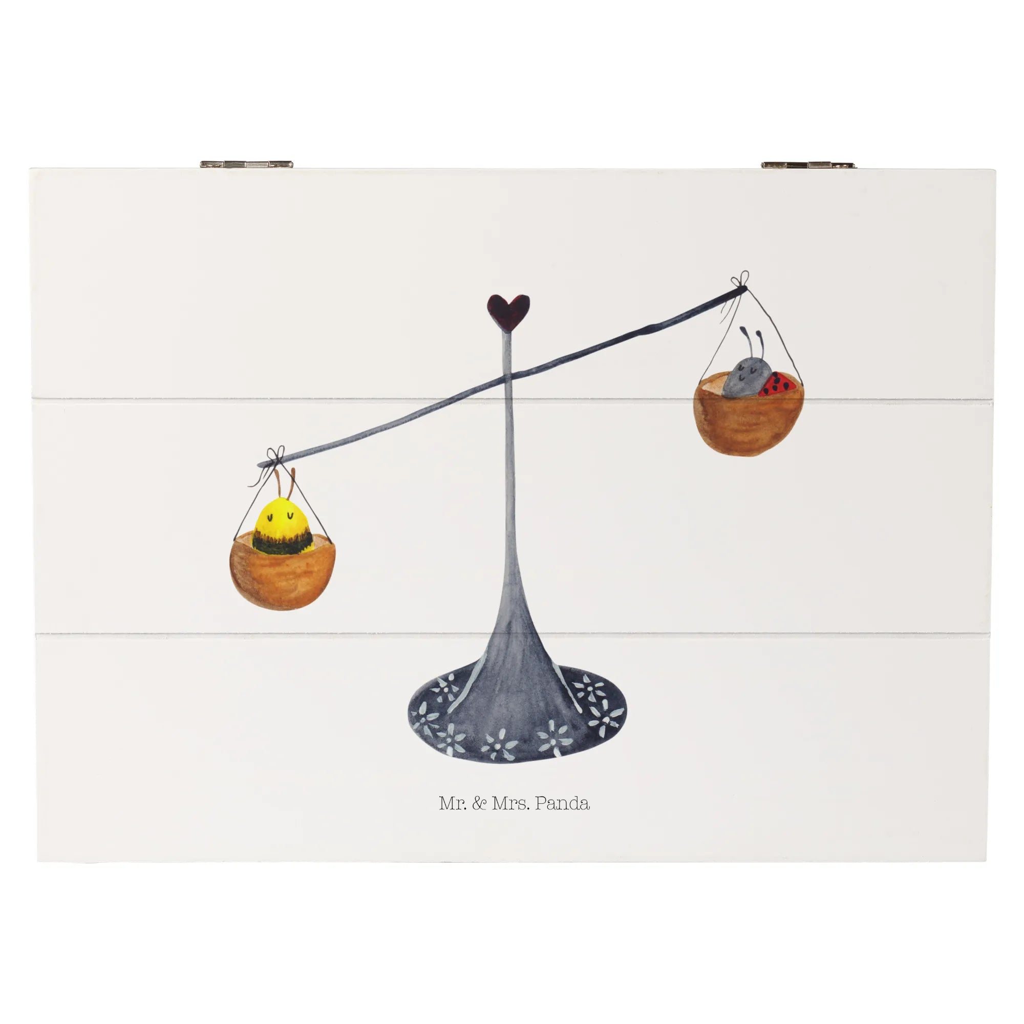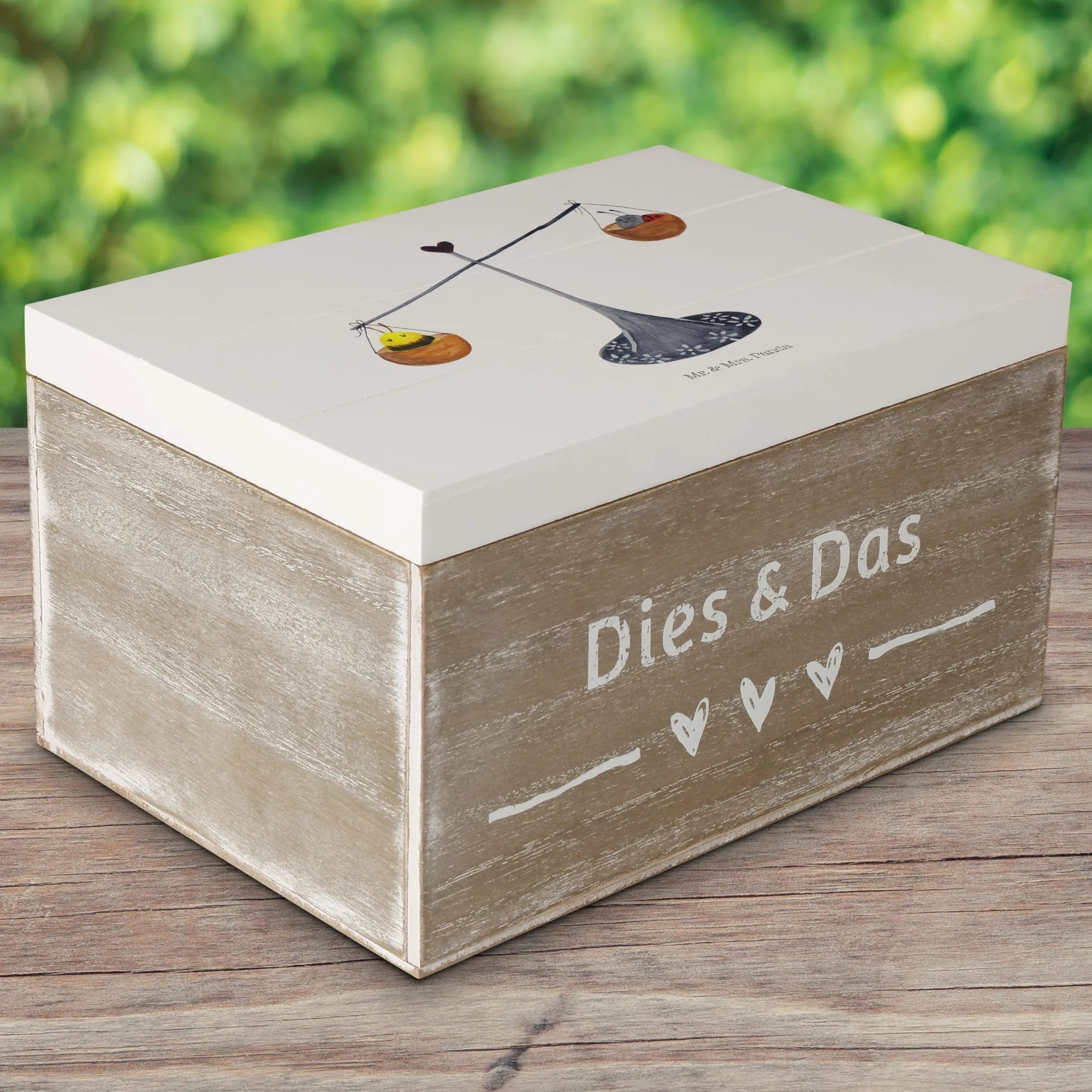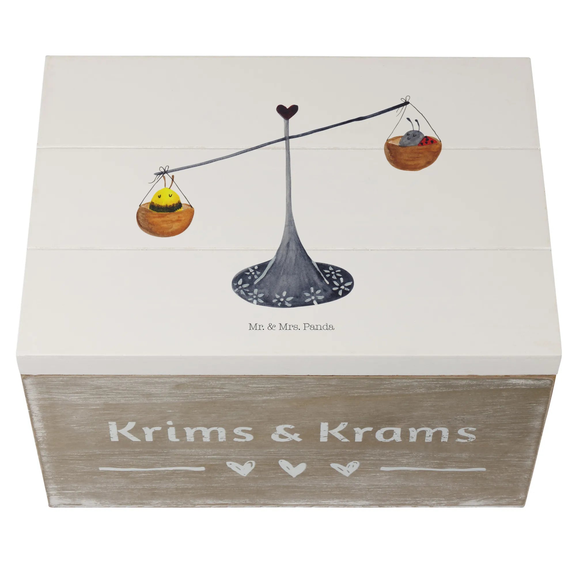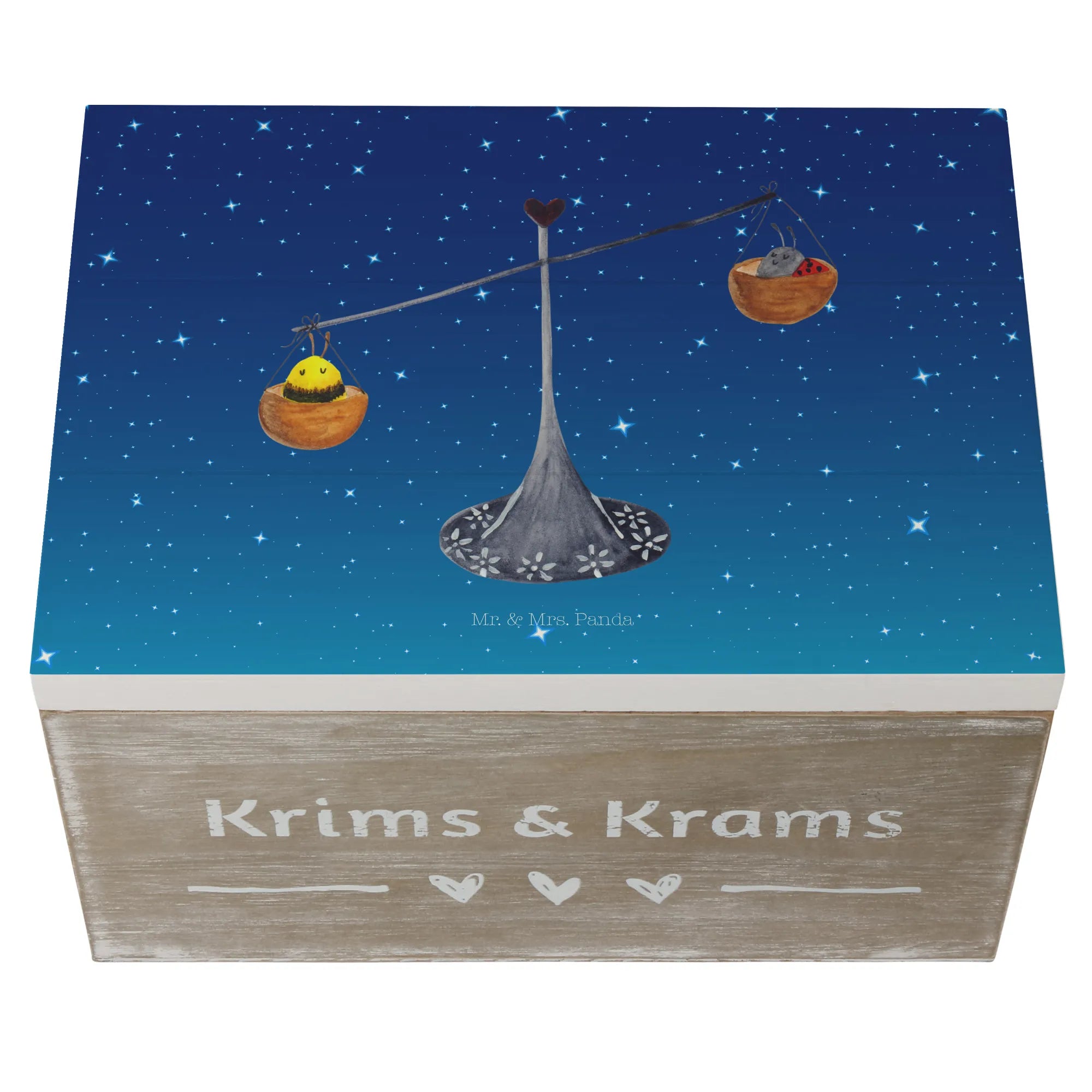 Skrzynia drewniana Znak zodiaku waga - 22 x 15 cm - z napisem - biały