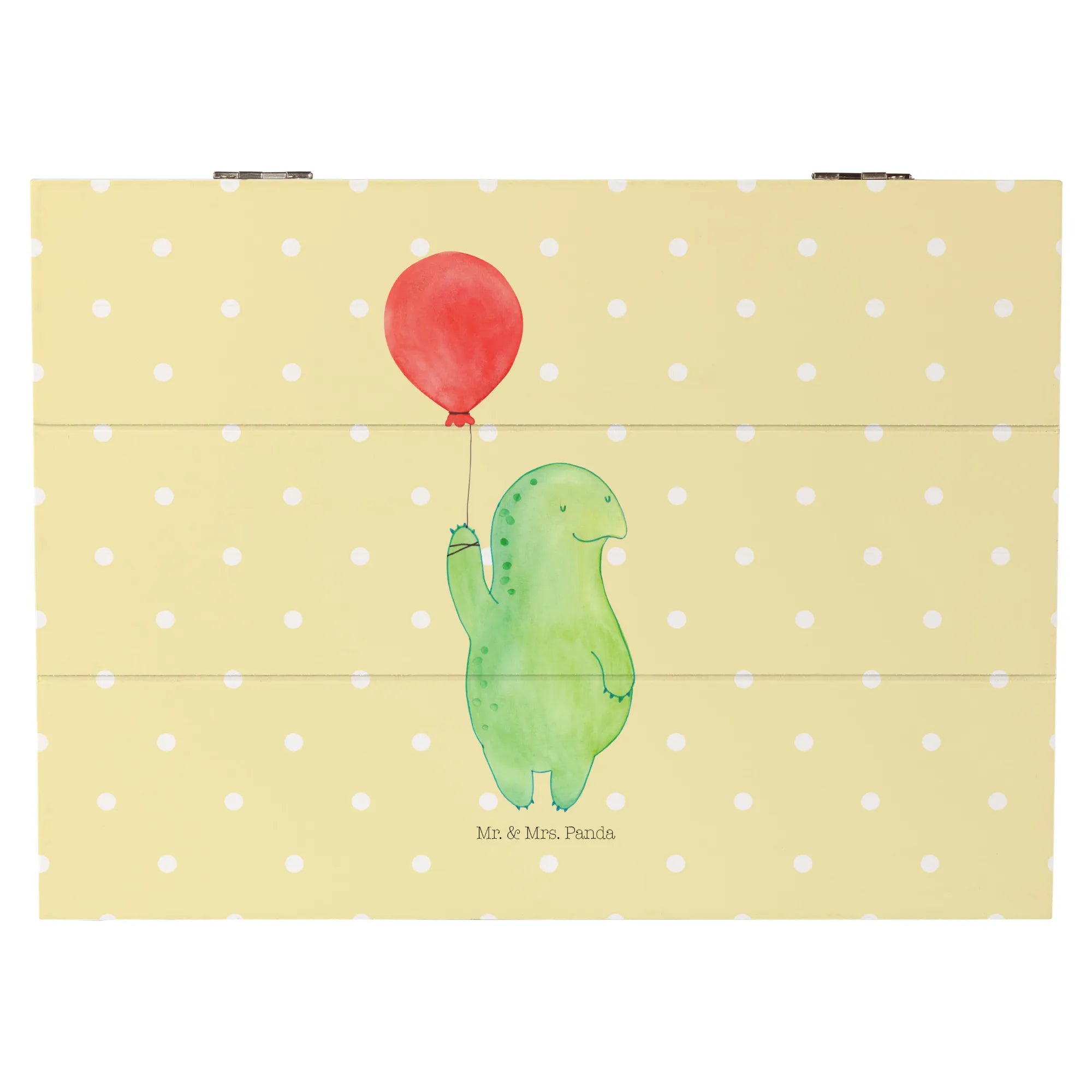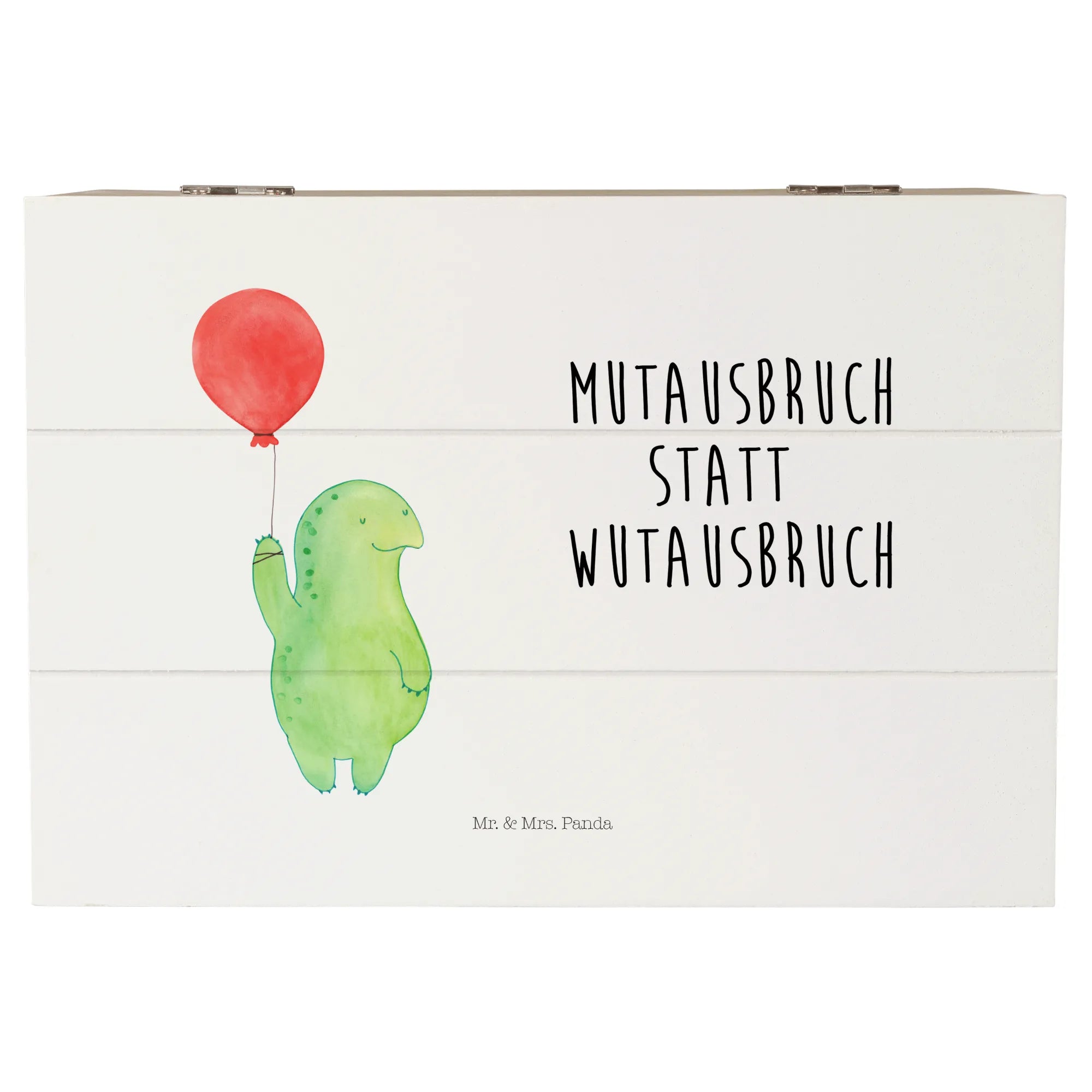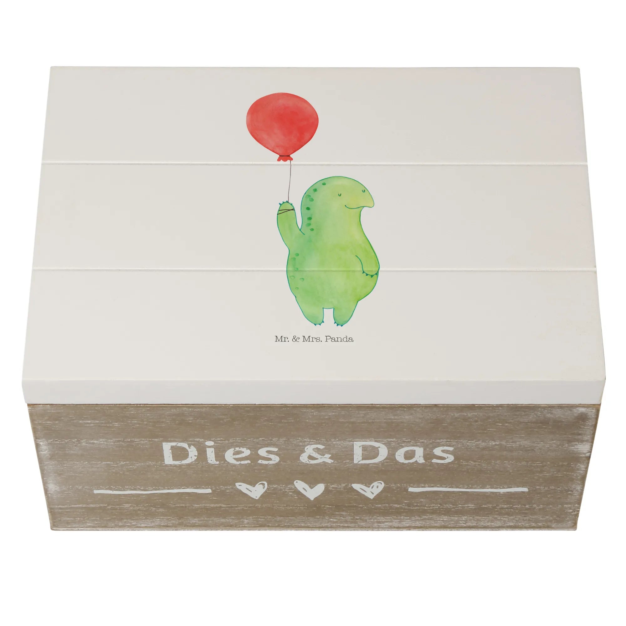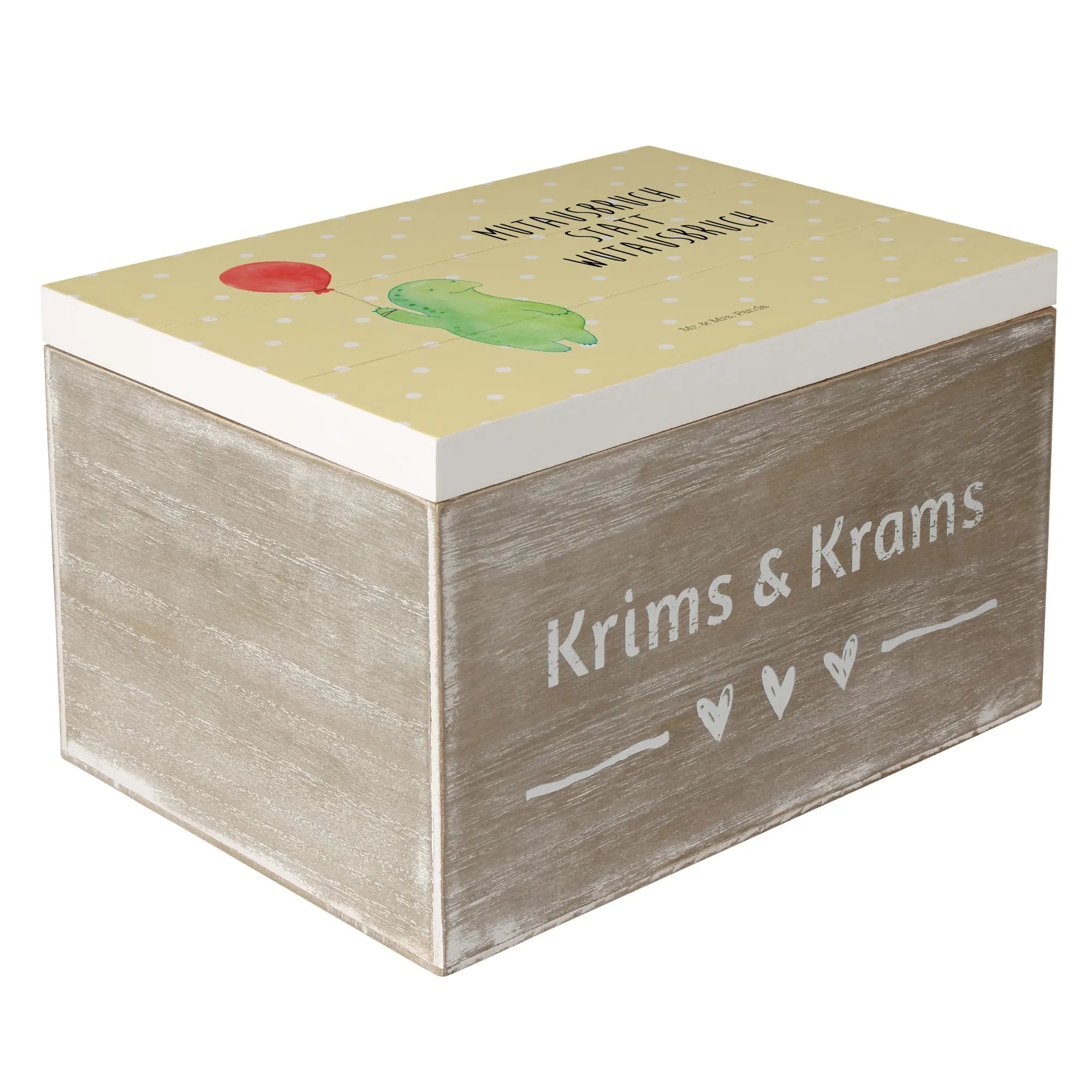 Skrzynia drewniana żółw balon - 22 x 15 cm - z napisem - biały