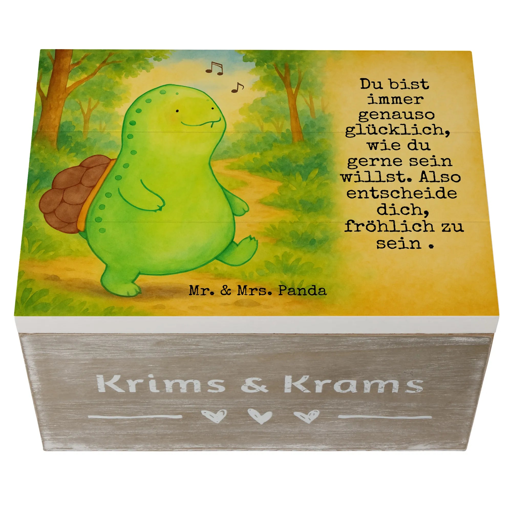 Diese bezaubernde Holzkiste ist mehr als nur eine Aufbewahrungsbox – sie ist ein kleiner Glücksbringer. Bedruckt mit der fröhlichen Schildkröte aus unserer Schildkröten Kollektion und dem liebevollen Spruch „Du bist immer genauso glücklich, wie du gerne sein willst. Also entscheide dich, fröhlich zu sein .“ zaubert sie ein Lächeln auf jedes Gesicht.