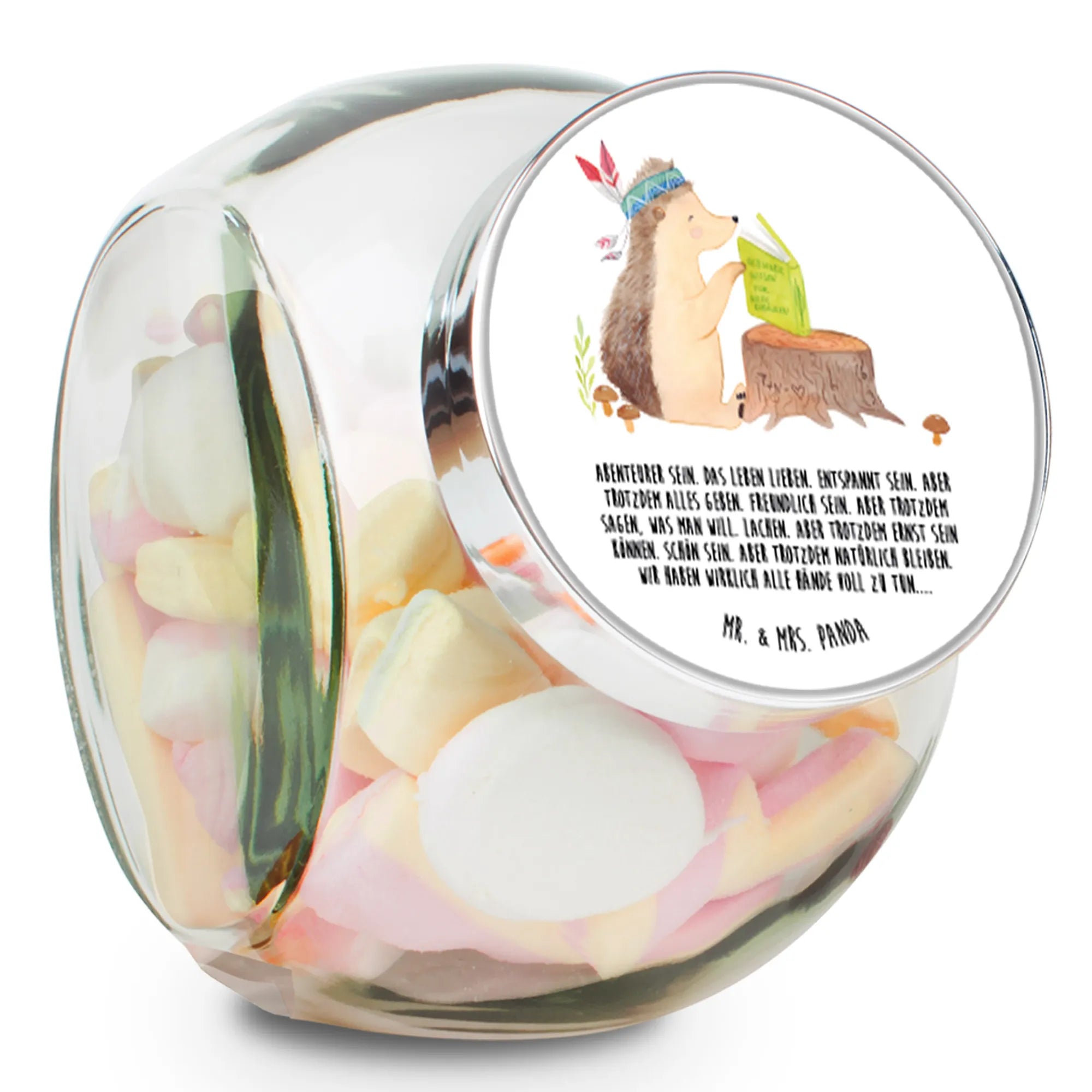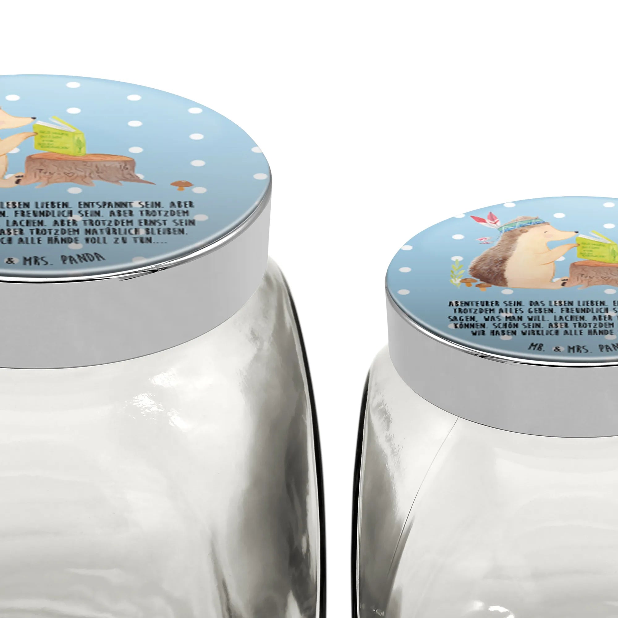 Słoik na cukierki jeż Ozdoba z piór - L 870ml - z napisem - Pastelowy niebieski
