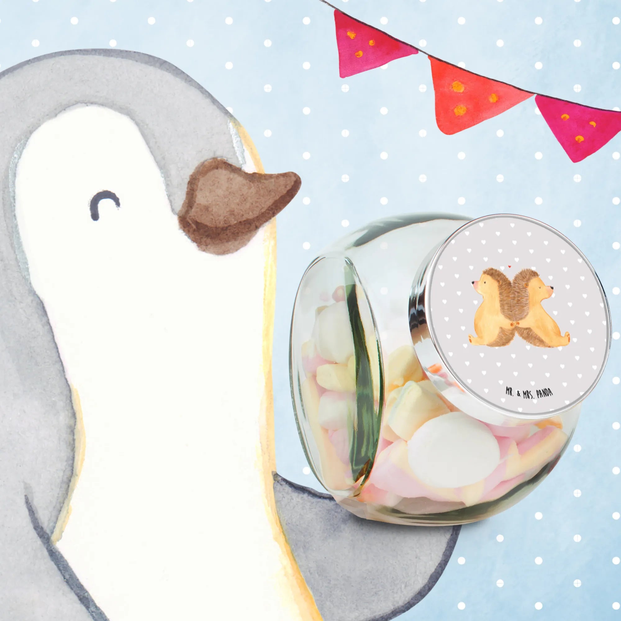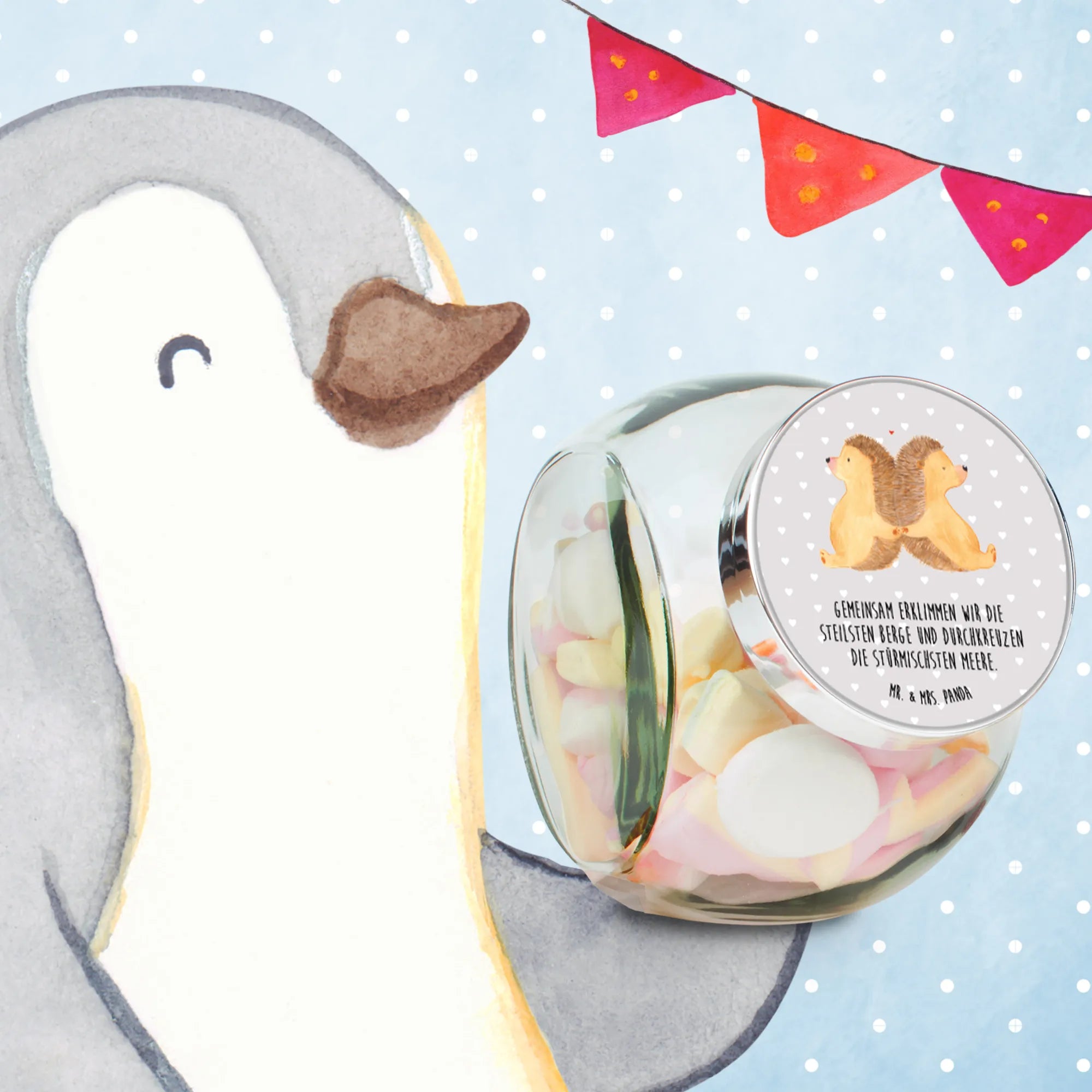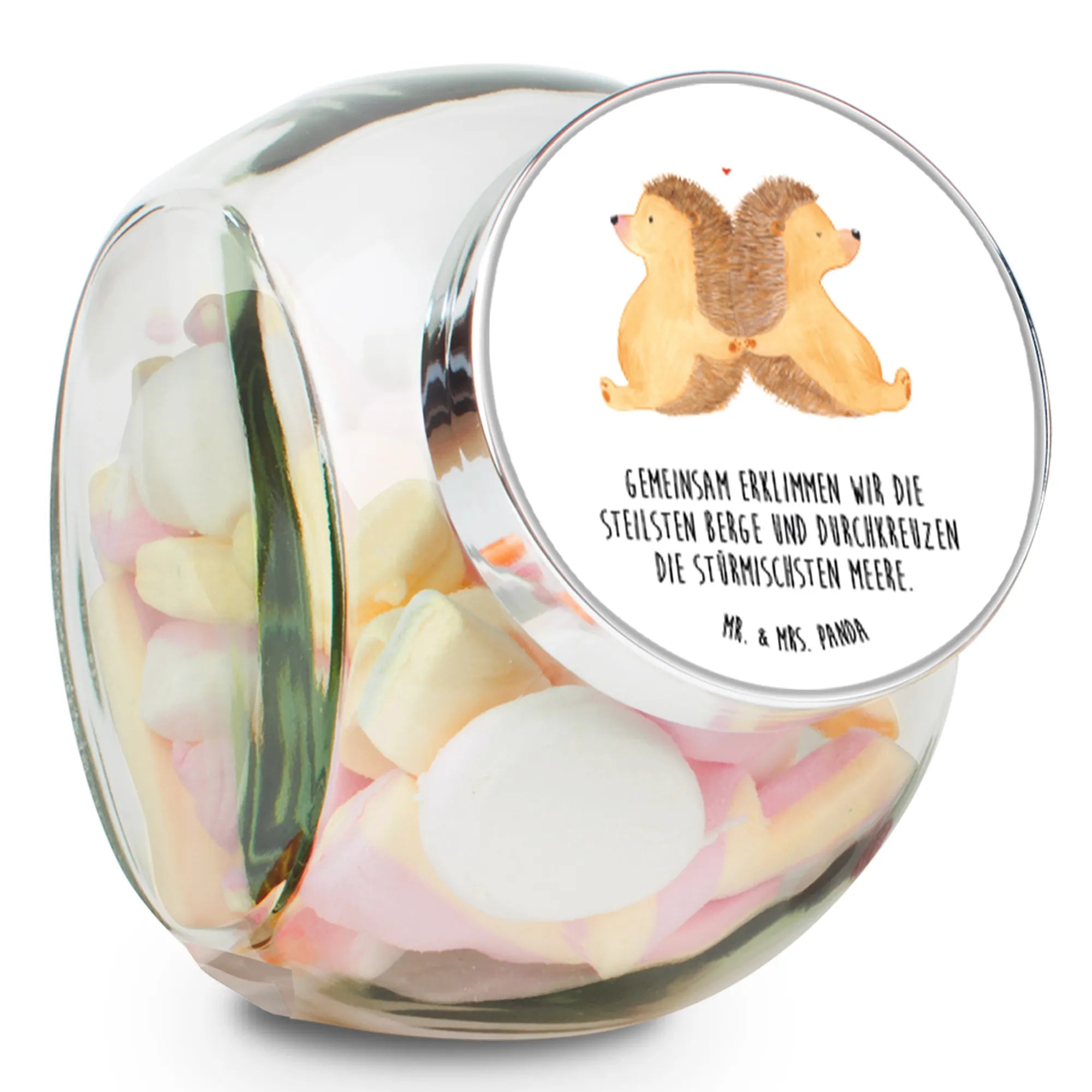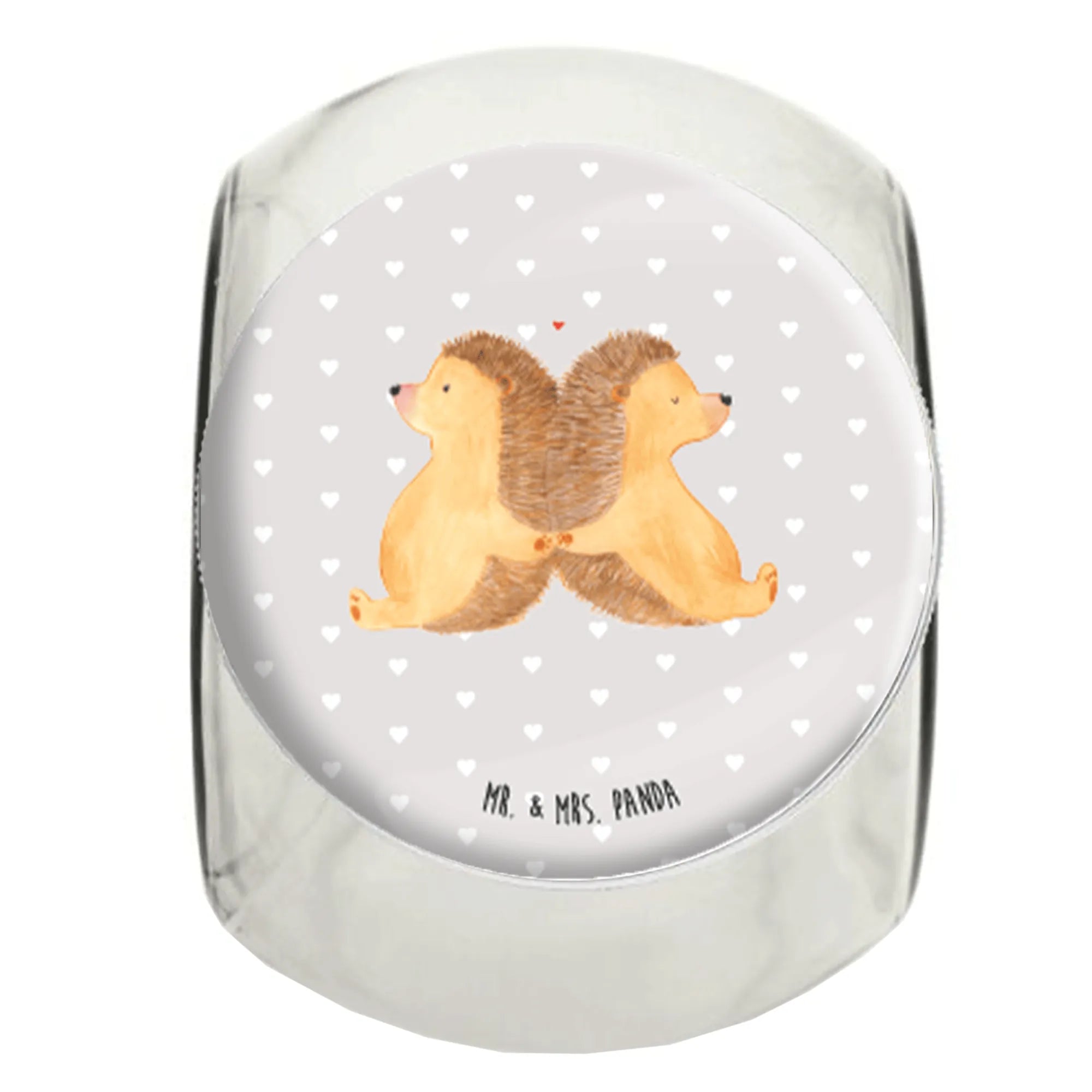Słoik na cukierki Jeże trzymające się za łapki - L 870ml - z napisem - Pastelowy szary