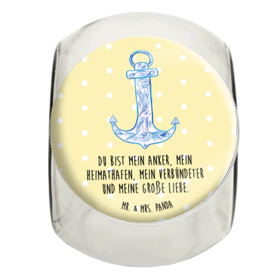Das wunderschöne Bonbonglas mit dem einzigartigen Anker-Motiv in Blau aus der Small World Kollektion von Mr. & Mrs. Panda ist der perfekte Küchenorganizer für jeden, der guten Geschmack hat! Es vereint Funktionalität und Stil und ist ideal für die Aufbewahrung von Süßigkeiten, Keksen, Kaffee, Tee oder Müsli. Mit einem großzügigen Füllvolumen von 870 ml bietet es ausreichend Platz, um Deine Lieblingssnacks frisch zu halten. Der hochwertige Premium-Glasbehälter sorgt nicht nur für hohe Farbbrillanz, sondern schützt auch die Motive durch seine glasklare, gewölbte Doming-Beschichtung. Diese garantieren, dass die Farben strahlen und das Anker-Motiv Dich jeden Tag mit guter Laune erfüllt.