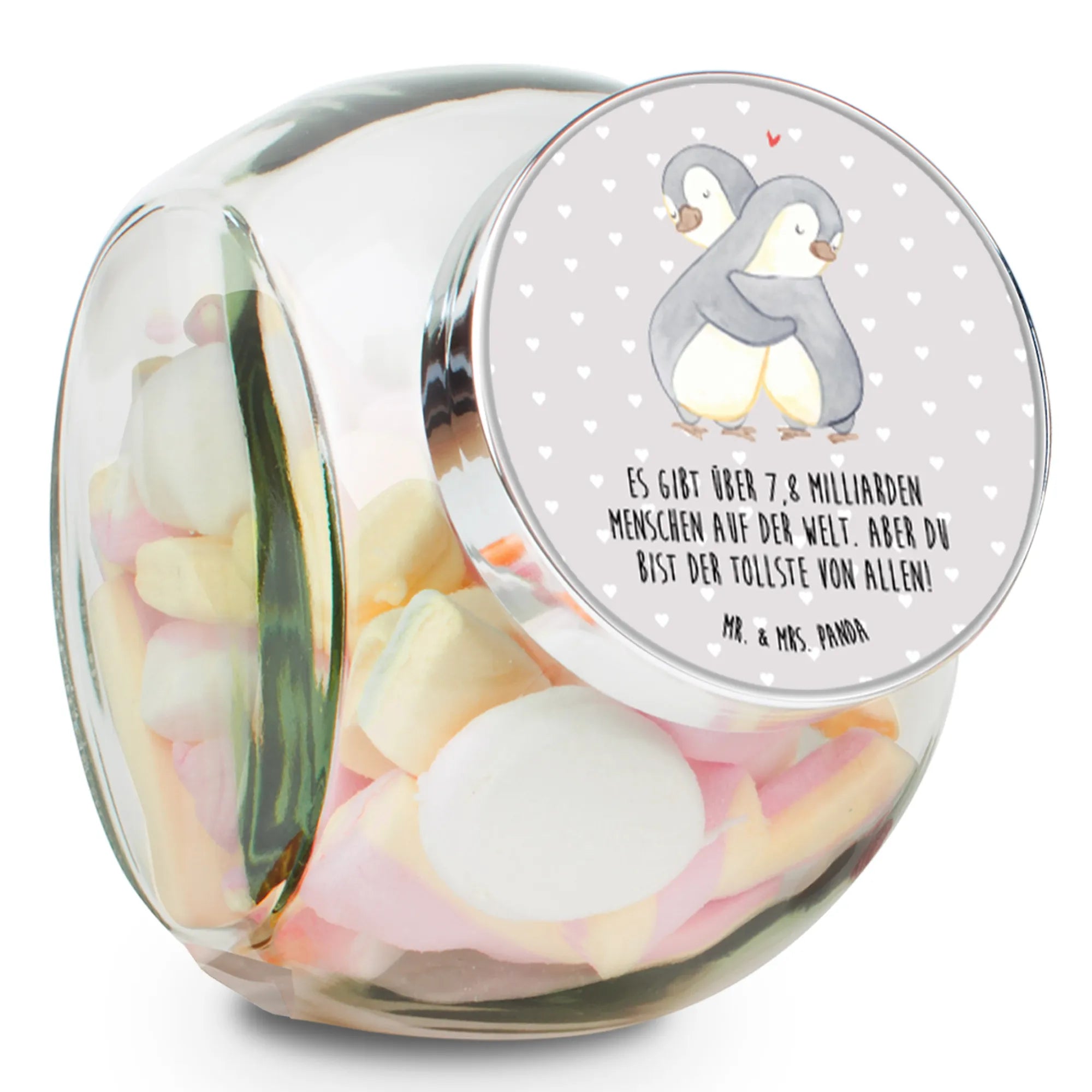 Słoik na cukierki pingwiny Przytulanie - L 870ml - z napisem - Pastelowy szary