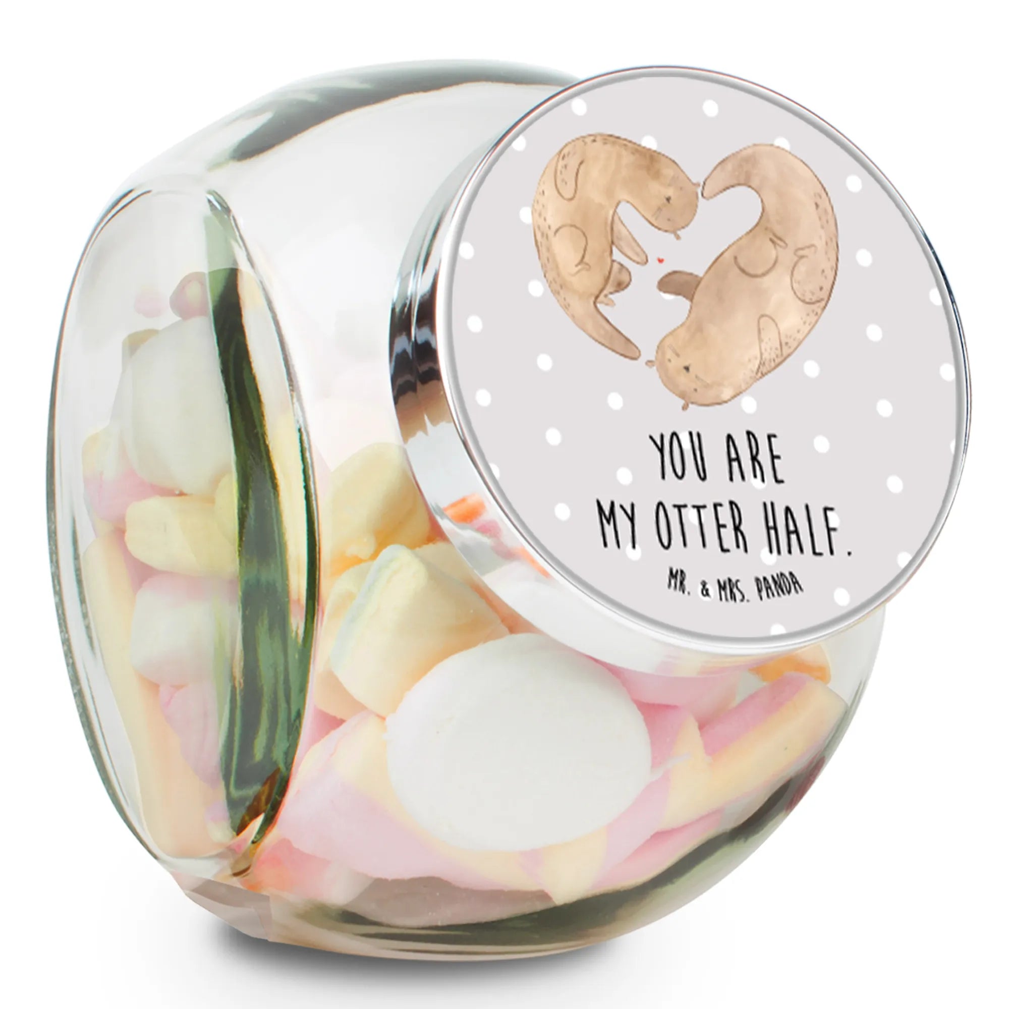Ob du es für deine Küche benutzt, deinen Arbeitsplatz verschönern möchtest oder es einfach als tolles Liebesgeschenk verwenden willst - dieses Glas erfüllt all deine Wünsche. Stimmungsvolles Design, funktionale Verwendung und die Message "You are my otter half" machen dieses Bonbonglas zu einem ganz besonderen Geschenk. Es passt perfekt zu anderen Produkten der Otter-Kollektion von Mr. & Mrs. Panda, die eine große Auswahl an süßen Motiven und Sprüchen bietet.