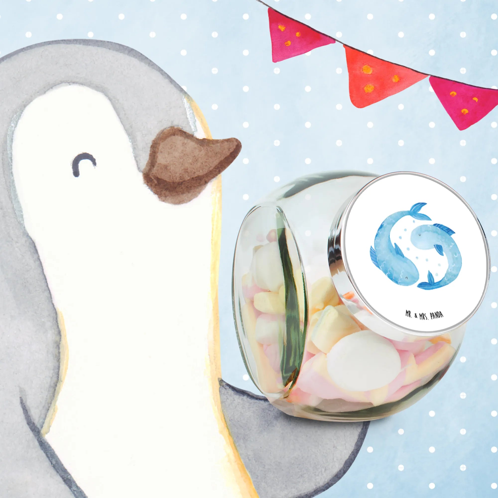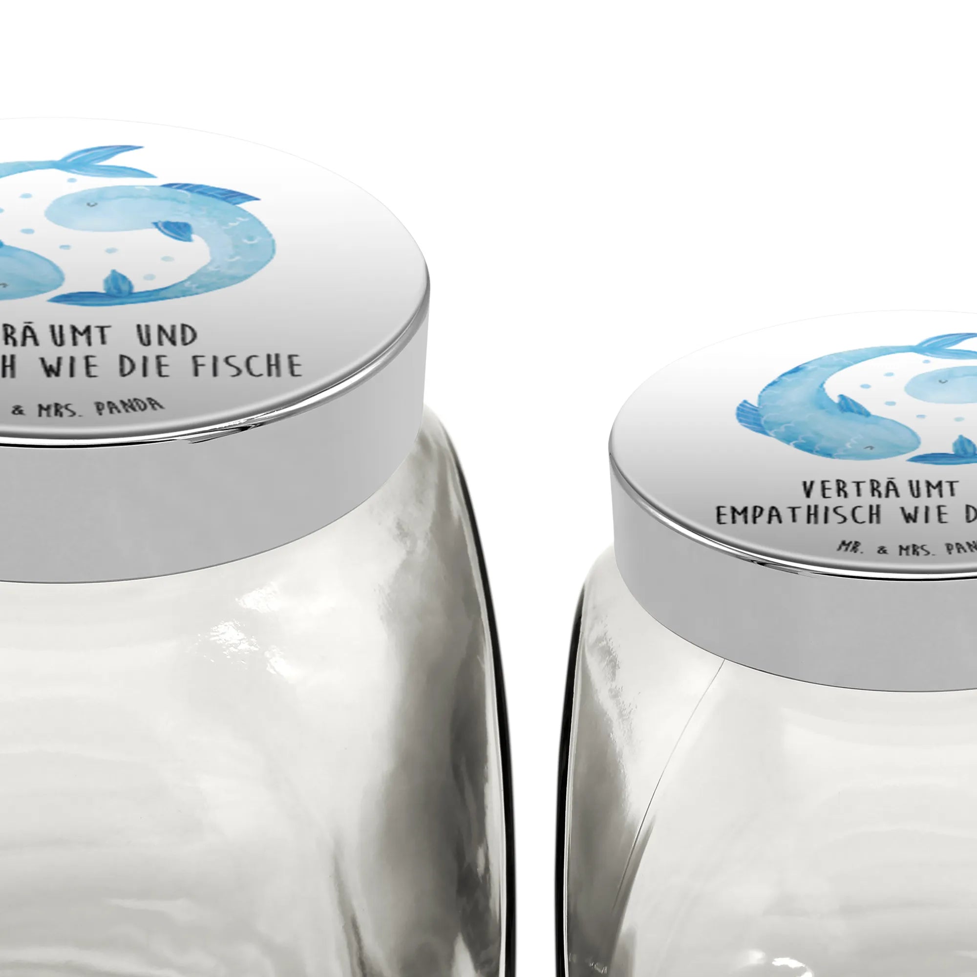 Das wunderschöne Bonbonglas mit dem Motiv "Sternzeichen Fische" von Mr. & Mrs. Panda ist das ideale Geschenk für alle, die in den Monaten Februar und März geboren wurden. Mit einem Füllvolumen von 870 ml ist es perfekt geeignet, um deine Süßigkeiten, Kekse oder Gewürze stilvoll zu präsentieren.