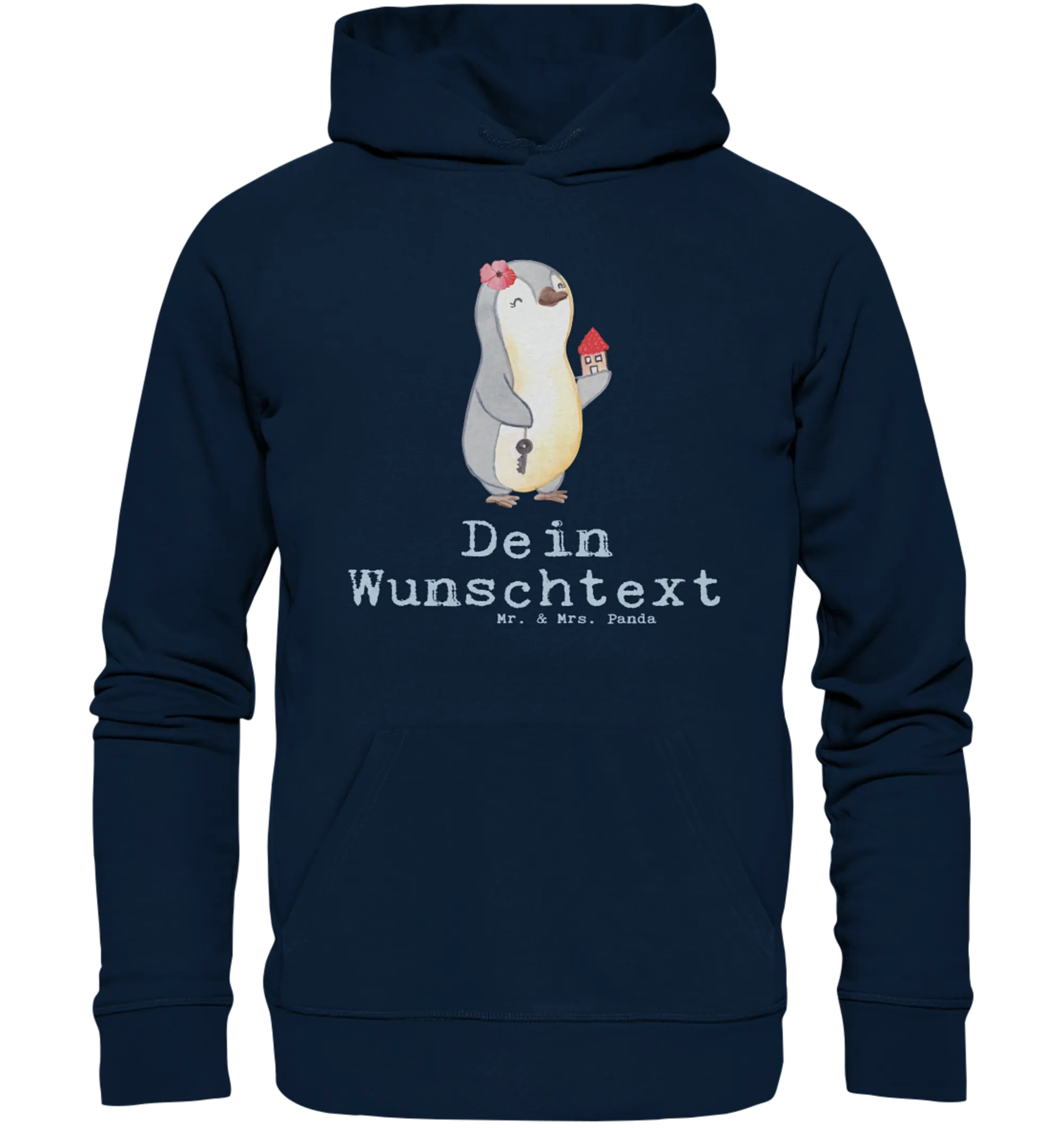 Der personalisierte Hoodie "Immobilienmaklerin mit Herz" von Mr. & Mrs. Panda bringt nicht nur Gemütlichkeit, sondern auch eine ganz besondere Botschaft mit sich. Dieser wunderschöne Kapuzenpullover ist perfekt für alle, die im Immobilienbereich tätig sind oder eine Immobilienmaklerin kennen, die sie schätzen. Mit seinem liebevoll gestalteten Design, das einen niedlichen Pinguin mit einem Haus und einem Schlüssel zeigt, wird er zu einem echten Hingucker.