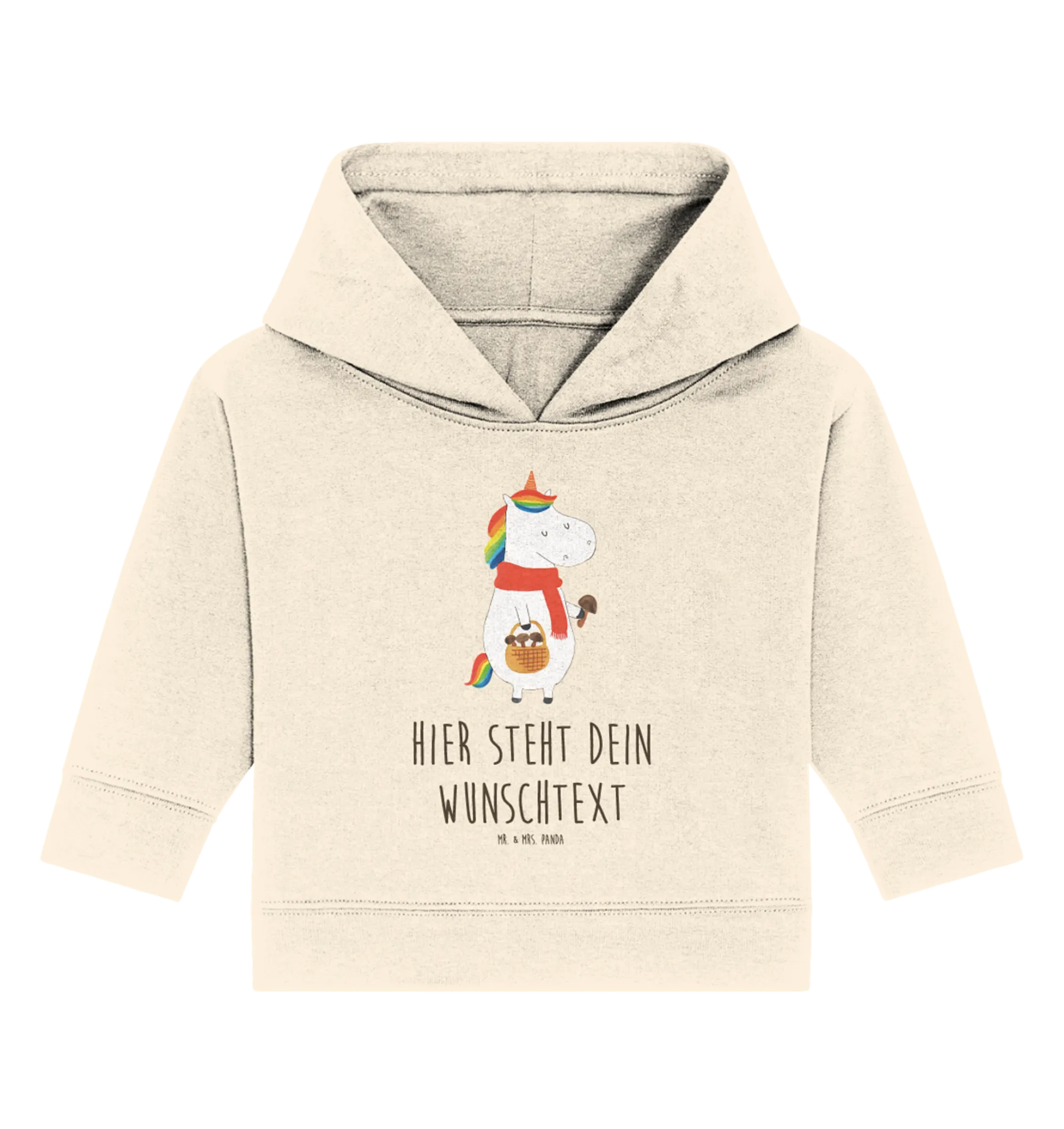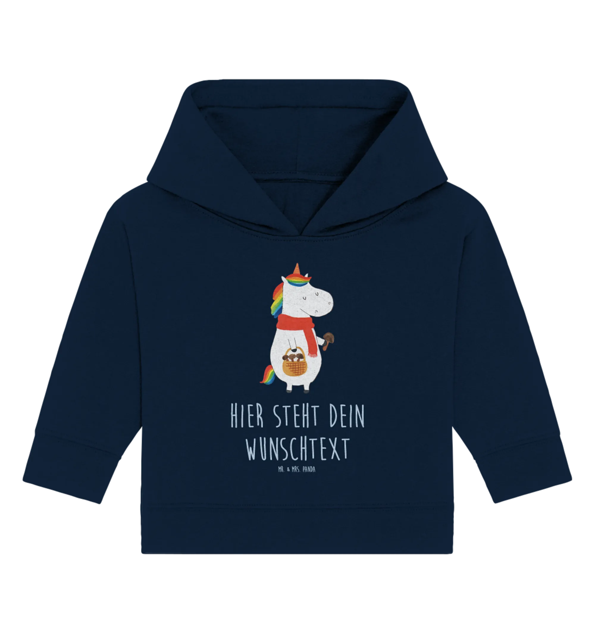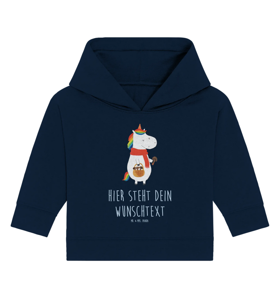 Der personalisierte Baby Hoodie Einhorn Pilz aus der zauberhaften Einhorn - Kollektion von Mr. & Mrs. Panda ist das perfekte Geschenk für jede kleine Prinzessin oder jeden kleinen Prinzen! Er wurde mit viel Liebe und Sorgfalt handgezeichnet und kombiniert das süße Motiv eines Einhorns auf Pilzsuche mit einem herzlichen Spruch: "Wenn das Leben dir einen Korb gibt, geh Pilze sammeln."
