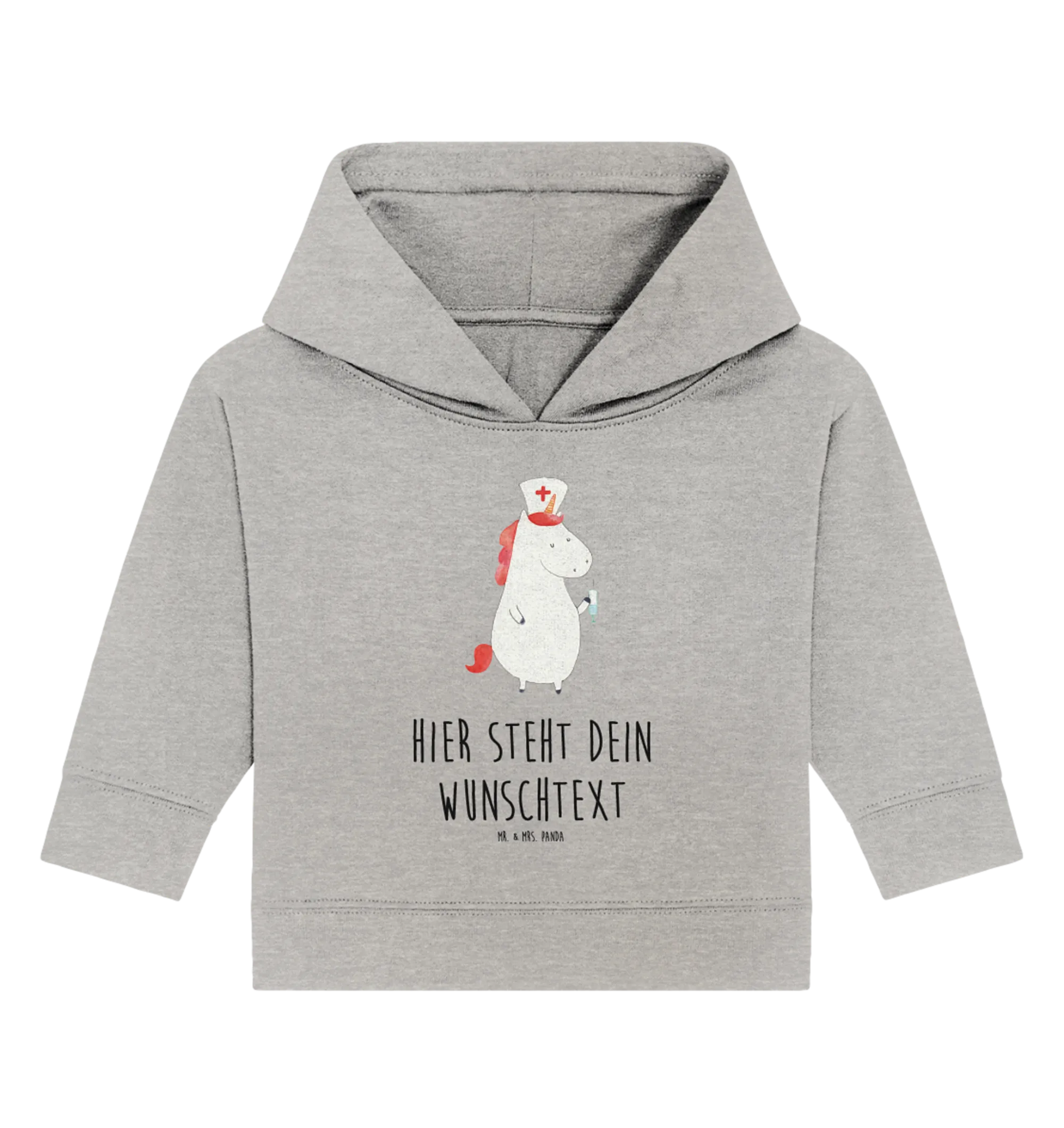 Verschenke Freude und Wärme mit diesem ganz besonderen Stück! Du suchst ein einzigartiges Geschenk für eine liebe Freundin, die frischgebackene Mama geworden ist? Oder möchtest du deinem kleinen Liebling einfach mal eine Freude machen? Dann ist der personalisierte Baby Hoodie "Einhorn Krankenschwester" genau das richtige!