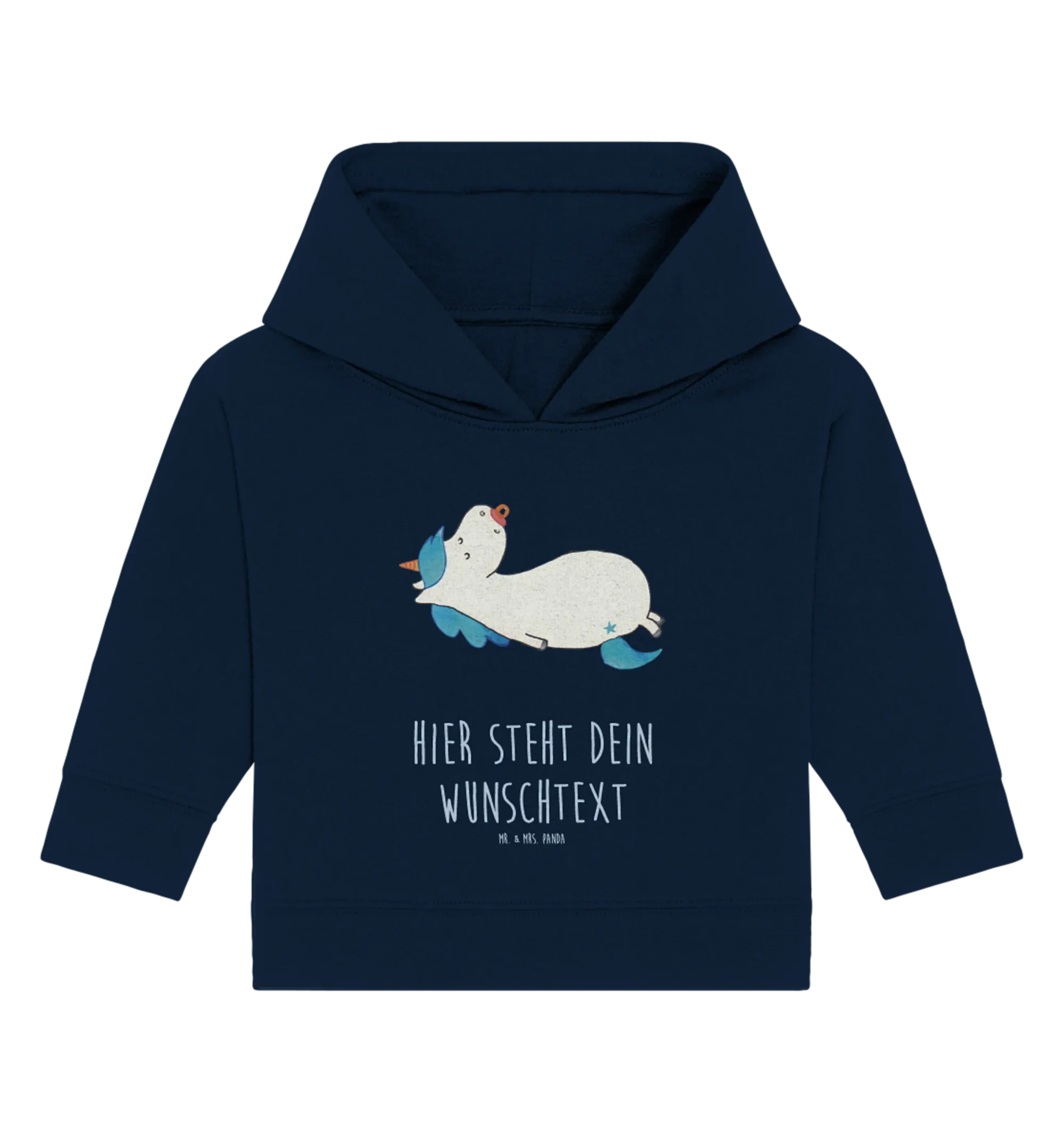 Mit unserem süßen Einhorn-Motiv, das ein zufriedenes Baby mit Schnuller zeigt, bringst du nicht nur ein Lächeln auf die Gesichter der Eltern, sondern sorgst auch dafür, dass das Baby in einem bequemen und stylischen Hoodie gekleidet ist. Hergestellt aus 100% Öko-Baumwolle, ist der Hoodie nicht nur kuschelig weich, sondern auch besonders hautfreundlich und somit ideal für empfindliche Babyhaut. Der Hoodie in der wunderschönen Farbe "French Navy" macht jedes Outfit zu einem echten Hingucker.