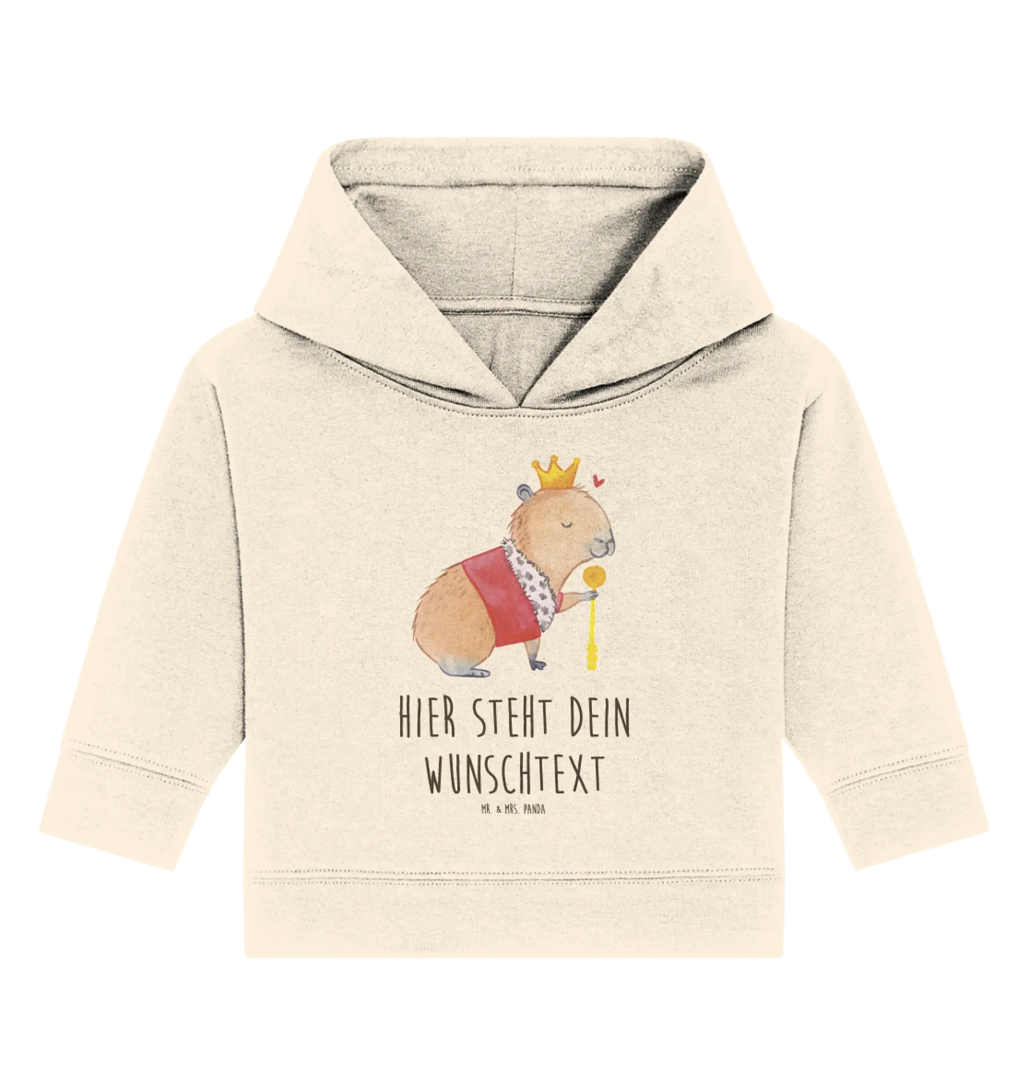 Entdecke den liebevollen, personalisierten Baby Hoodie mit dem zauberhaften Capybara König-Motiv aus der besonderen Small World Kollektion von Mr. & Mrs. Panda. Dieser Hoodie ist nicht nur ein Mode-Statement, sondern auch eine liebevolle Umarmung für dein kleines Wunder.