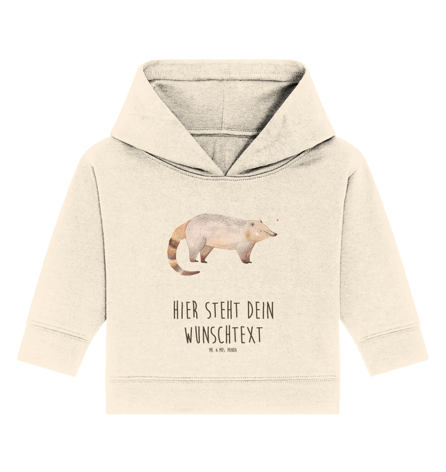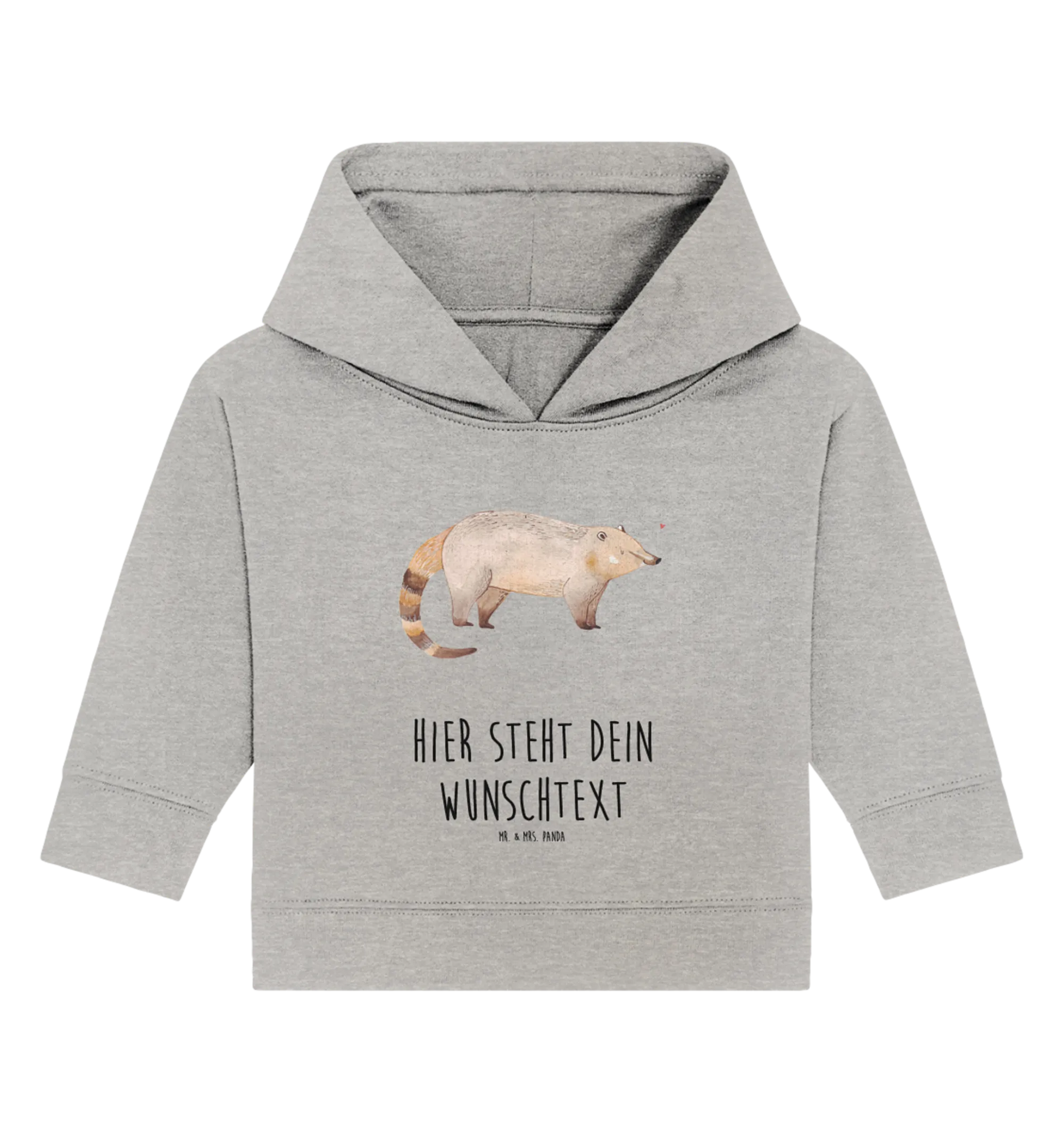 Der personalisierte Baby Hoodie mit dem niedlichen Nasenbär-Motiv aus der Small World Kollektion von Mr. & Mrs. Panda ist das perfekte Geschenk für alle frischgebackenen Eltern und ihre kleinen Lieblinge. Mit seinem liebevoll designten Nasenbär bringt dieser Hoodie nicht nur ein Lächeln, sondern auch jede Menge gute Laune in den Alltag. Dieses kleine putzige Wesen schaut mit seinen großen Augen direkt in dein Herz und macht jede Gelegenheit zu etwas Besonderem.