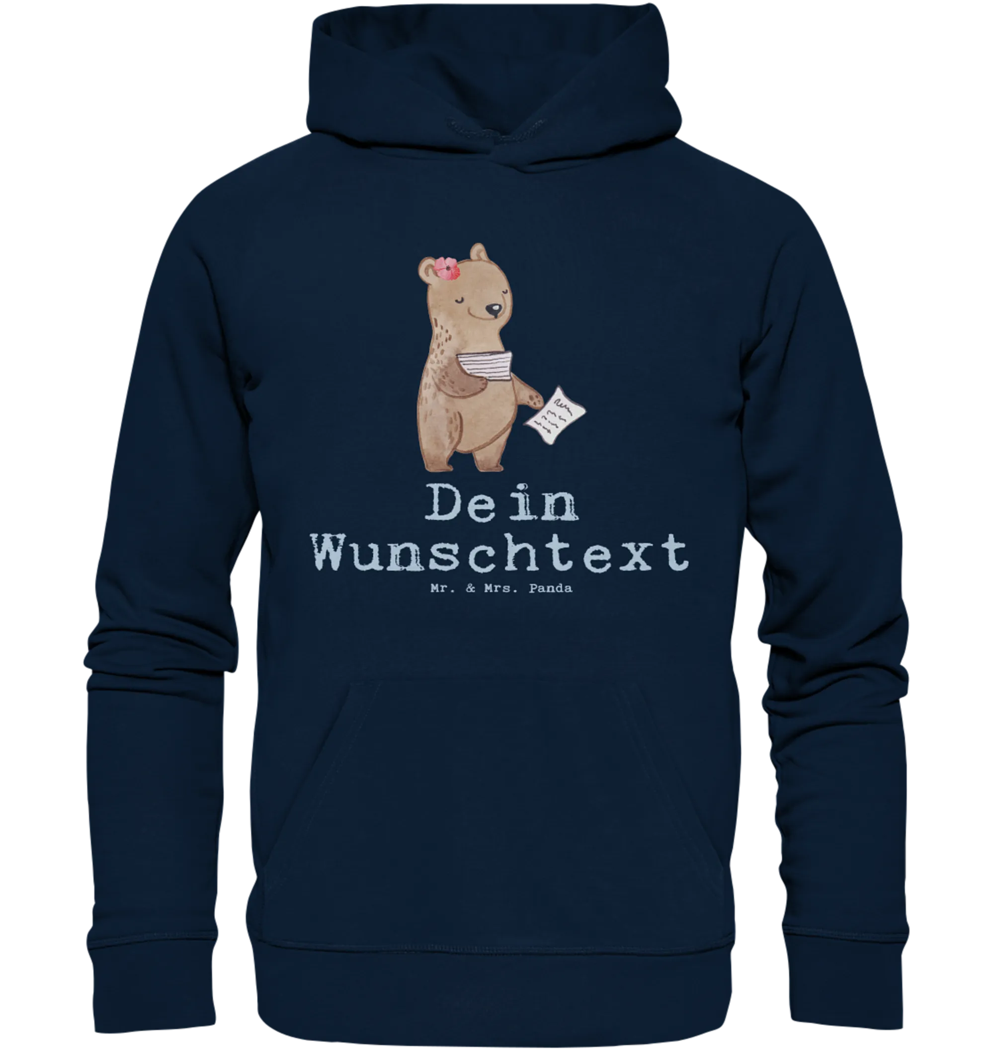 Der personalisierte Hoodie "Steuerberaterin mit Herz" aus der kreativen Berufe Kollektion von Mr. & Mrs. Panda ist das perfekte Geschenk für jede Steuerberaterin, die ihren Job mit Leidenschaft ausübt. Dieser Hoodie ist nicht nur praktisch, sondern auch richtig stylish! Mit seinem süßen Design, das eine fröhliche Bärin mit einem Stapel Unterlagen zeigt und dem Slogan "Du bist nur ein halber Mensch, wenn du keine Steuerberaterin bist", bringt er sicher ein Lächeln ins Gesicht der beschenkten Person.