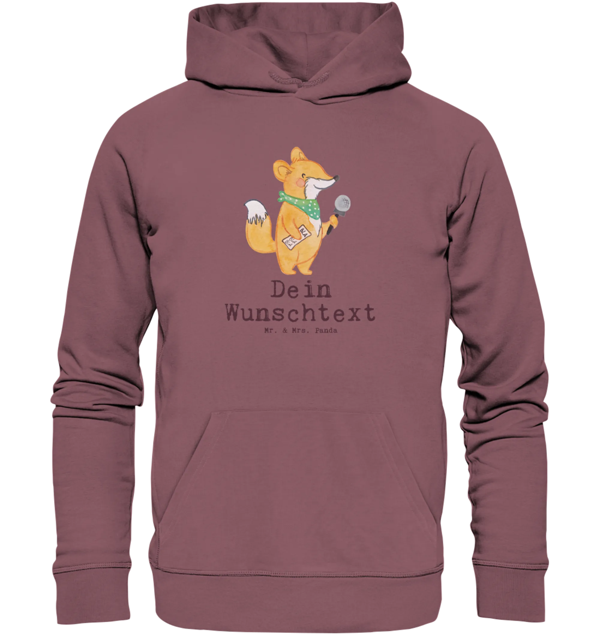 Mit dem süßen Fuchs, der ein Mikrofon in der Hand hält, bringt dieser Hoodie nicht nur ein Lächeln auf dein Gesicht, sondern ist auch ein tolles Geschenk für Kollegen, Freunde oder sich selbst. Der Hoodie besteht aus hochwertiger Bio-Baumwolle, umweltfreundlichem recyceltem Polyester und hat eine besonders weiche Fleece-Innenseite, die ihn zum idealen Begleiter in der kalten Jahreszeit macht.
