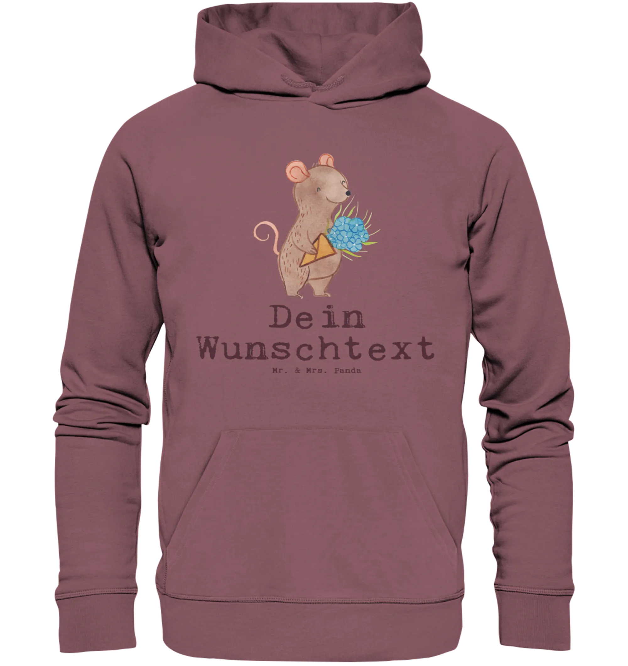 Dieser Hoodie, hergestellt aus 85% Bio-Baumwolle und 15% recyceltem Polyester, bietet nicht nur eine besonders flauschige Innenseite, sondern ist auch ein echter Hingucker. Mit dem liebevoll designten Motiv 'Florist mit Herz', das eine süße Maus zeigt, die stolz einen großen Strauß Blumen hält, zaubert er garantiert ein Lächeln auf jedes Gesicht.