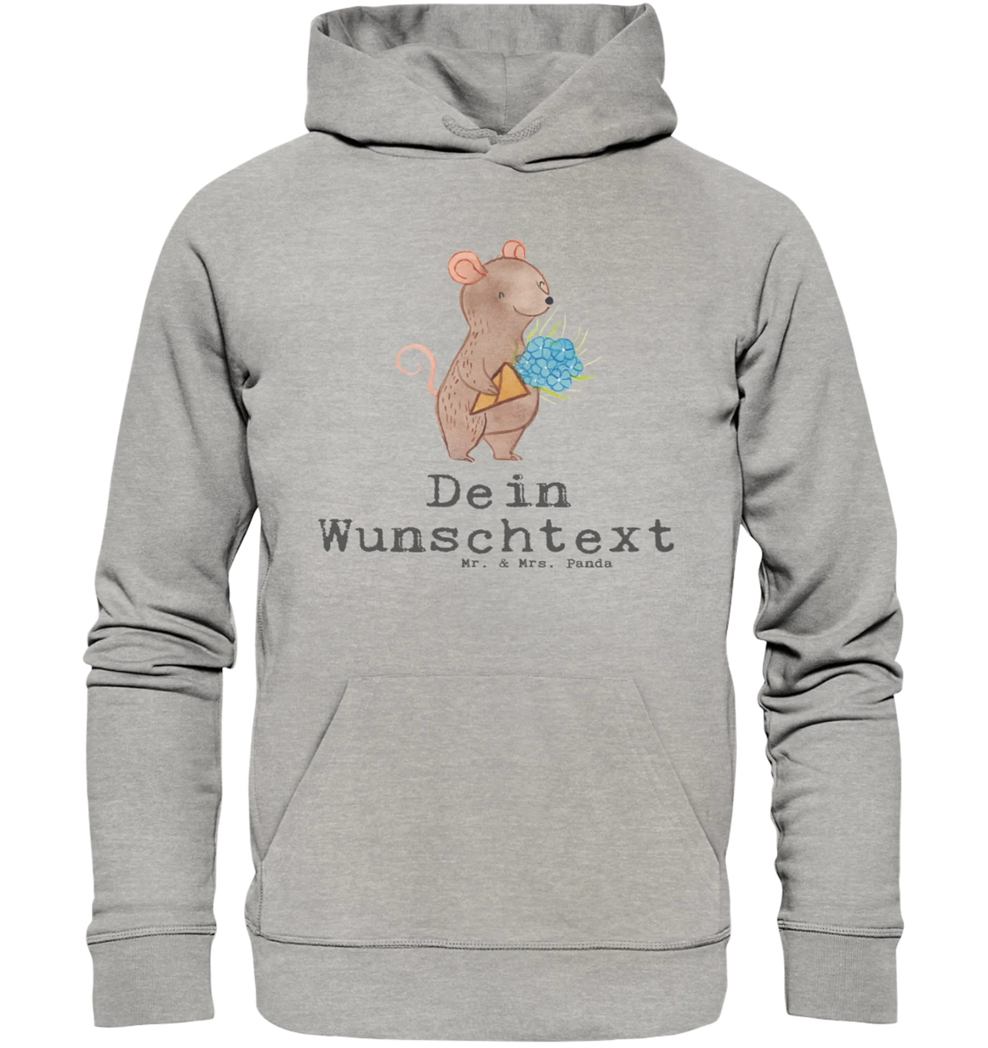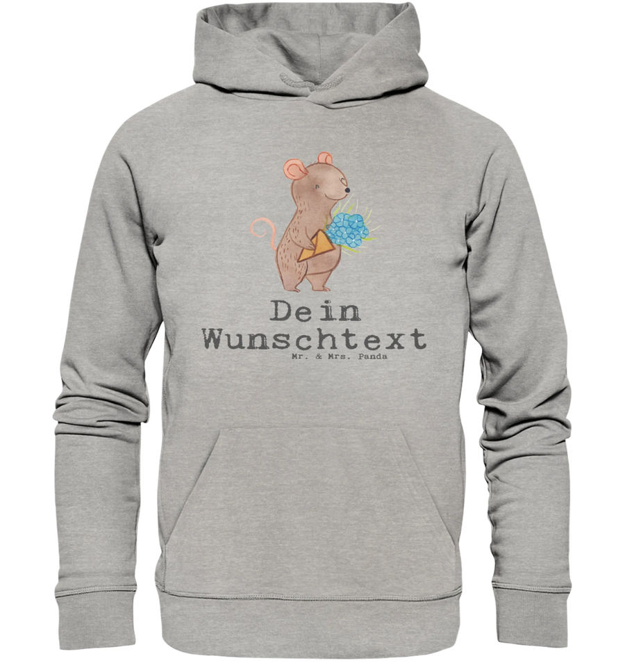 Der Hoodie ist zudem mit dem zauberhaften Motiv "Florist mit Herz" bedruckt, das unsere kleine Maus zeigt, die stolz mit einem großen Strauß Blumen posiert.