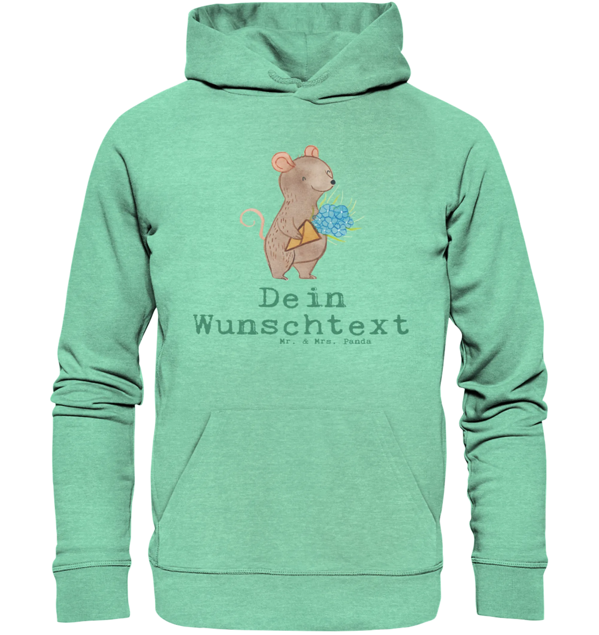 Mit einem tollen Motiv, das eine niedliche Maus mit ihrem großen Strauß Blumen zeigt, sowie dem Spruch "Du bist nur ein halber Mensch, wenn du kein Florist bist!" wird dieser Hoodie zum absoluten Hingucker. Er verbindet Stil mit persönlicher Note, da du ihn ganz nach deinen Wünschen personalisieren kannst.