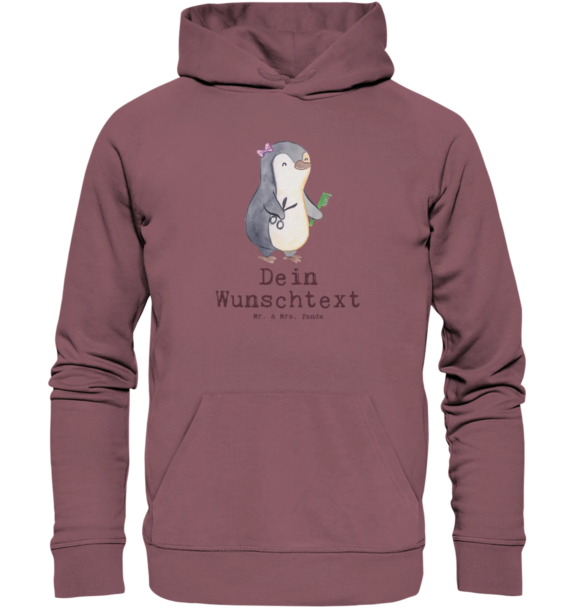 Suchst du das perfekte Geschenk für eine leidenschaftliche Hairstylistin? Unser personalisierten Hoodie "Hairstylistin mit Herz" ist genau das richtige für dich! Aus super weicher Bio-Baumwolle gefertigt, sorgt dieser Kapuzenpullover nicht nur für einen hohen Tragekomfort, sondern überzeugt auch mit einem liebevollen Design. Mit dem süßen Pinguin-Motiv, das die Botschaft "Du bist nur ein halber Mensch, wenn du keine Hairstylistin bist" trägt, wird jede Hairstylistin zum Strahlen.