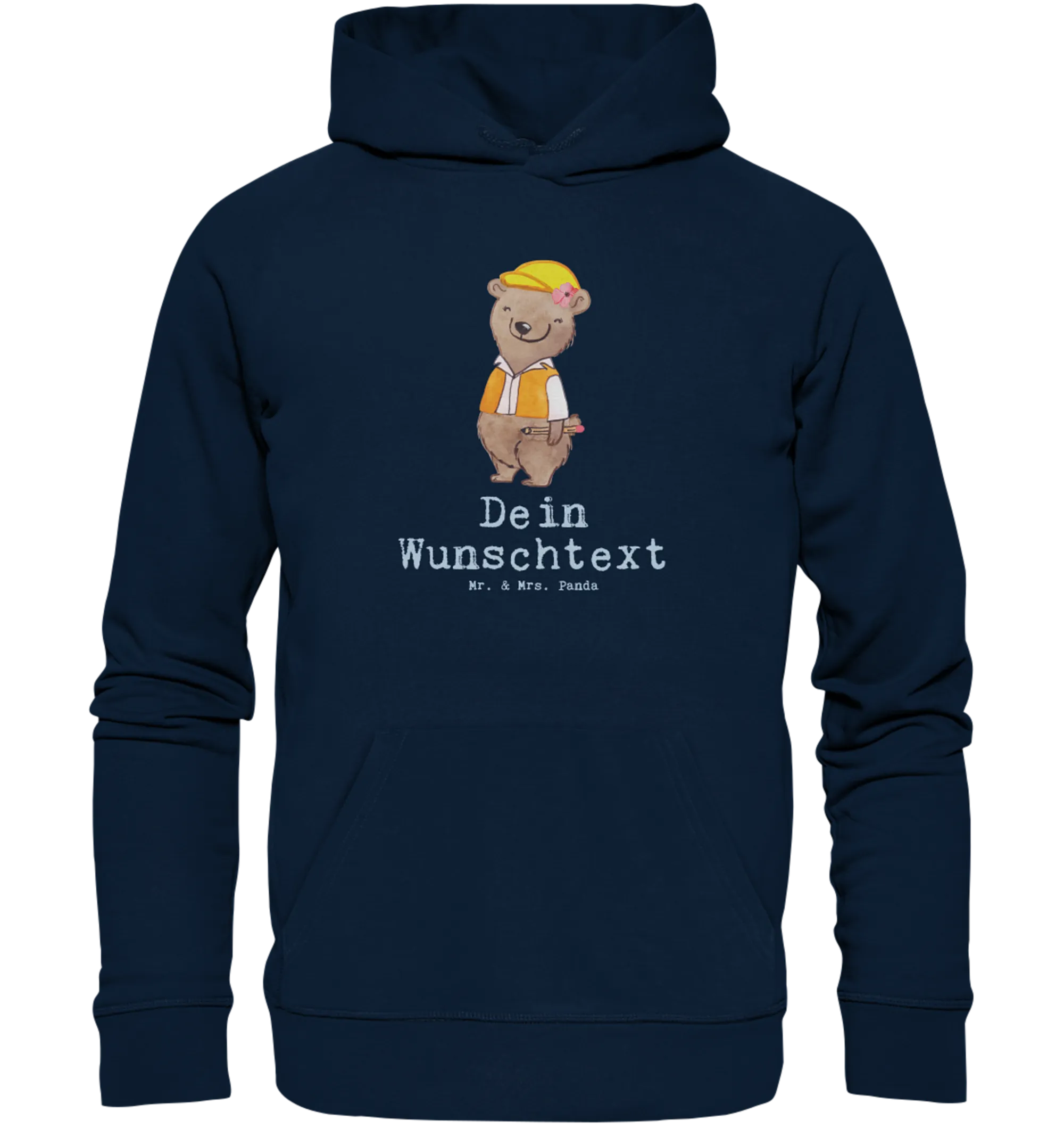 Mit dem wunderbaren Motiv einer Bauingenieurin, die einen Helm trägt und stolz ihre Arbeit repräsentiert, wird jeder Moment in diesem Hoodie besonders. Der Hoodie ist aus biologischer Baumwolle gefertigt und sorgt für ein besonders angenehmes Tragegefühl. Durch die Möglichkeit der Personalisierung mit deinem Wunschtext oder Namen wird er zu einem ganz individuellen Erlebnis.
