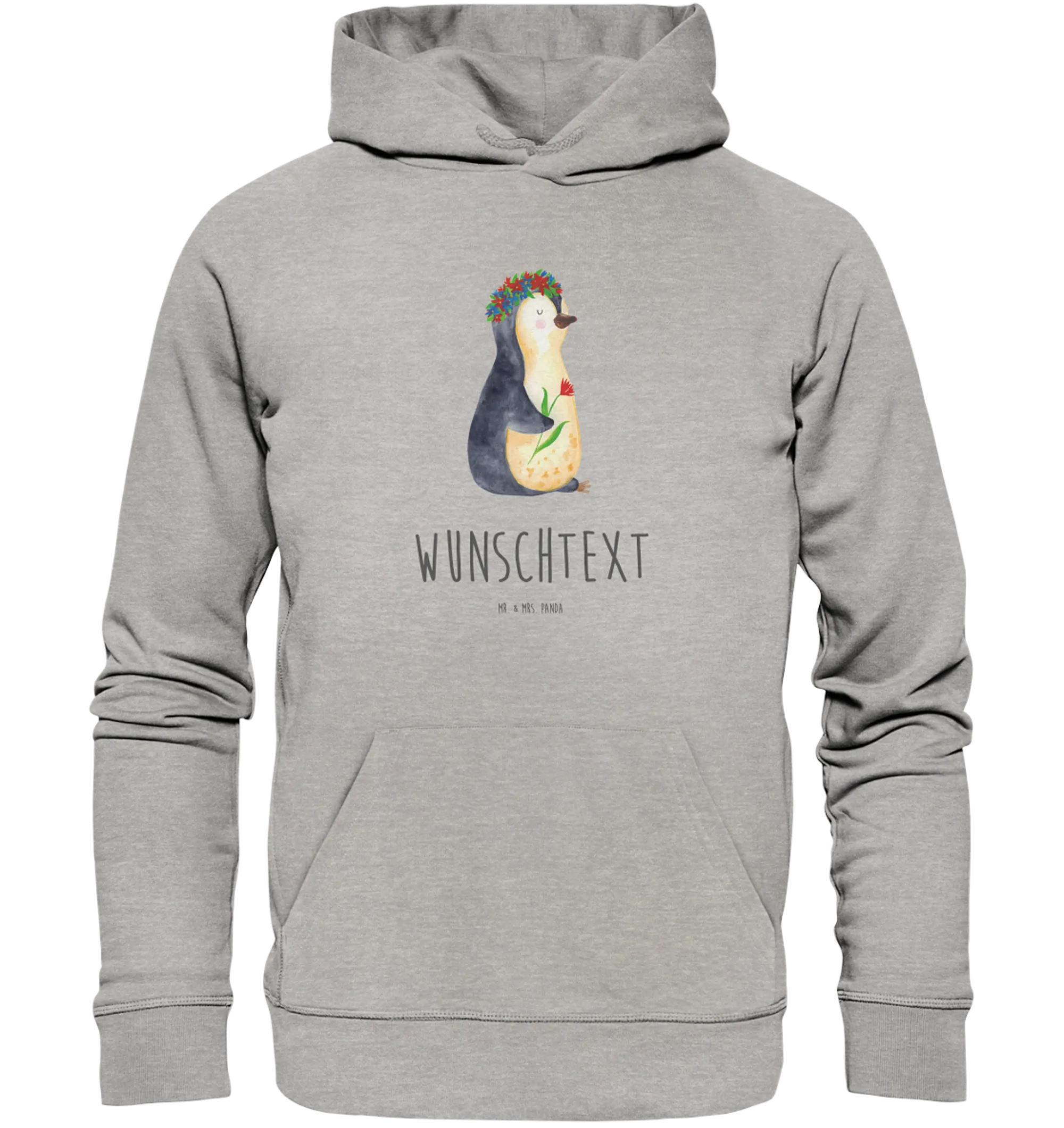 Entdecke den zauberhaften personalisierten Hoodie mit dem süßen Pinguin Blumenkranz aus der Pinguin-Kollektion von Mr. & Mrs. Panda! Dieser Hoodie ist nicht nur ein modisches Highlight, sondern auch ein ganz persönliches Geschenk, das die Herzen höher schlagen lässt.
