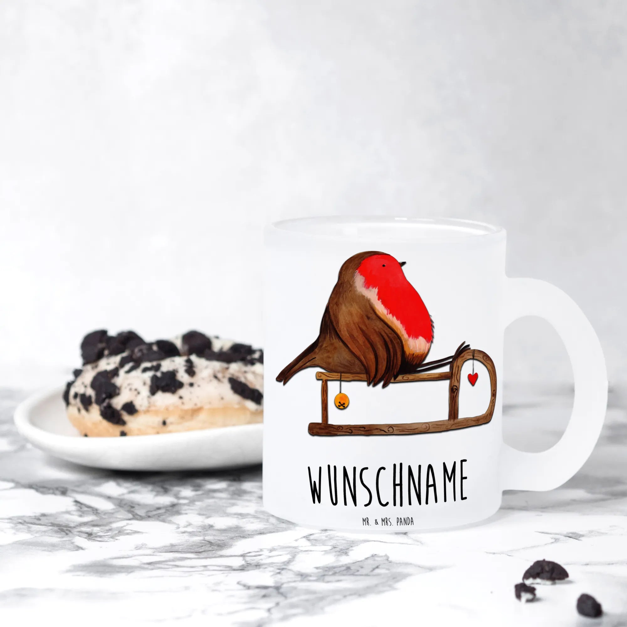 Spersonalizowana filiżanka do herbaty rudzik sanki