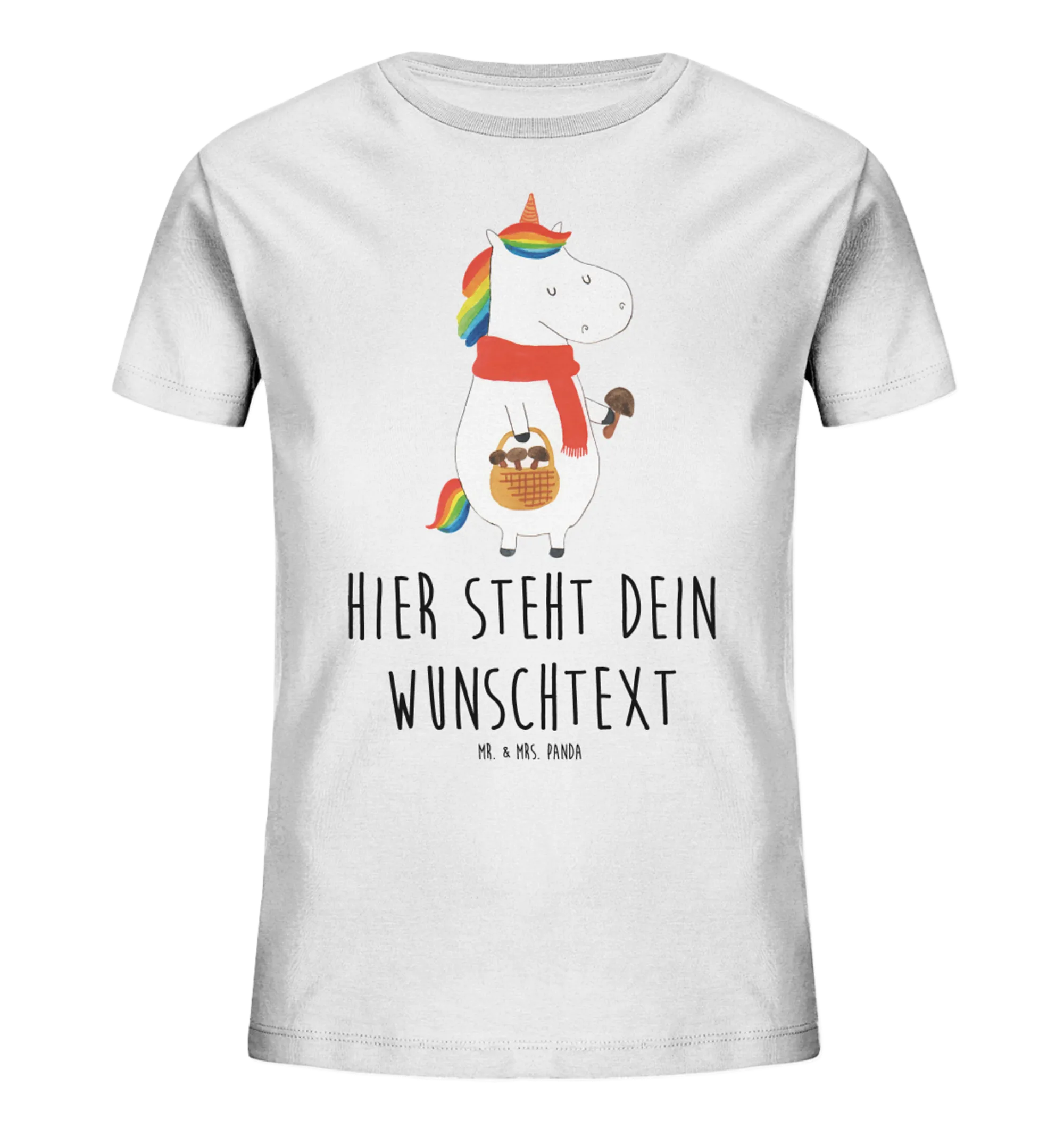 Das wunderschöne personalisierte Kinder T-Shirt mit dem süßen Einhorn Pilz Motiv aus der beliebten Einhorn Kollektion von Mr. & Mrs. Panda ist das perfekte Geschenk für kleine Abenteuerer! Mit einem schlichten, aber dennoch charmanten Design begeistert es sowohl Kinder als auch Eltern. Das Einhorn, das voller Freude im Wald nach Pilzen sucht, bringt eine zauberhafte Atmosphäre in den Alltag. Eyecatcher ist der liebevolle Spruch: "Wenn das Leben dir einen Korb gibt, geh Pilze sammeln!" – ein motivierender Satz, der Kinder dazu anregt, im Leben optimistisch zu bleiben.