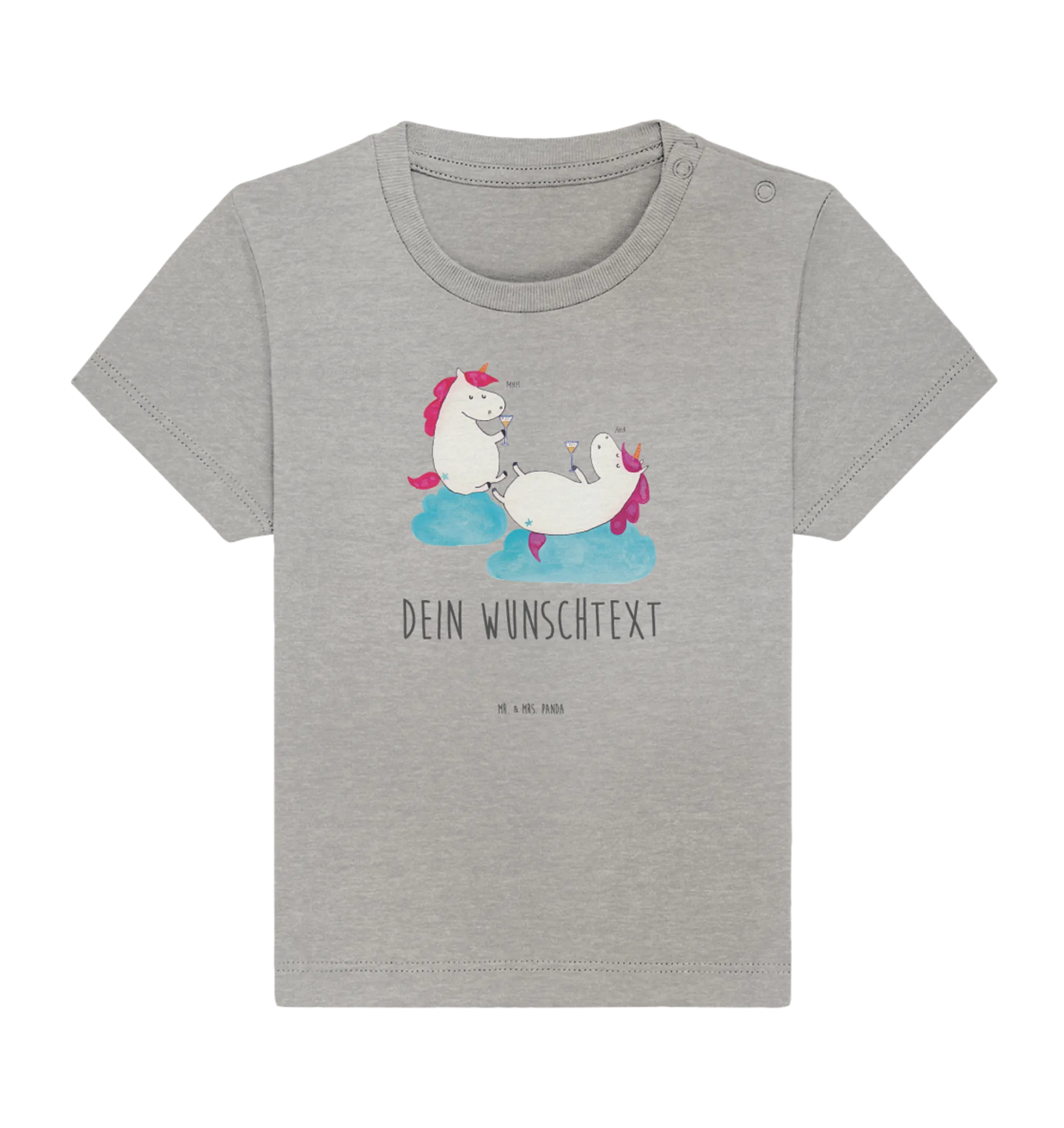 Es zeigt zwei bezaubernde Einhörner, die fröhlich ein Glas Sekt anstoßen – einfach zuckersüß und voller Lebensfreude! Das T-Shirt ist nicht nur niedlich, sondern auch aus hochwertiger, Öko Baumwolle gefertigt, die sanft zur zarten Babyhaut ist. Mit seinem bequemen Schnitt und dem modernen Heather Grey sieht es einfach super aus und lässt sich vielseitig kombinieren.
