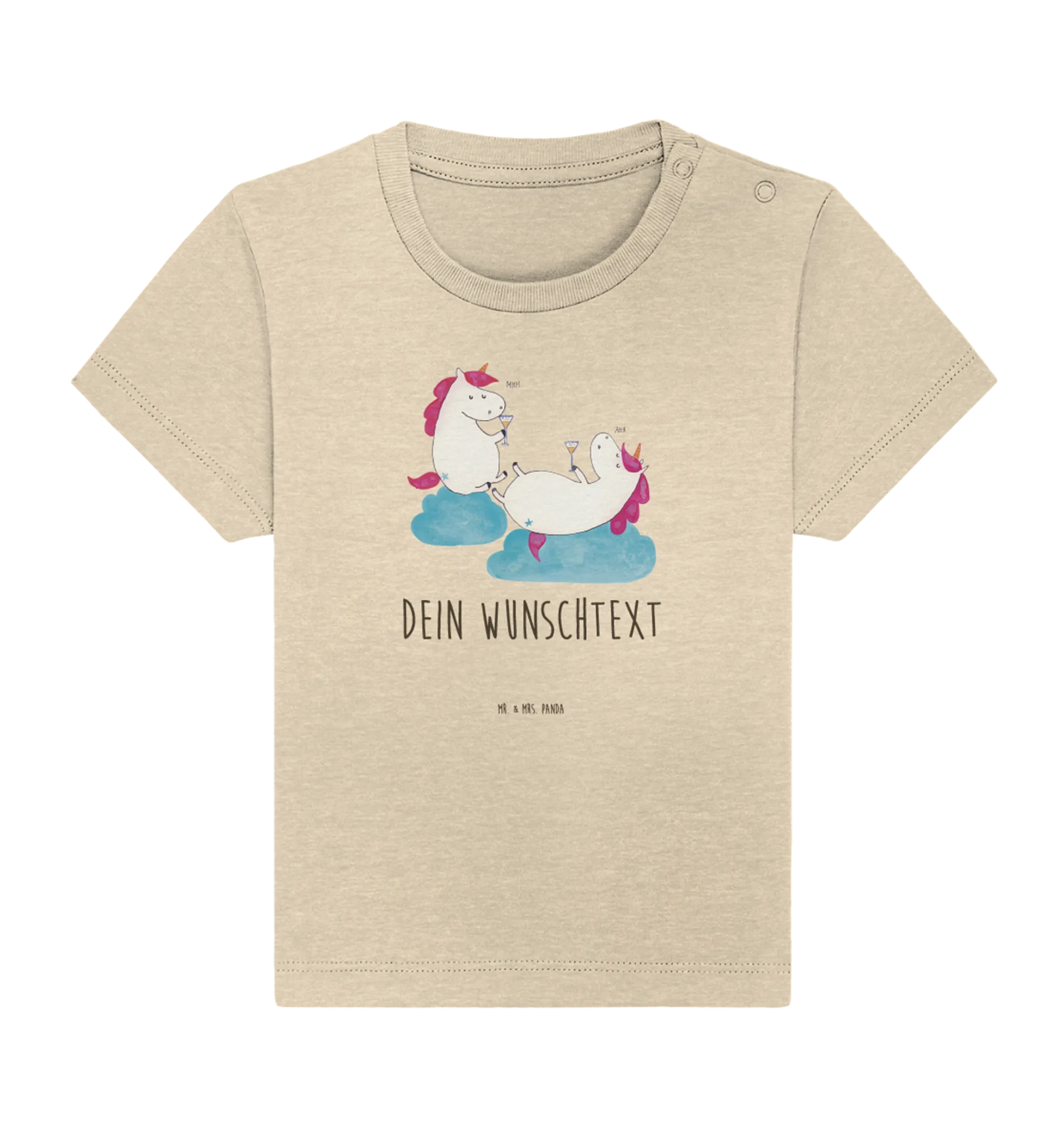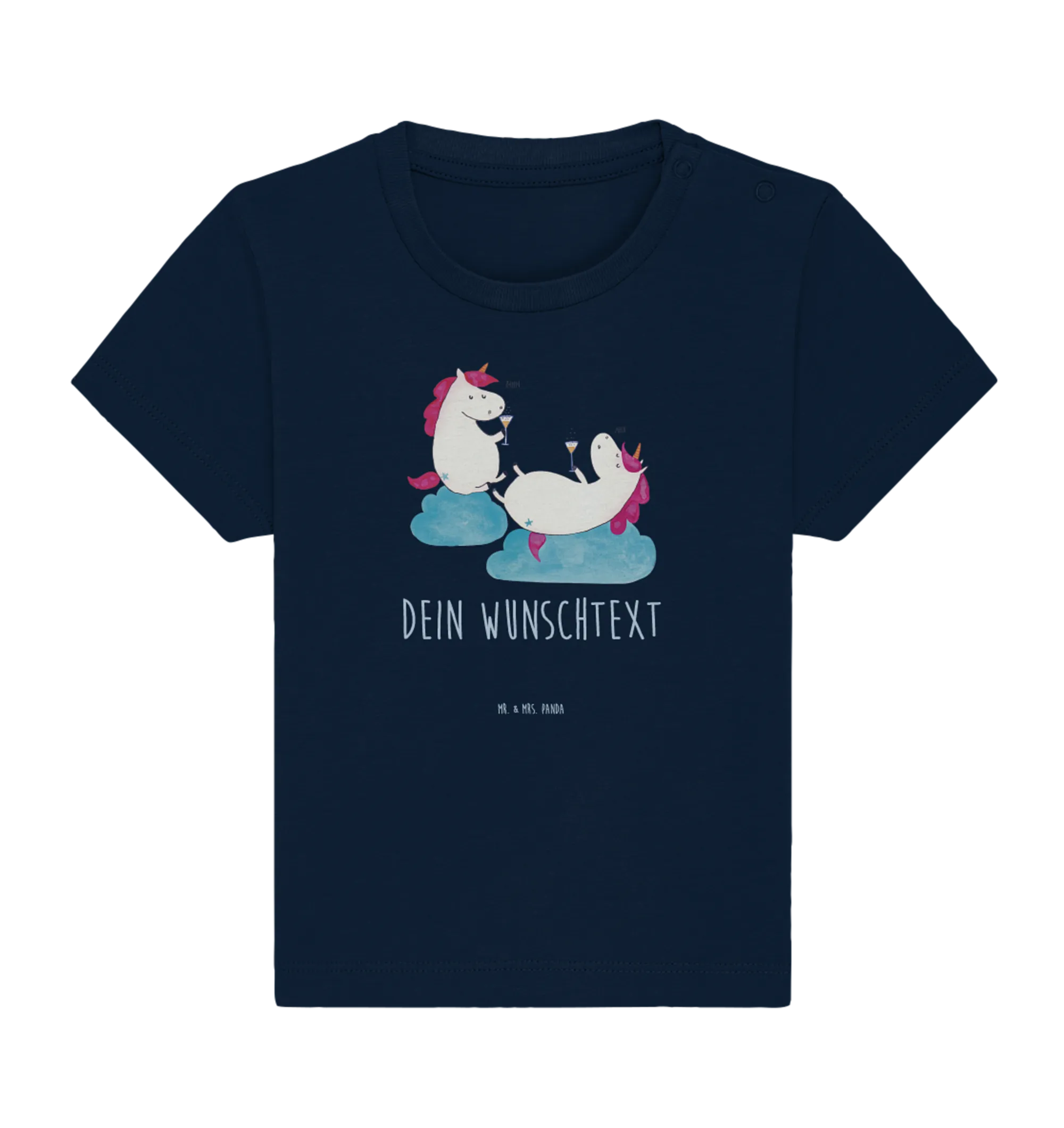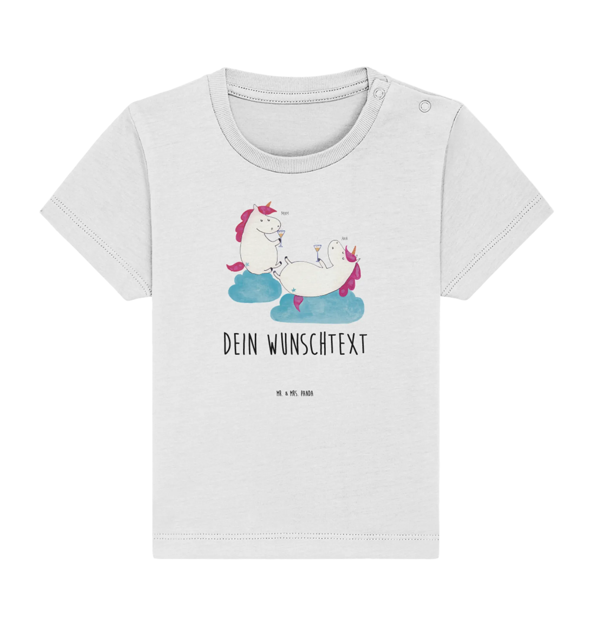 Das personalisierte Baby T-Shirt mit dem zauberhaften Motiv "Einhörner Sekt" aus der Einhorn-Kollektion von Mr. & Mrs. Panda ist das perfekte Geschenk für kleine Prinzessinnen und ihre besten Freunde!