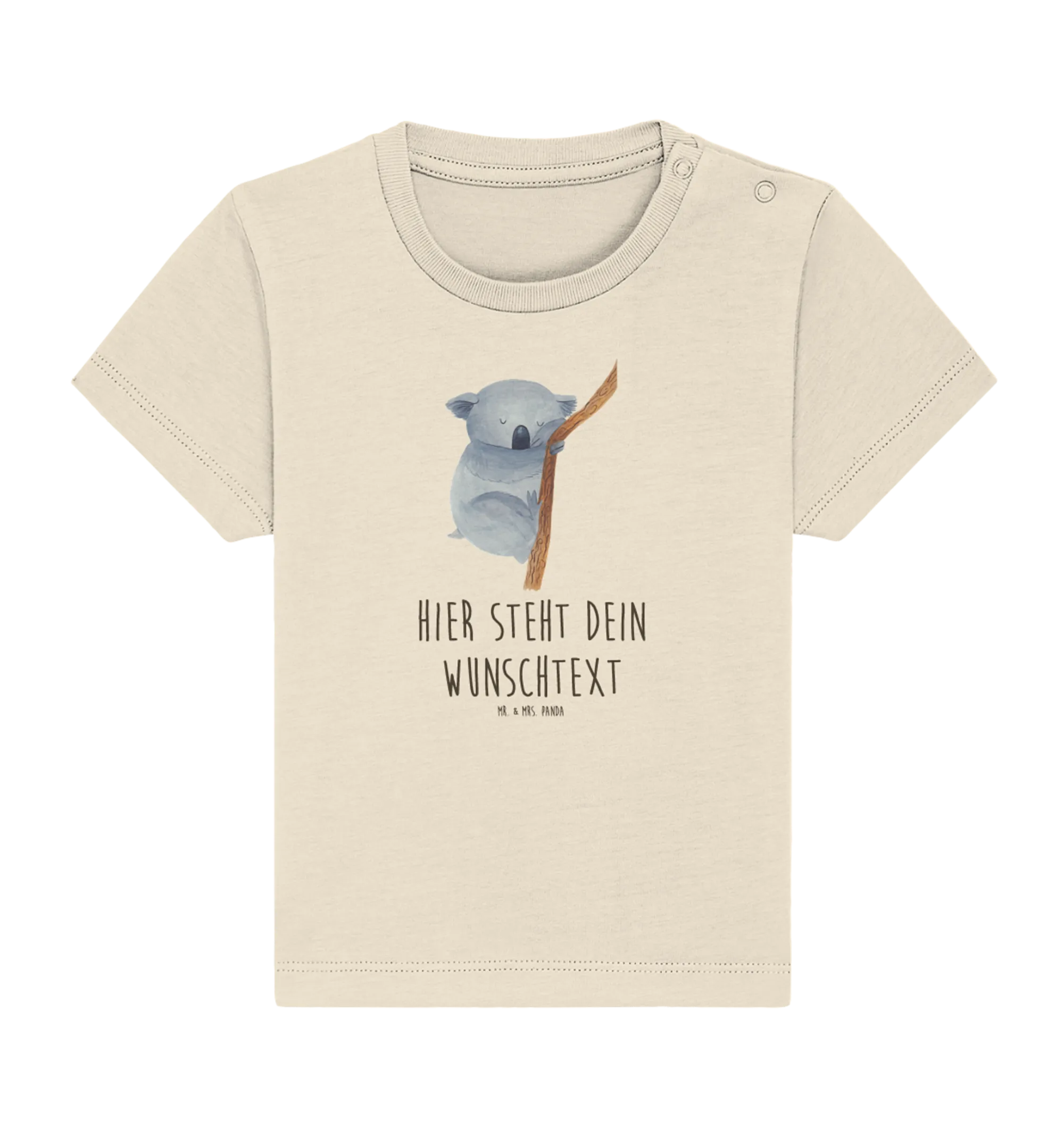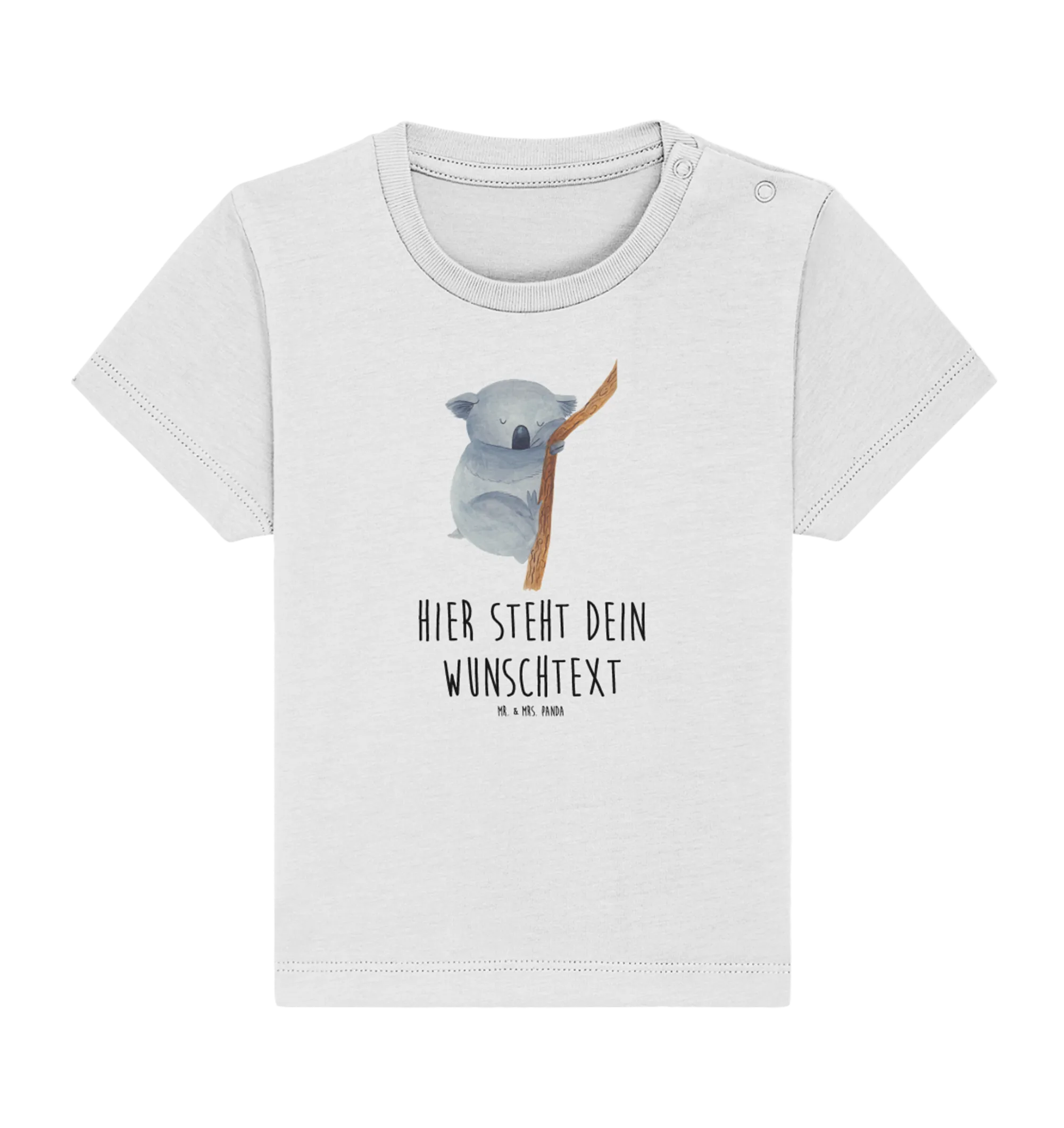 Entdecke das perfekte Geschenk für die kleinen Abenteuerer in deinem Leben – das personalisierte Baby T-Shirt mit dem niedlichen Koalabär-Motiv von Mr. & Mrs. Panda!